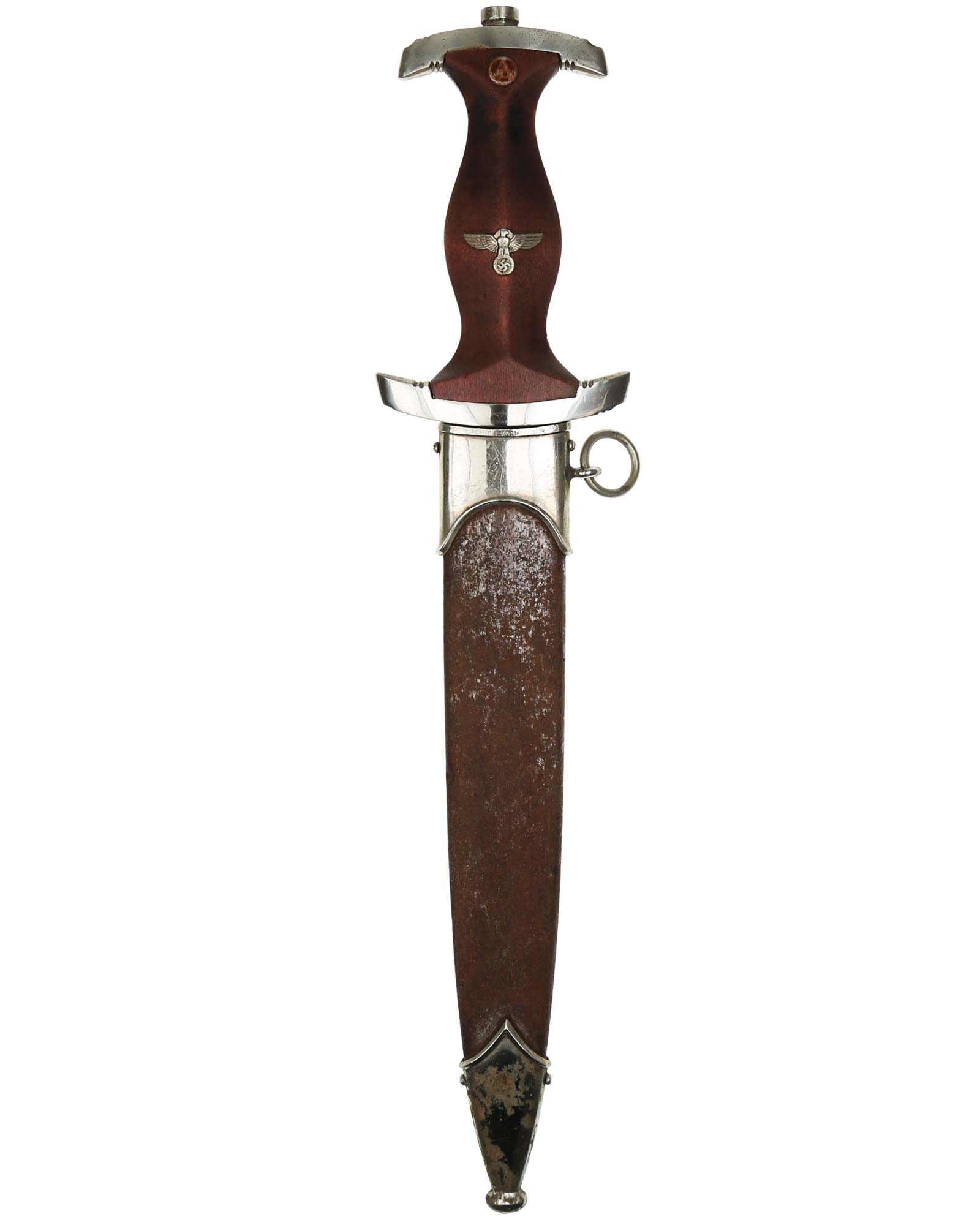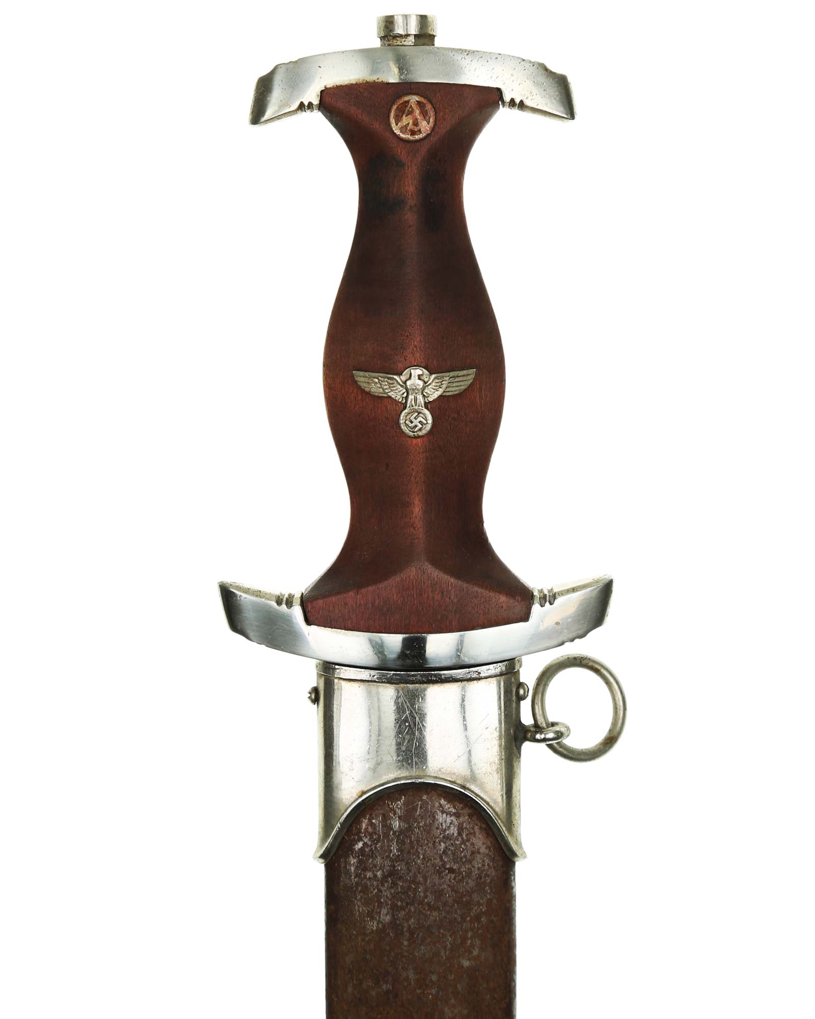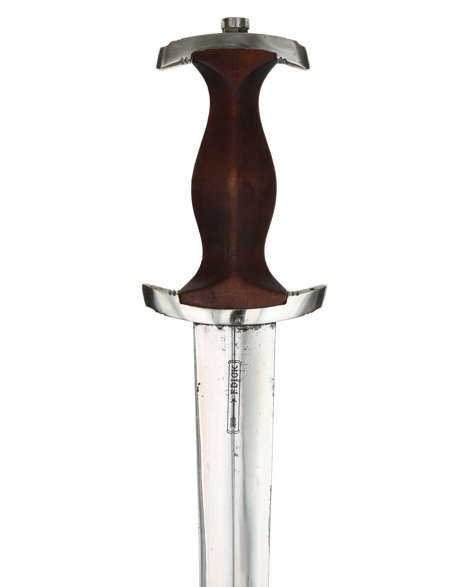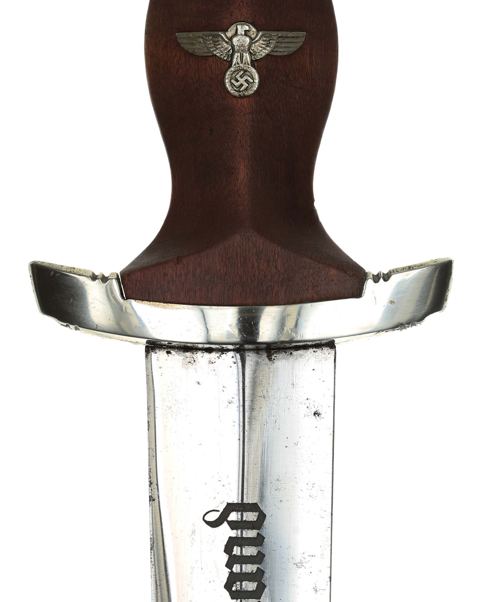 Клинок: Клинок кинжала прямой, стальной, двулезвийный, кинжального типа, с выраженным центральным ребром. На одной стороне клинка методом травления нанесен девиз СА «Всё для Германии» (Alles für Deutchland). Клинок на оборотной стороне у основания стоит клеймо производителя Friedrich Dick Esslingen (Дик Фридрих Есслинген).