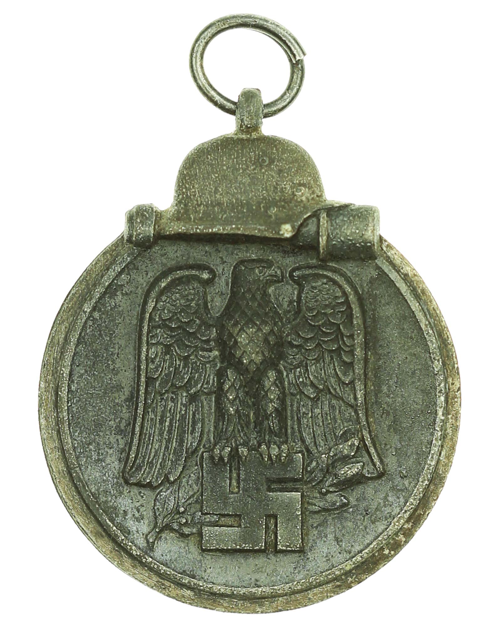 Медаль «За зимнюю кампанию на Востоке 1941/42» («Die Medaille Winterschlacht im Osten 1941/1942») была разработана унтершарфюрером СС Эрнстом Краузе (унтер-офицер войск СС в нацистской Германии), из роты пропаганды. Учреждена 26 мая 1942 года в память о первой зимней кампании в России. Медалью награждались участники боев на Восточном фронте зимой 1941-42 годов. Данная медаль известна также под названиями -Мороженое мясо-, -Ostmedaille- (-Восточная Медаль-) или как Медаль за Русский Фронт. Медаль в хорошем состоянии. Общий вес 21 г. Размер: 36,48 x 44,50 мм.