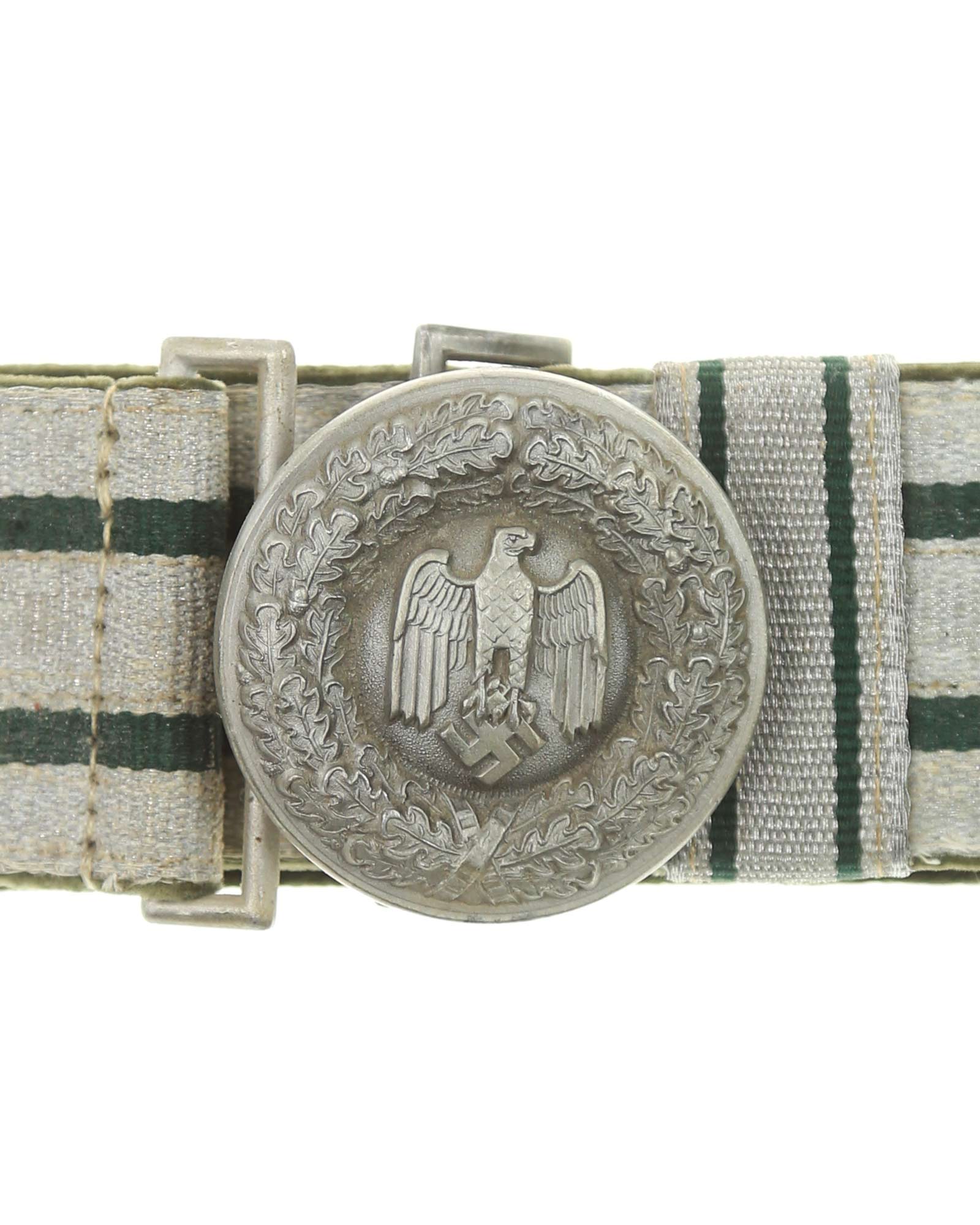 Парадный ремень офицера Вермахта. Подбой из материала диагонали цвета фельд-грау. В идеальном коллекционном состоянии. Полотно изготовлено из металлизированной серебряной канители. Длинна регулируется, 100 см.