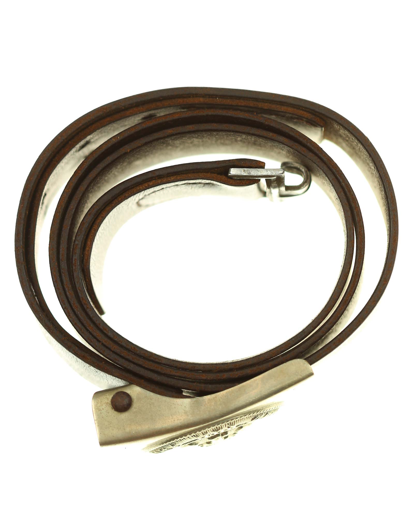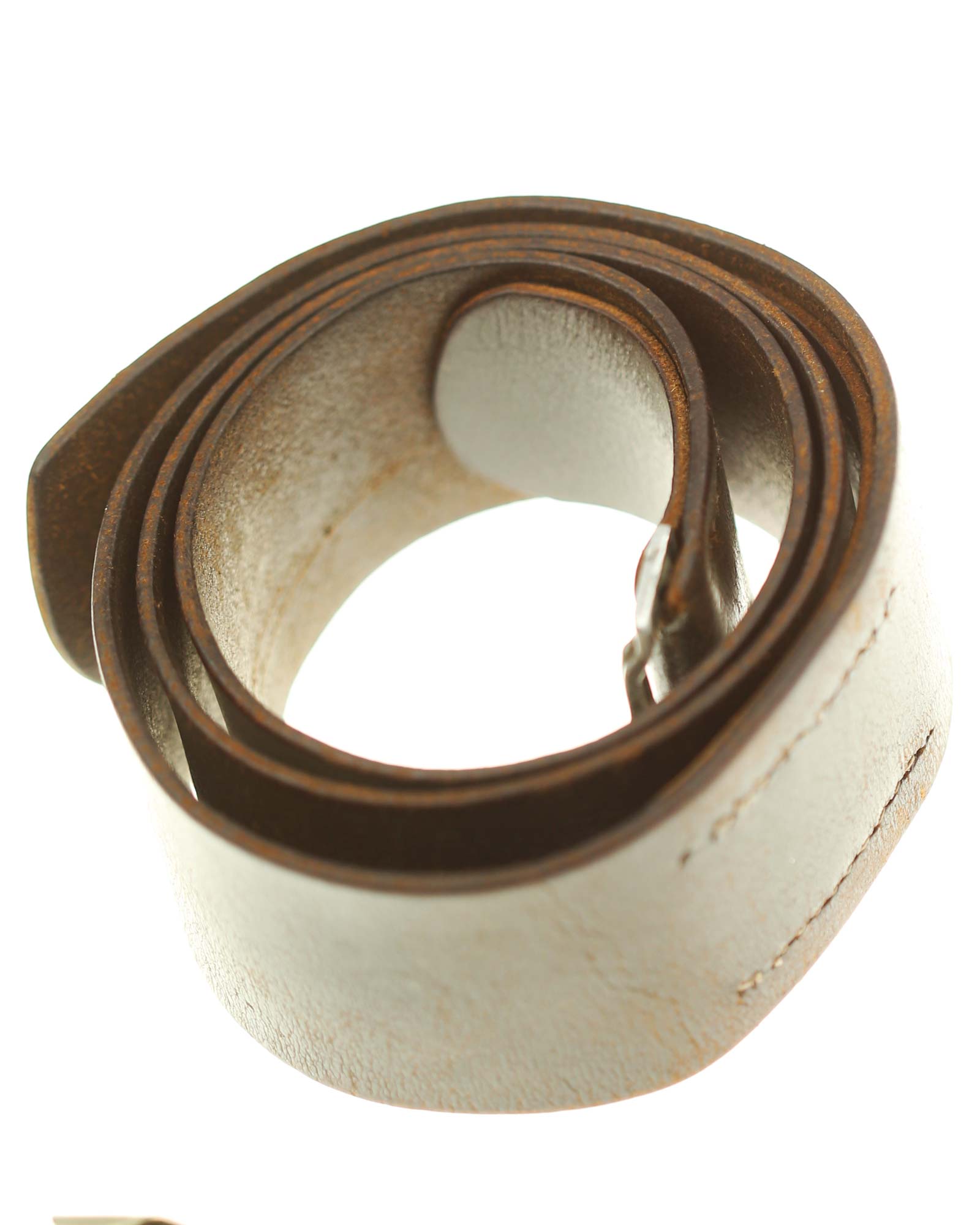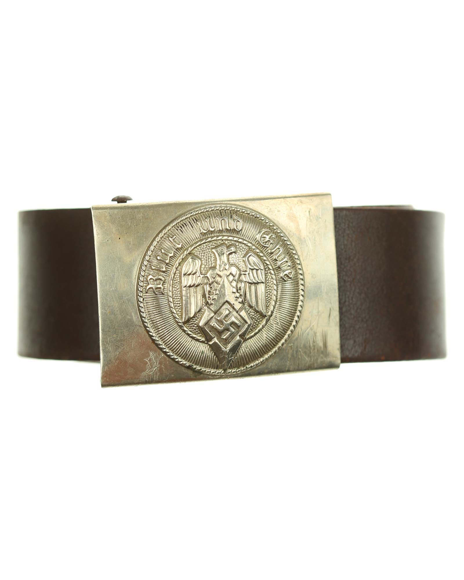 Пряжка ремня HJ с тиснением из нейзильбера, обратная сторона с двойными производителями "A&S" и "RZM 17", расшифровывается как фирма "Assmann & Söhne", кожаный ремешок длиной 81 см Гитлерюгенд.