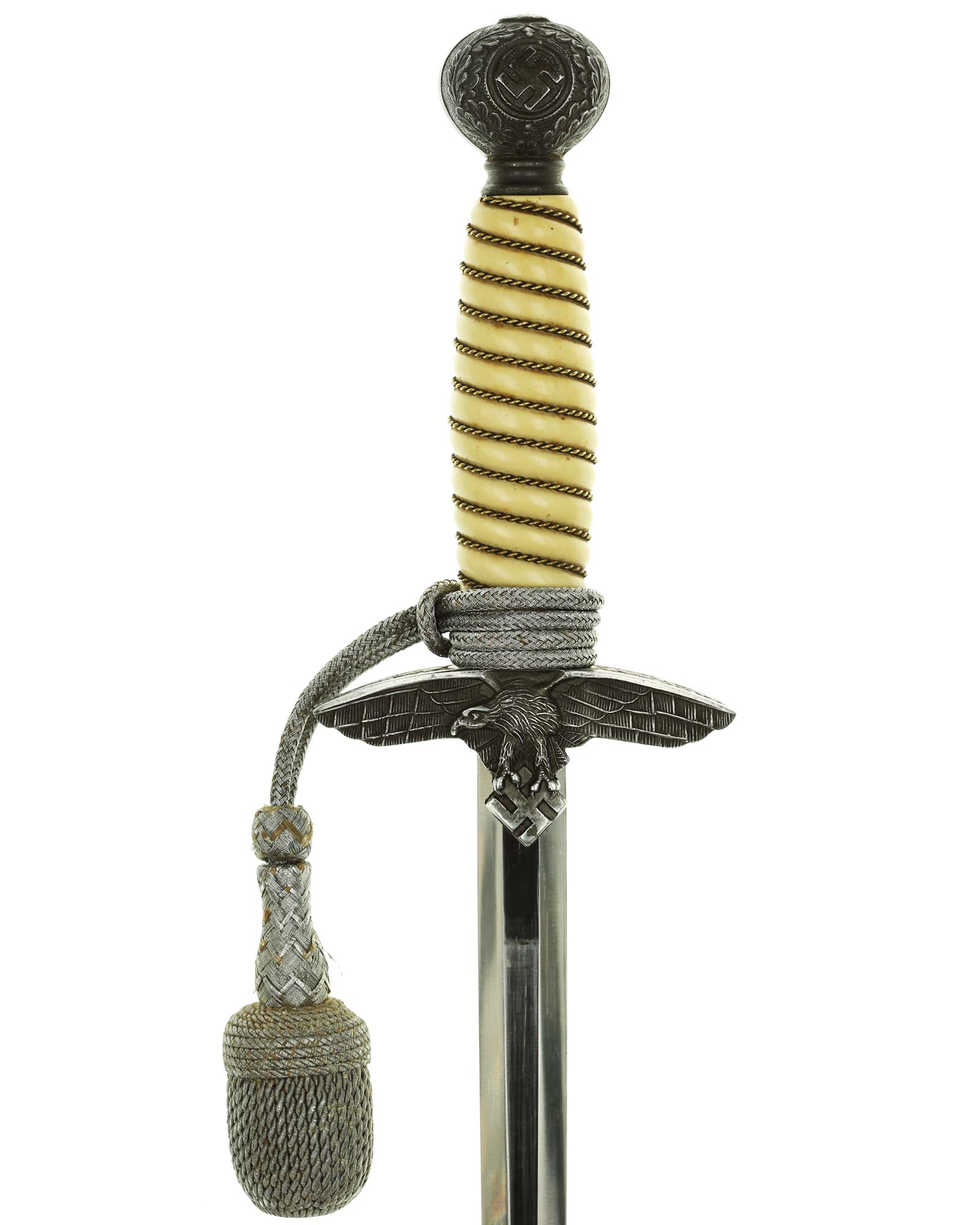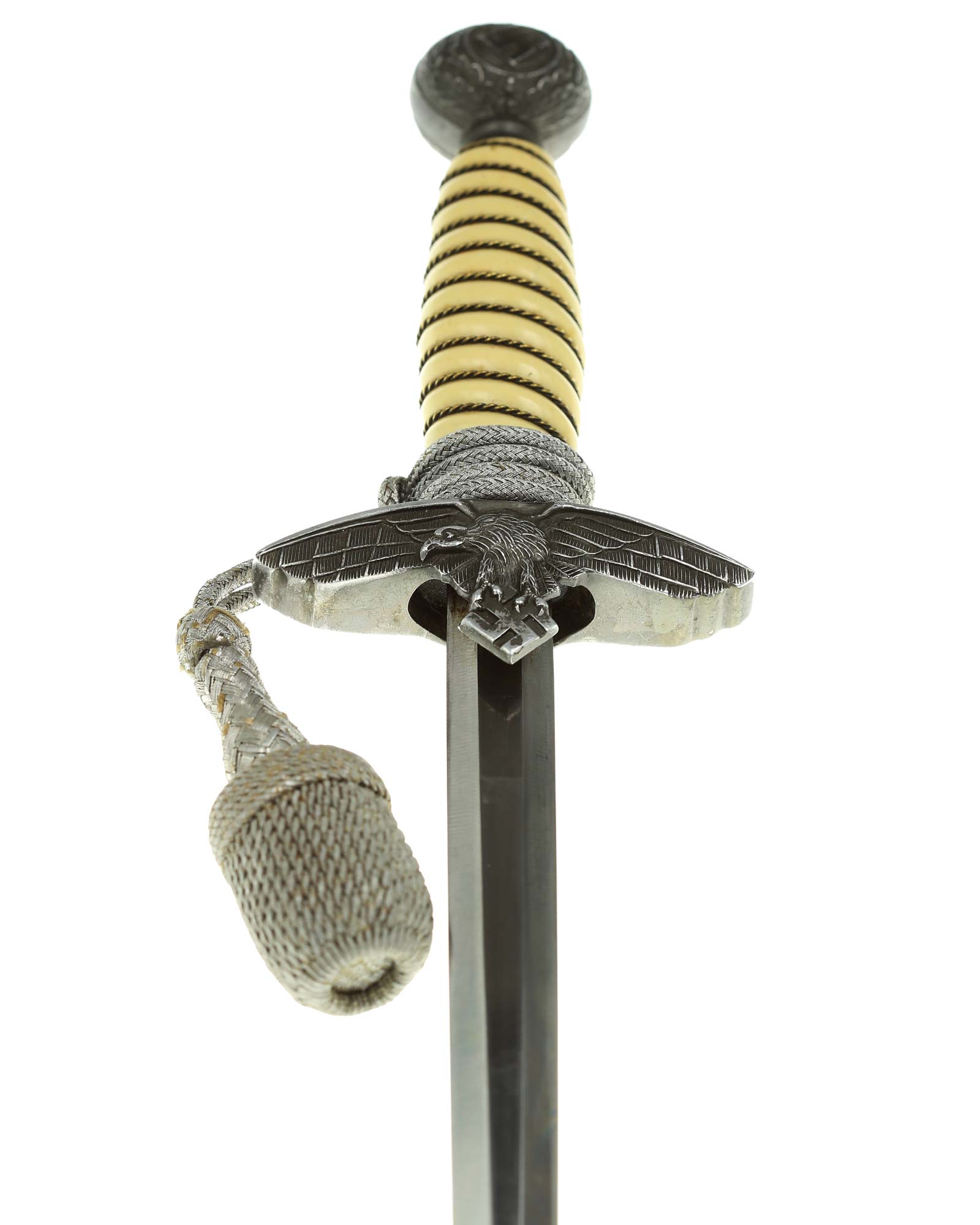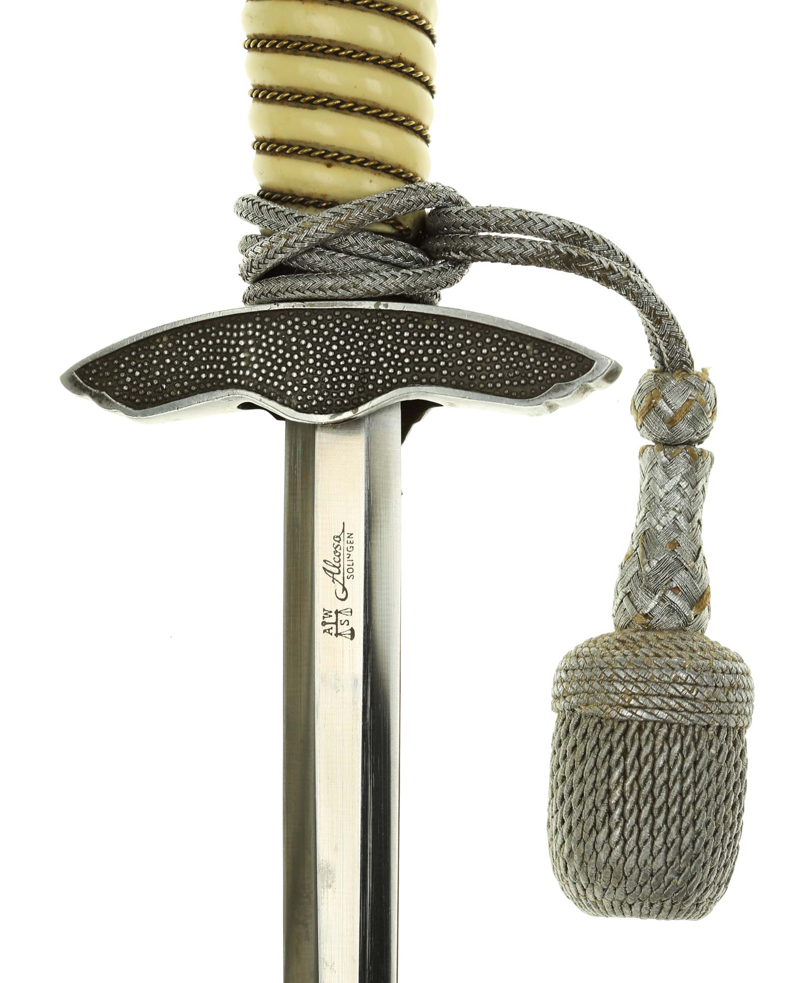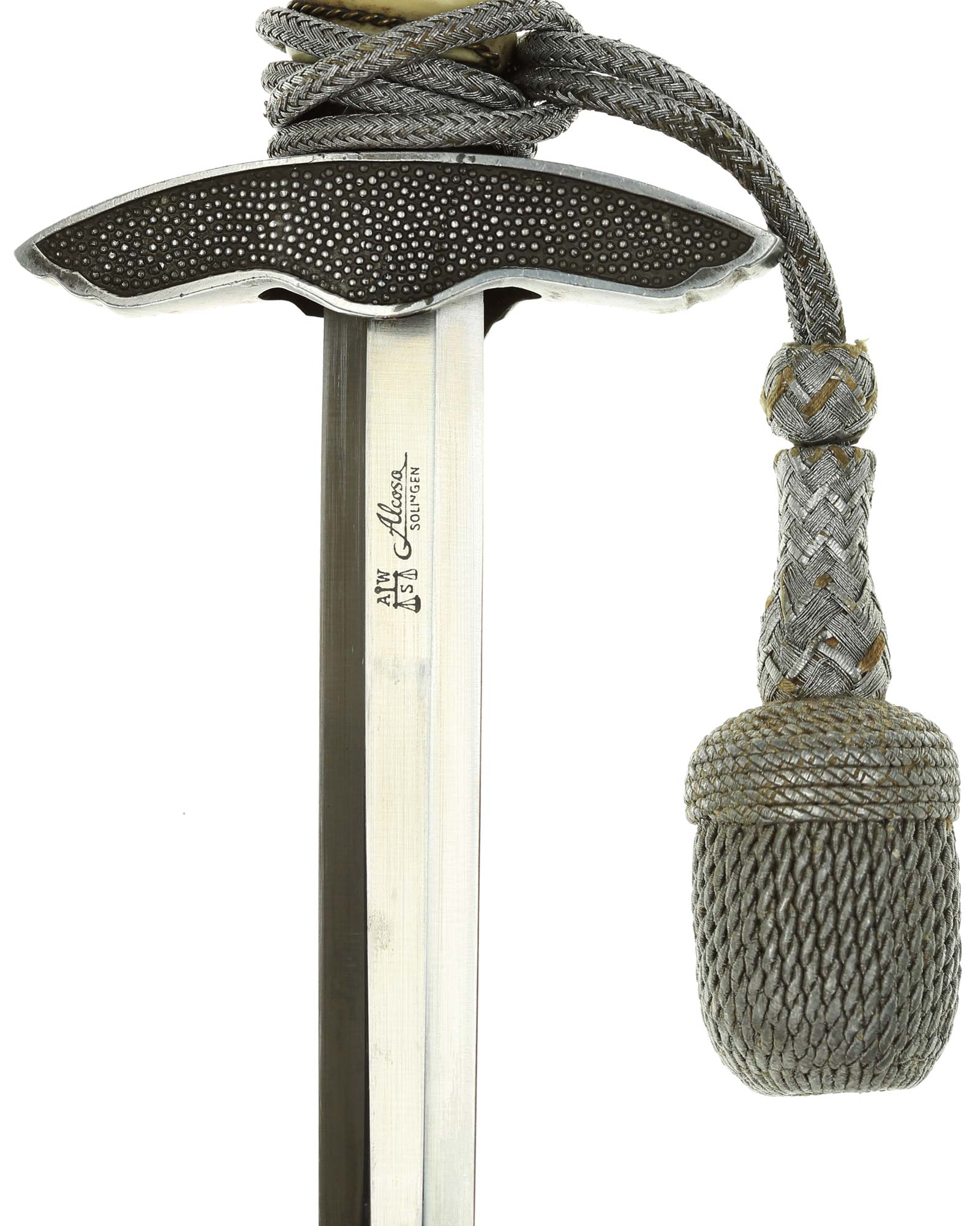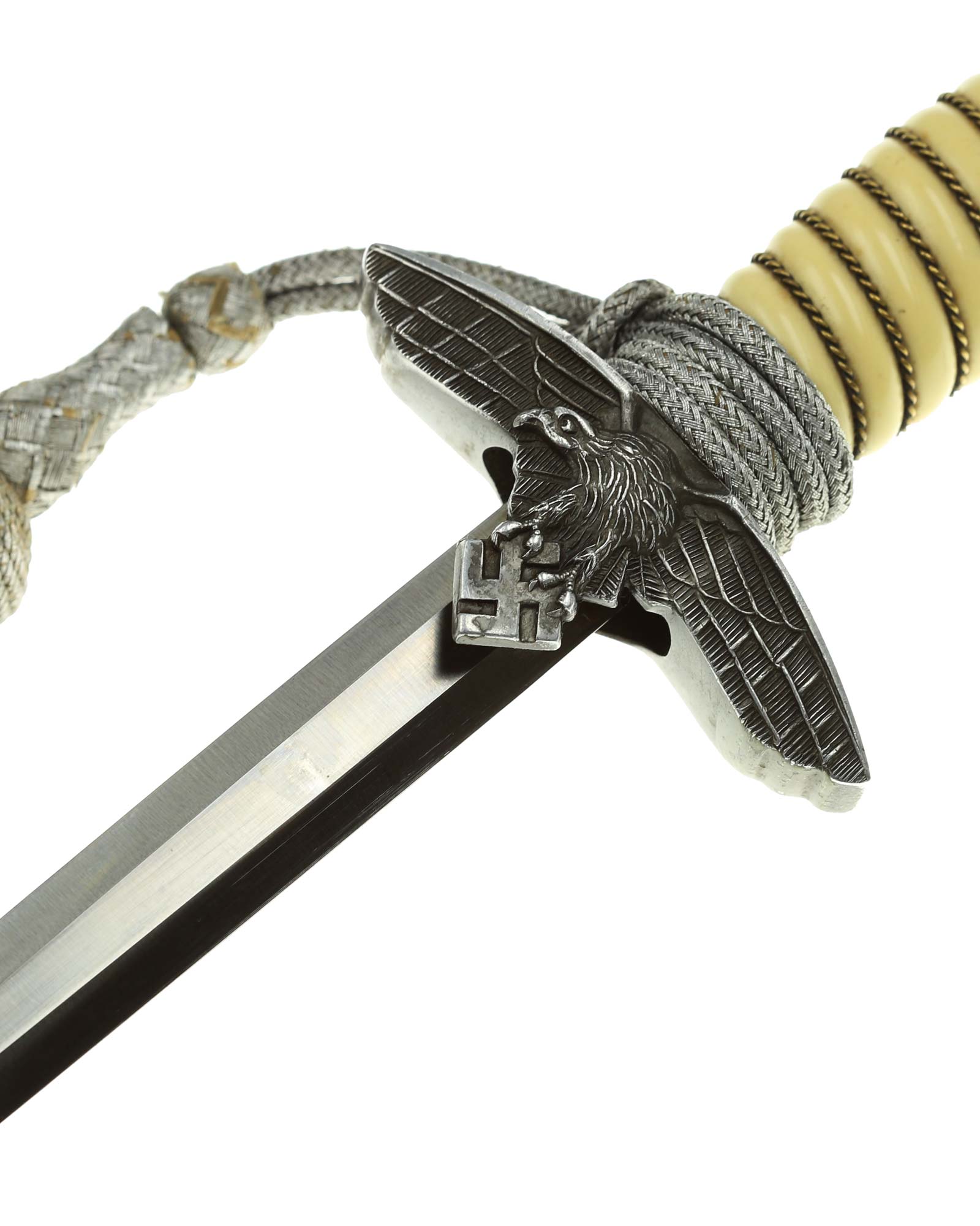 Кортик офицера ВВС Люфтваффе (нем. Luftwaffen-Offizierdolch) обр. 1937 года. Крестовина с обратной стороны имеет точечный фон. Кортик с клеймом Alcoso AWS Solingen (Александр Коппель Золинген).