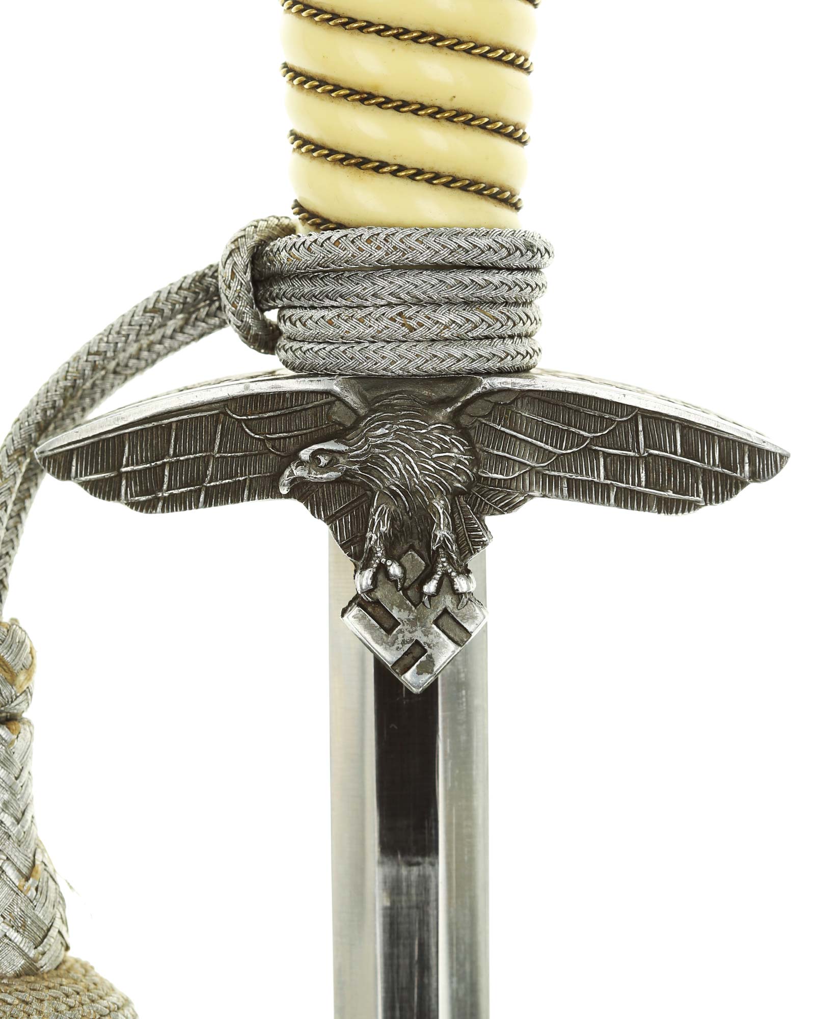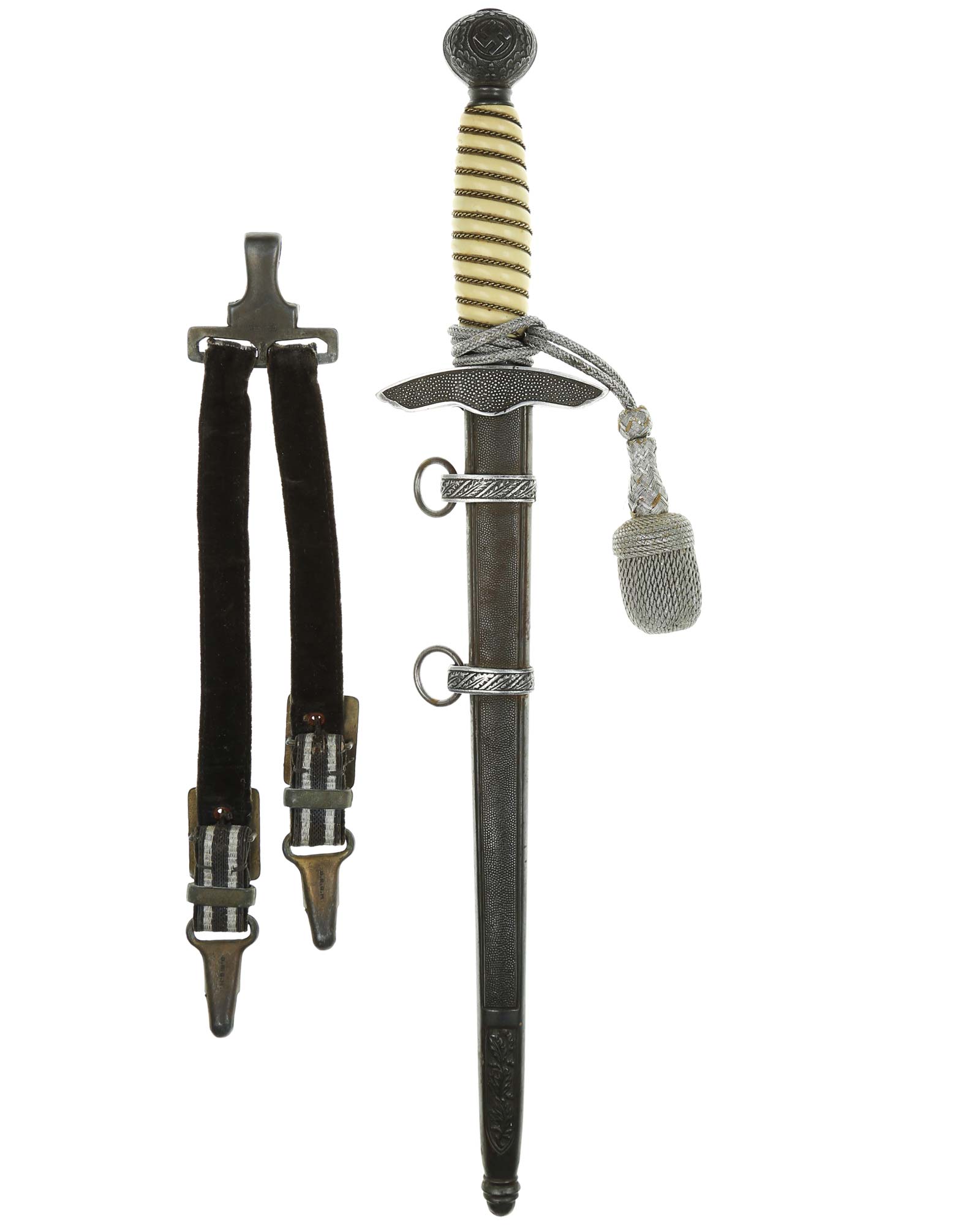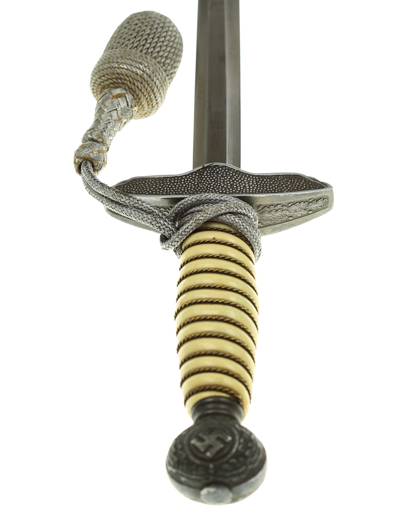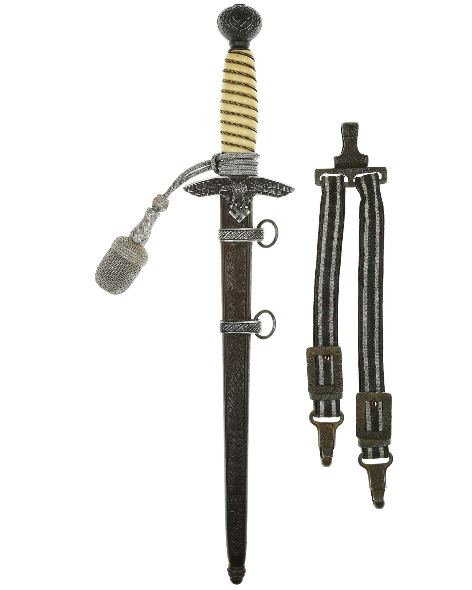 Кортик офицера ВВС Люфтваффе (нем. Luftwaffen-Offizierdolch) обр. 1937 года. Крестовина с обратной стороны имеет точечный фон. Кортик с клеймом Alcoso AWS Solingen (Александр Коппель Золинген).