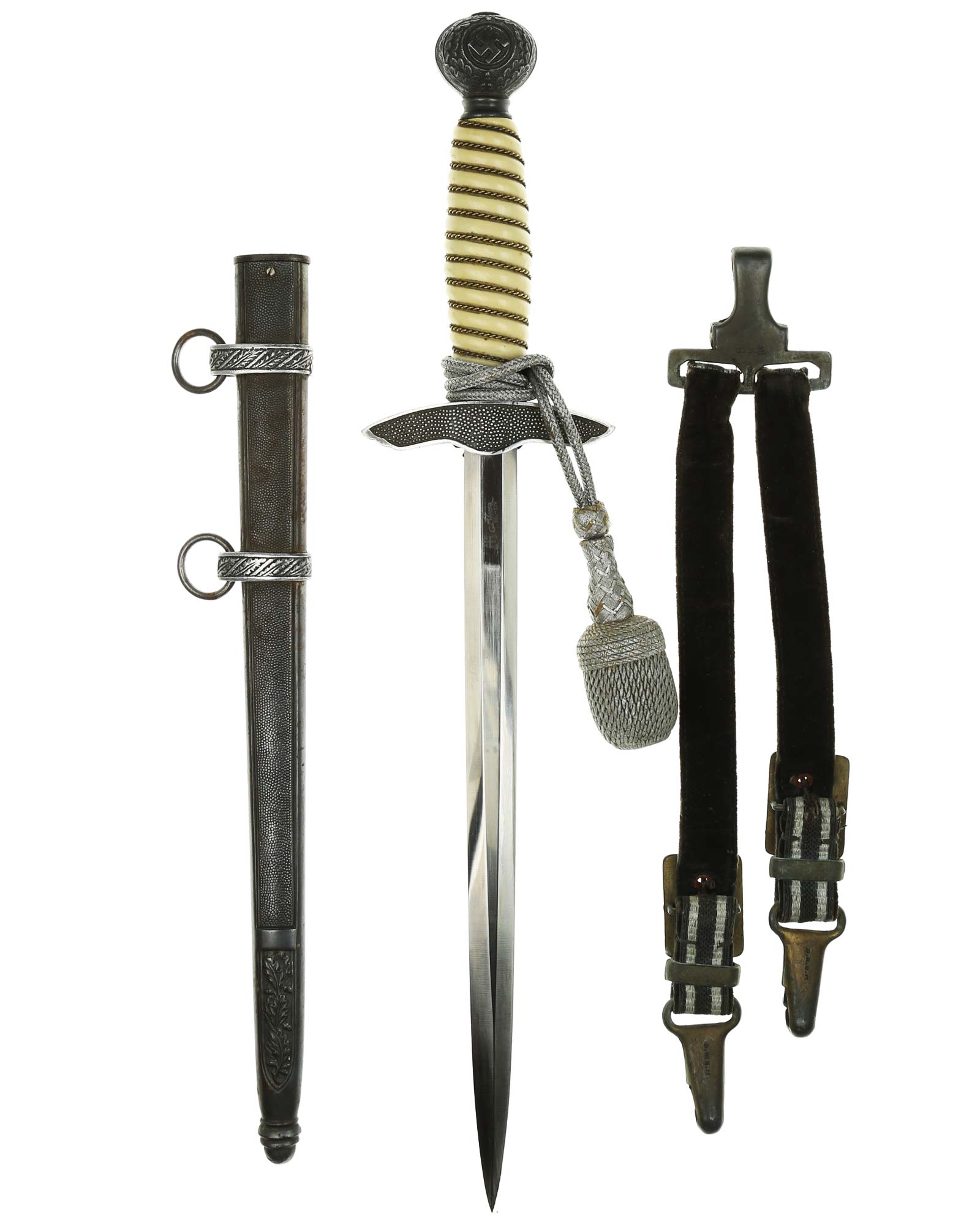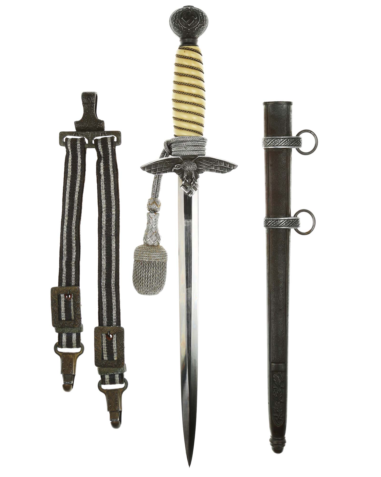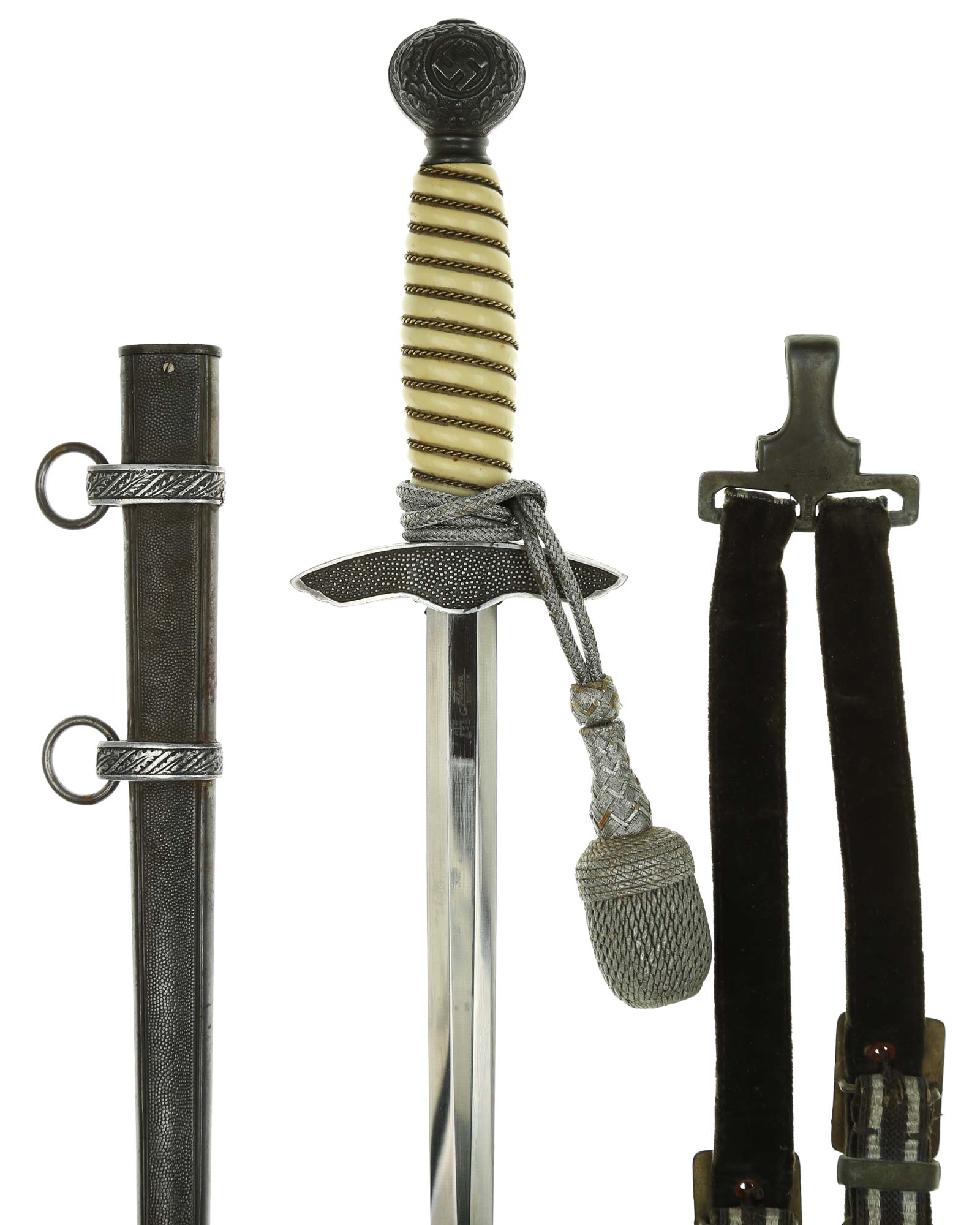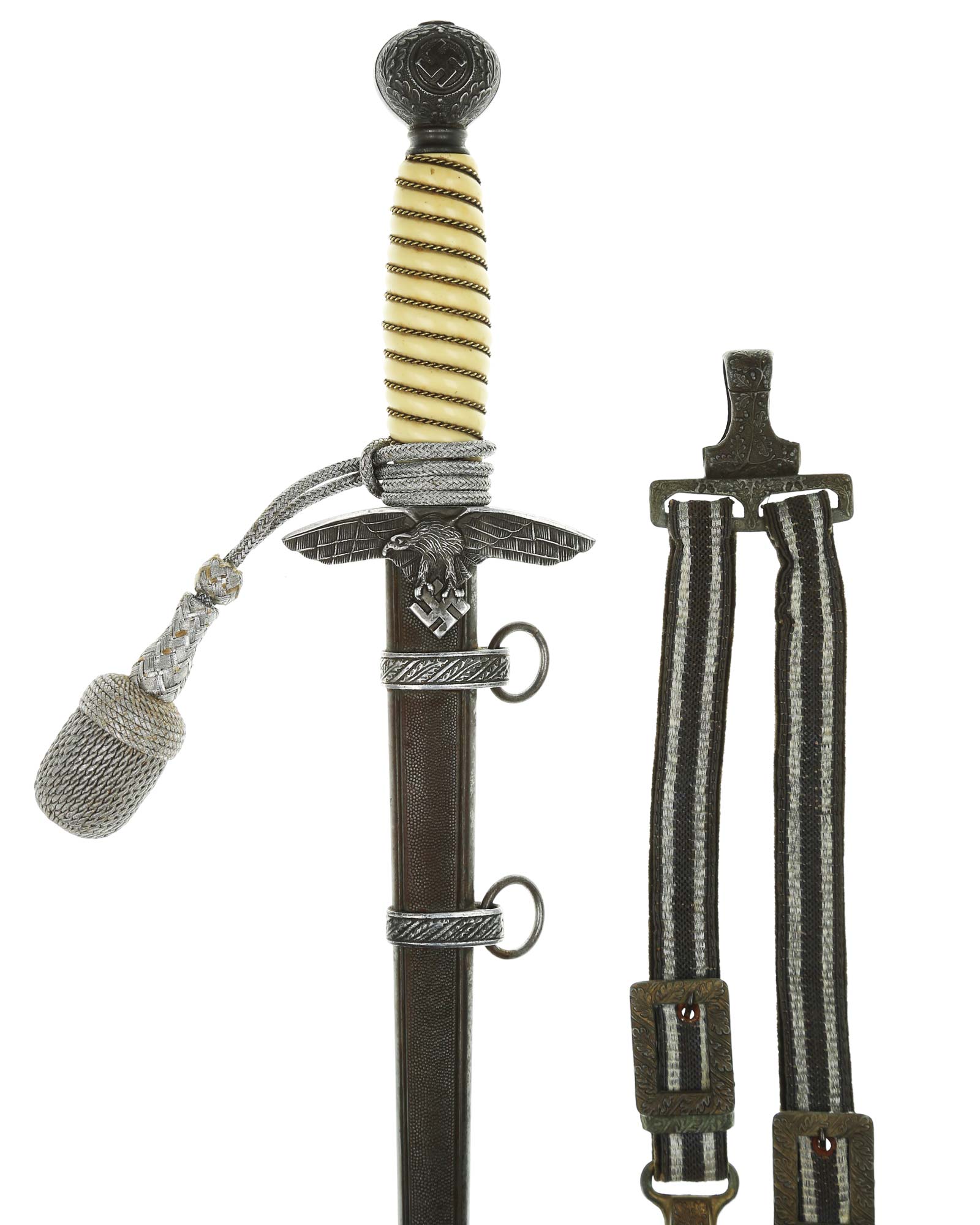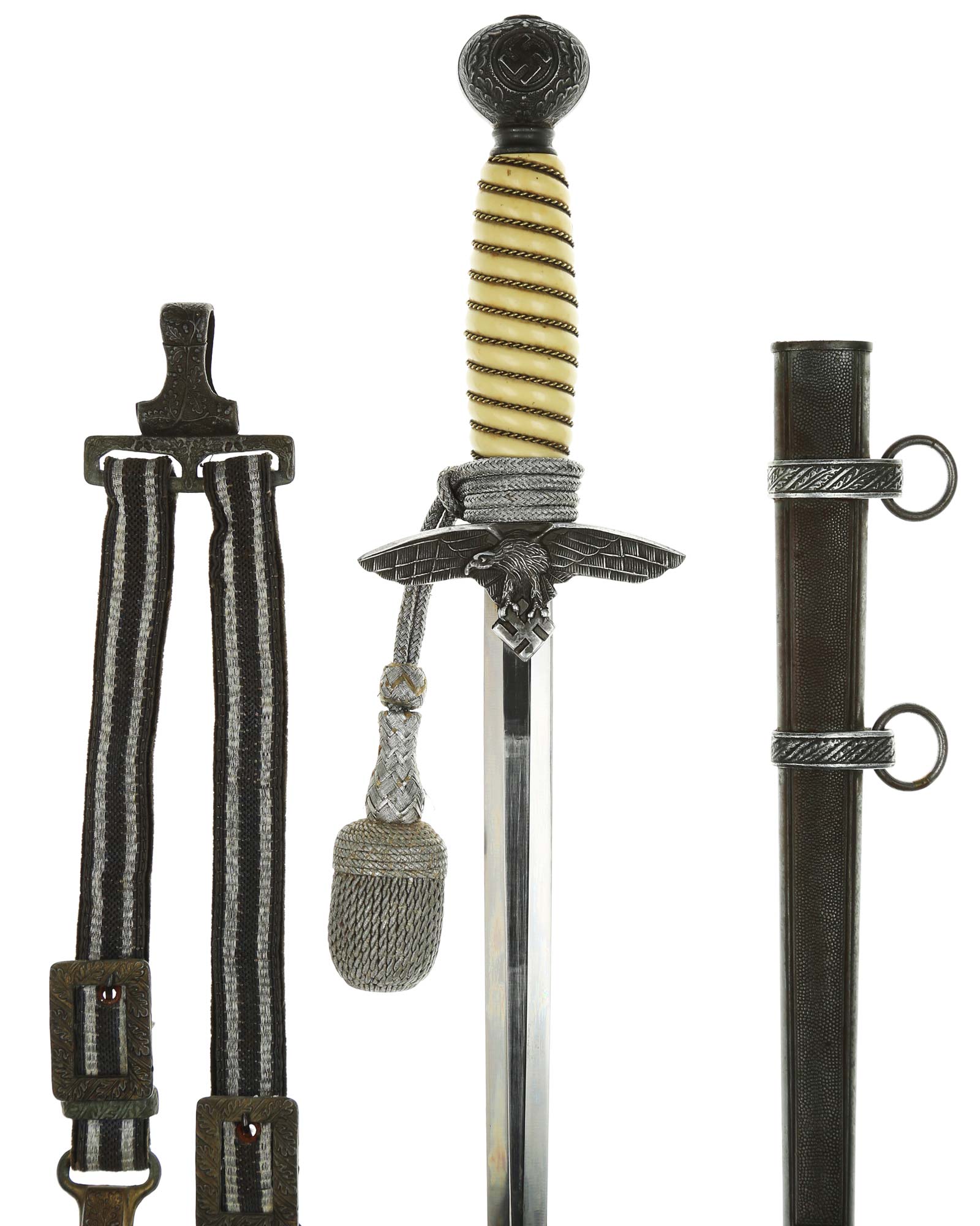 Кортик офицера ВВС Люфтваффе (нем. Luftwaffen-Offizierdolch) обр. 1937 года. Крестовина с обратной стороны имеет точечный фон. Кортик с клеймом Alcoso AWS Solingen (Александр Коппель Золинген).