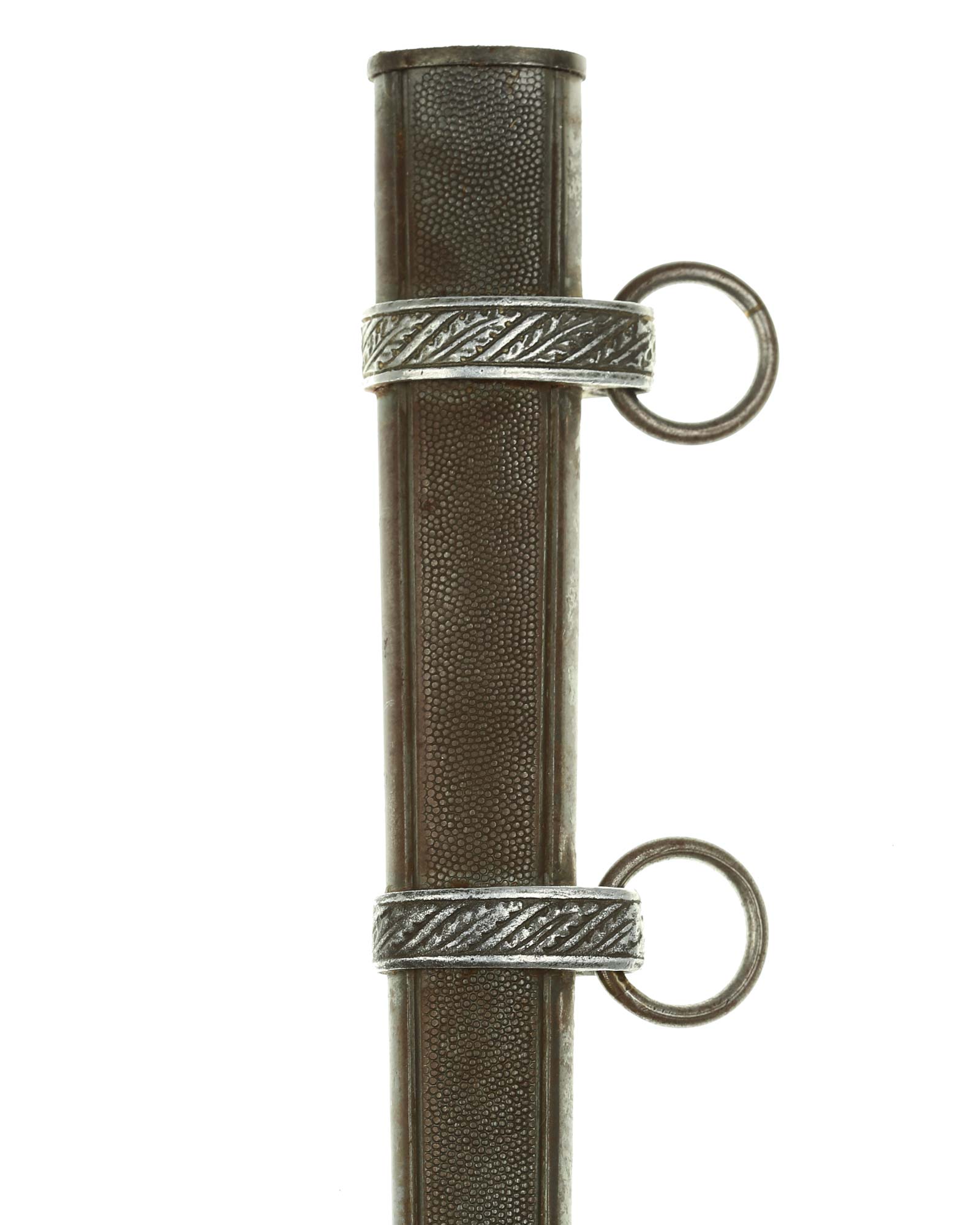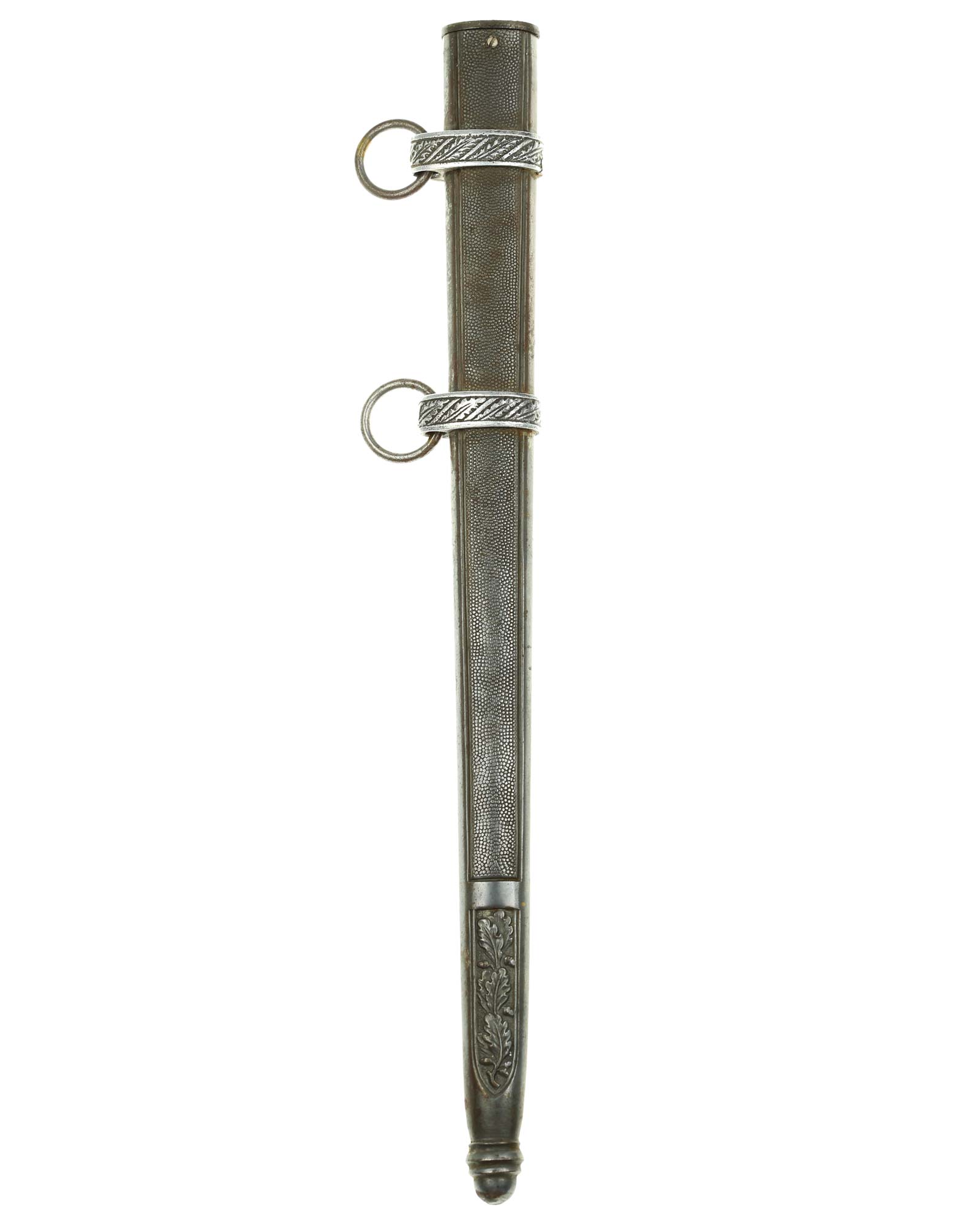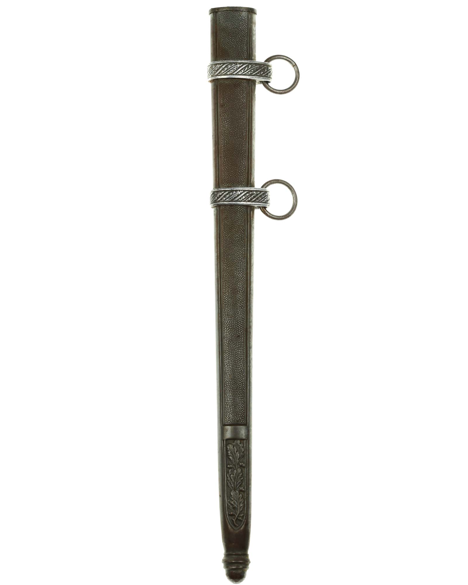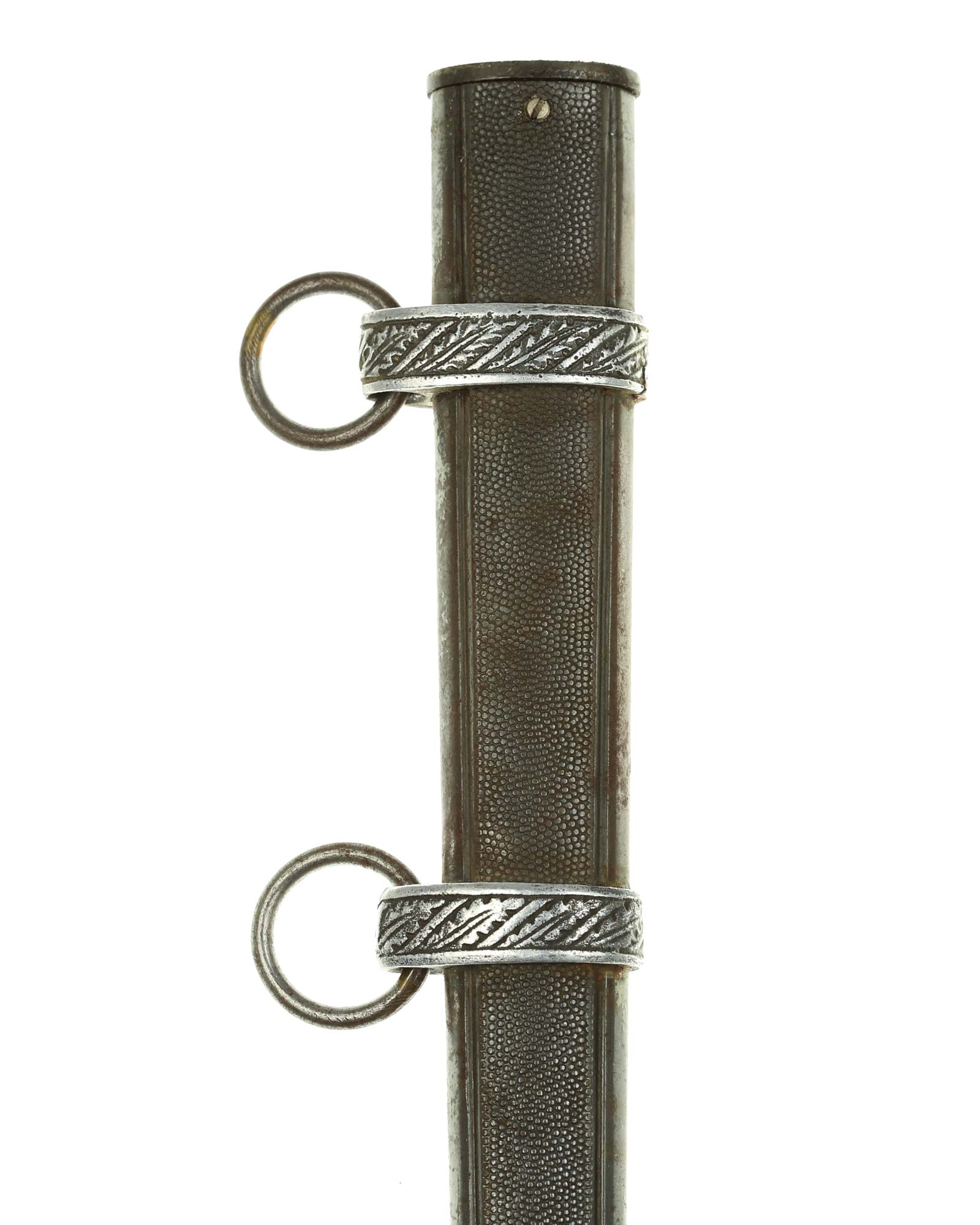 Ножны: Ножны металлические, цельные, поверхность покрыта мелкими точками. Конец ножен округлый, с тремя рельефными поясками, украшен орнаментом из дубовых листьев. Ножны имеют два обоймицы с кольцами для портупеи.