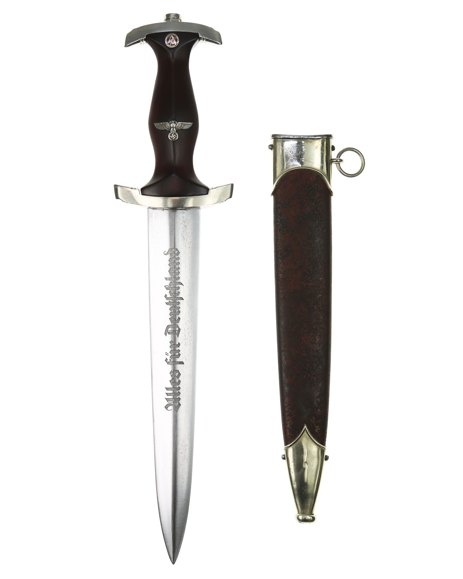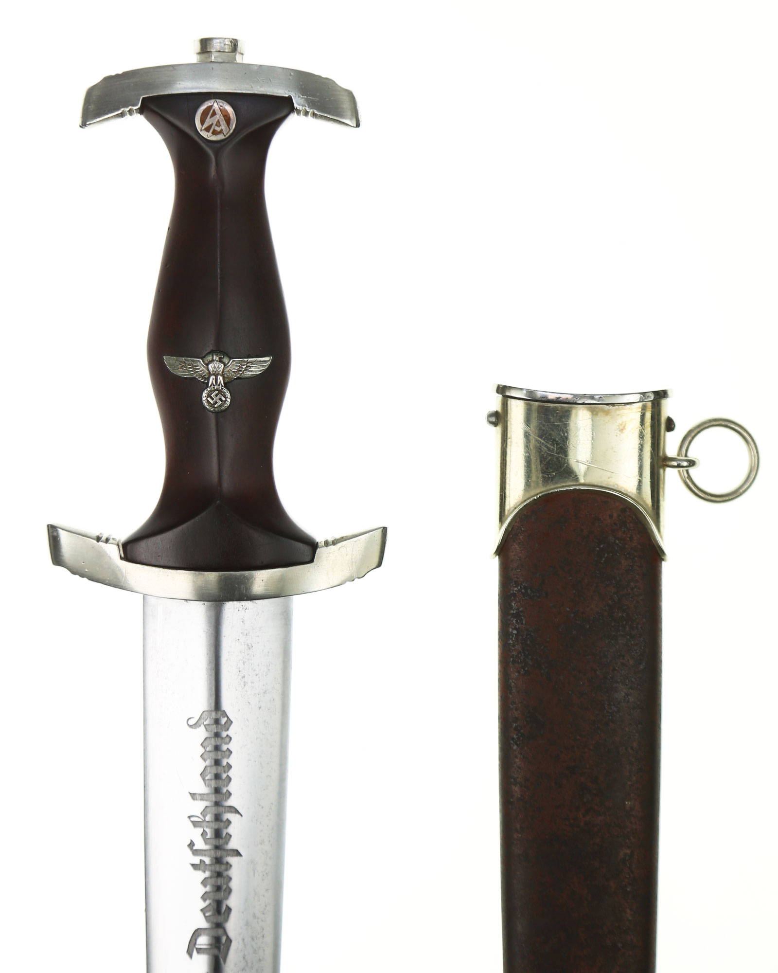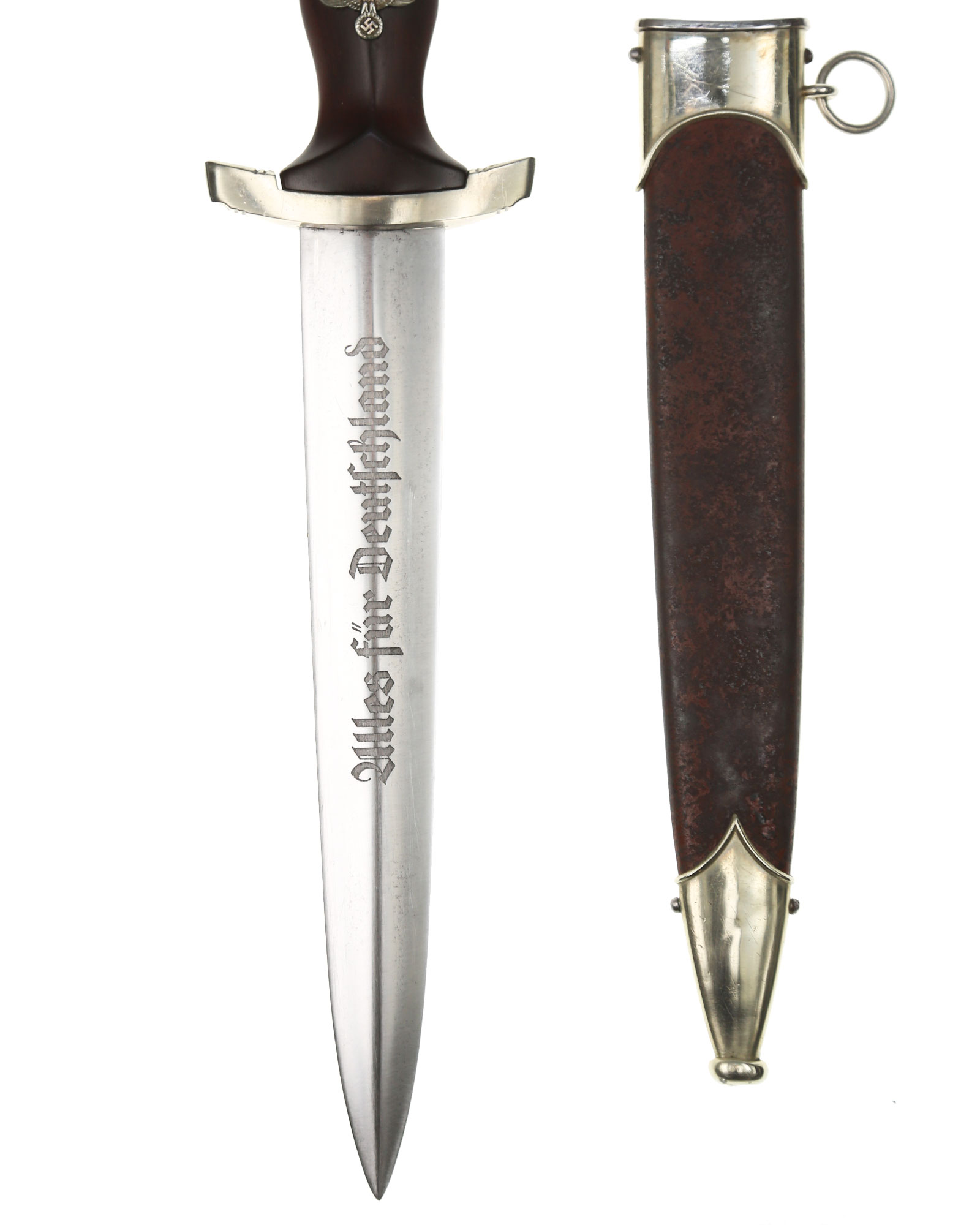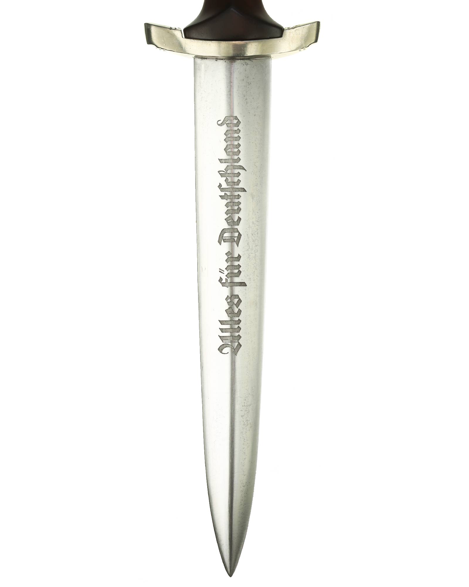 Клинок: Клинок кинжала прямой, стальной, двулезвийный, кинжального типа, с выраженным центральным ребром. На одной стороне клинка методом травления нанесен девиз СА «Всё для Германии» (Alles für Deutchland). Клинок на оборотной стороне у основания стоит клеймо производителя ПУМА Золинген (Puma Solingen).