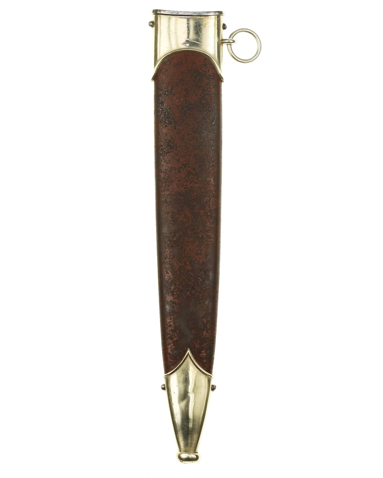 Ножны: Ножны металлические в оригинальном коричневом оксидировании, с накладными наконечником и устьем с кольцом. Наконечник и устье ножен крепятся при помощи двух винтов.