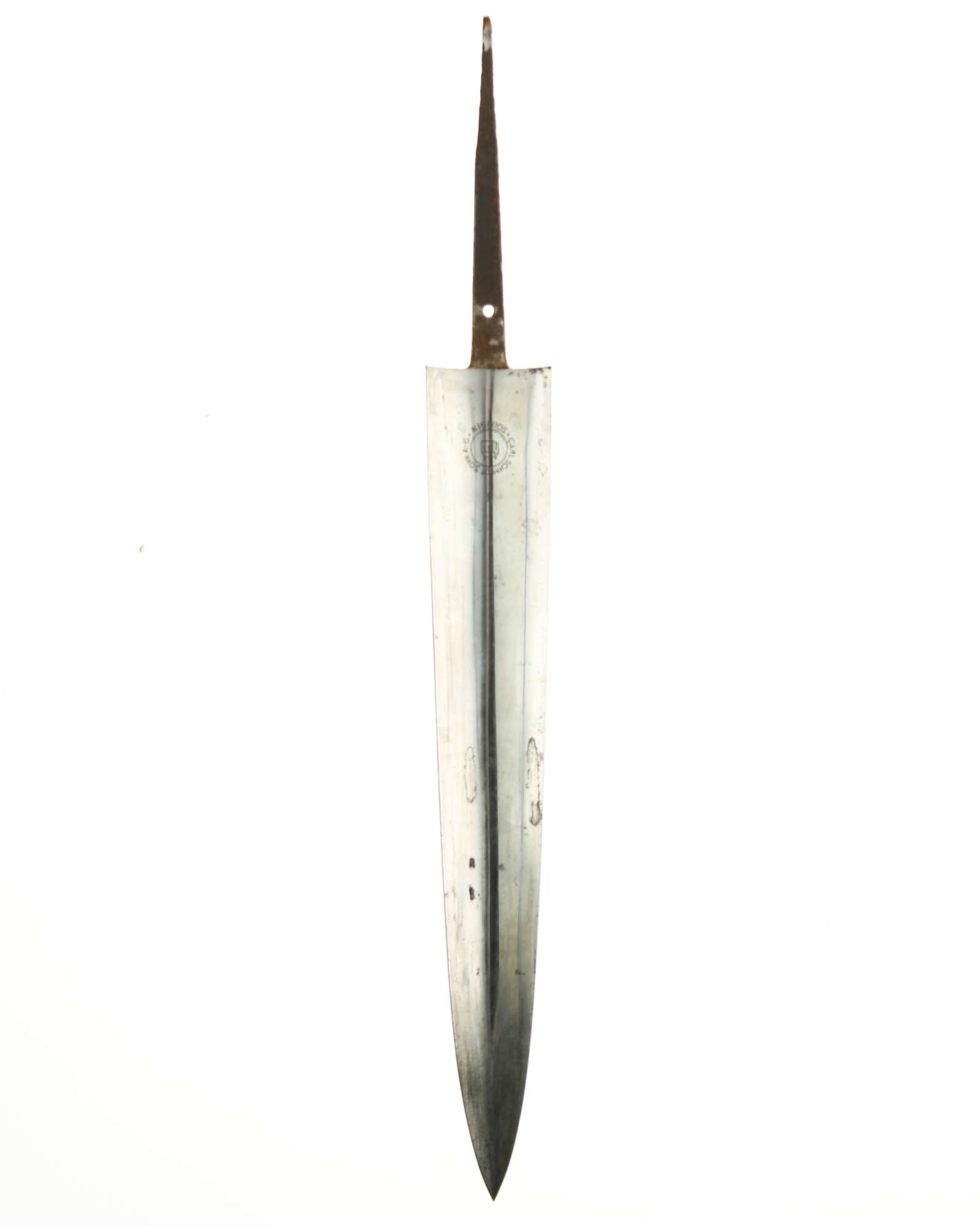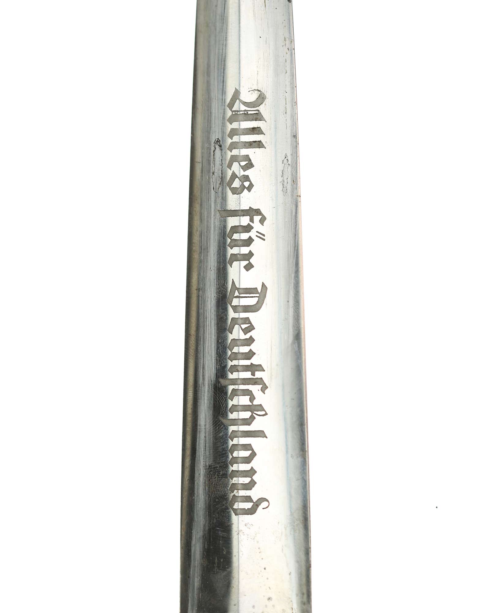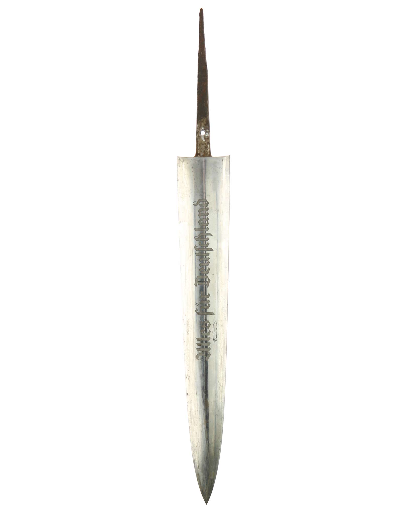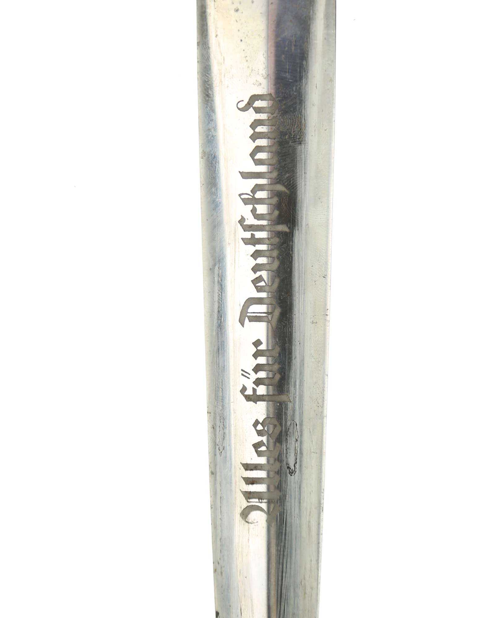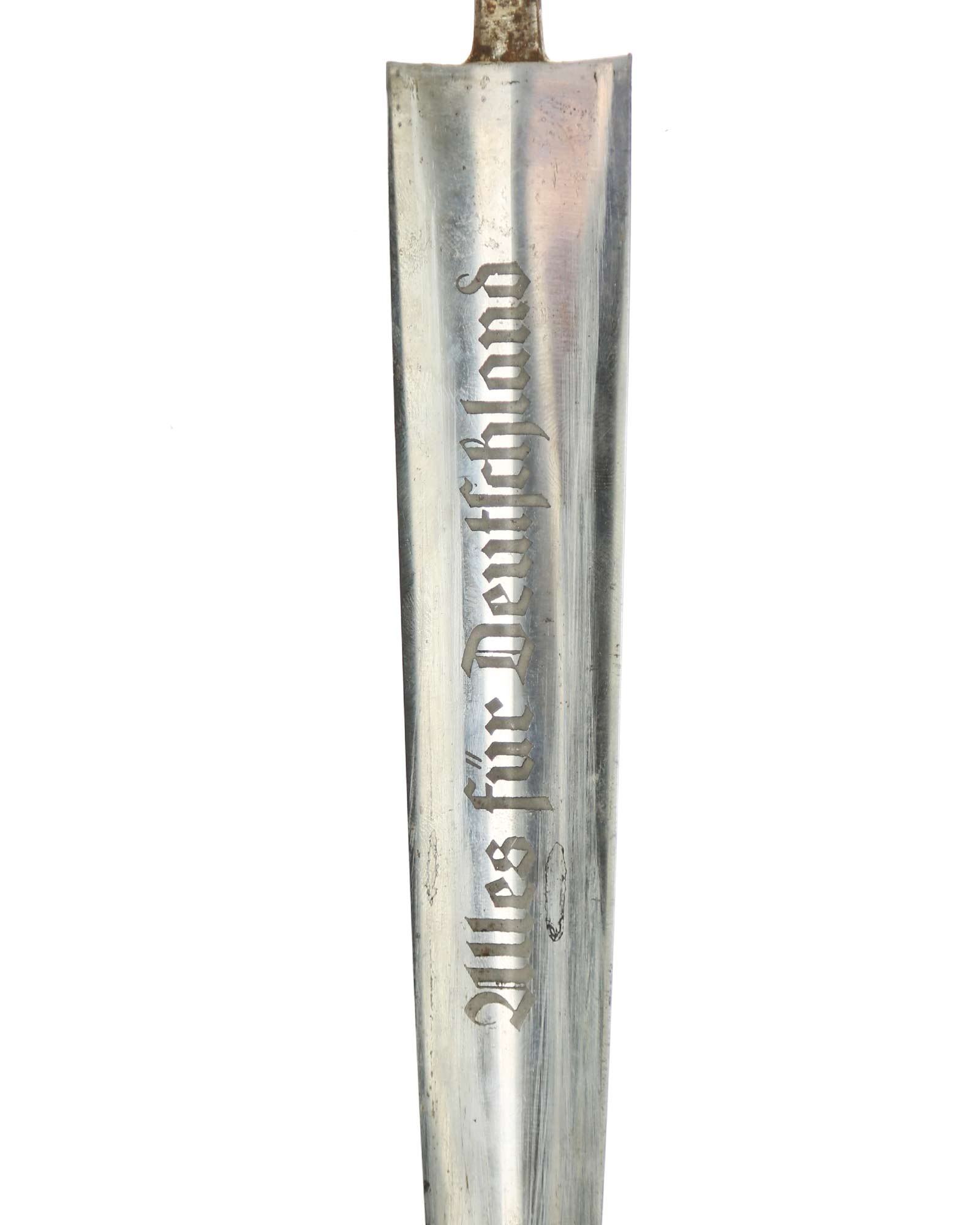 Клинок кинжала прямой, стальной, двулезвийный, кинжального типа, с выраженным центральным ребром. На одной стороне клинка методом травления нанесен девиз СА «Всё для Германии» (Alles für Deutchland). Клинок на оборотной стороне у основания стоит клеймо производителя Carl Schmidt & Sohn Solingen (Карл Шмидт & сын, Золинген).
