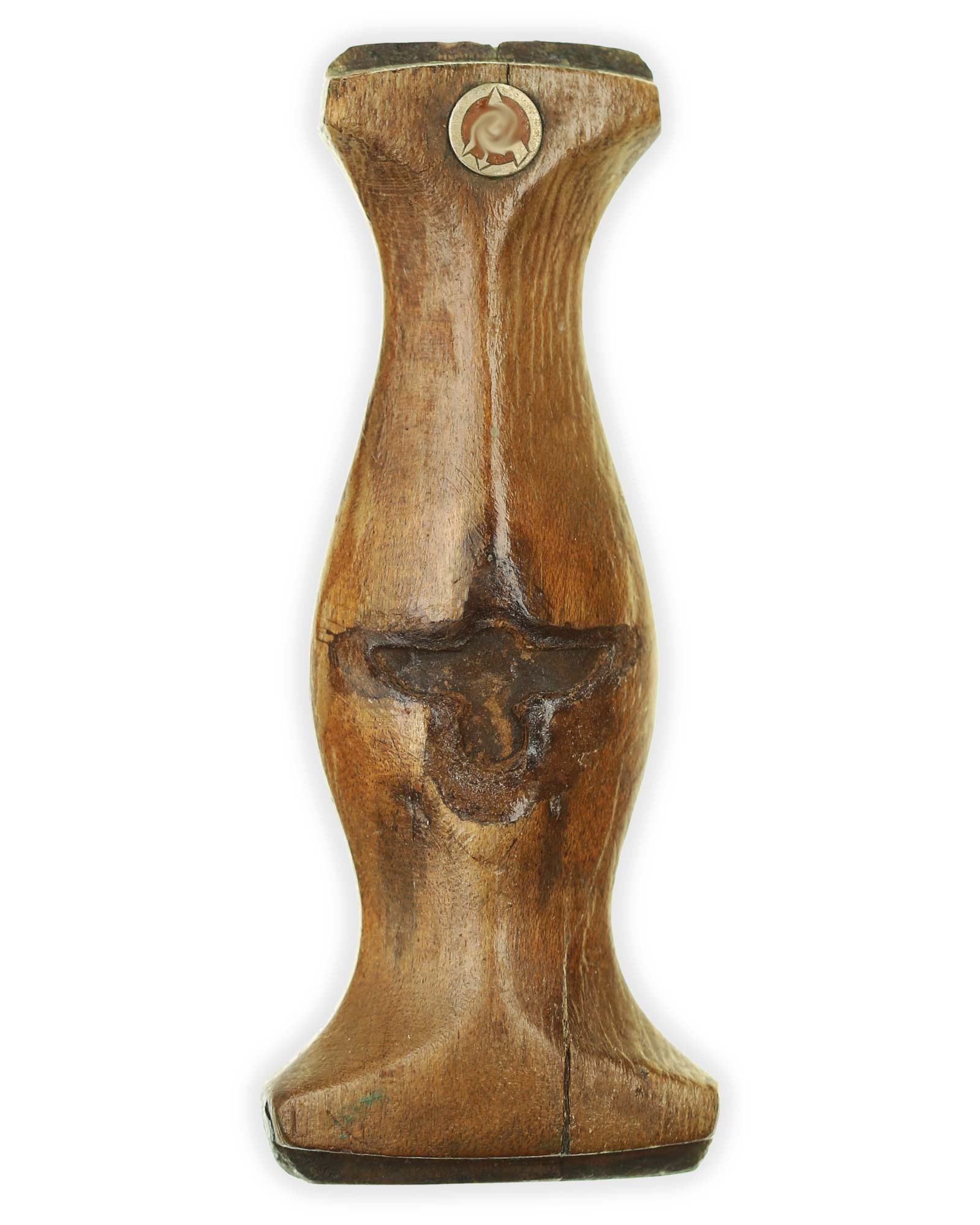 Рукоять из мореного в коричневый цвет дерева. Рукоять в верхней части имеет вставку в виде эмалевого глазка.