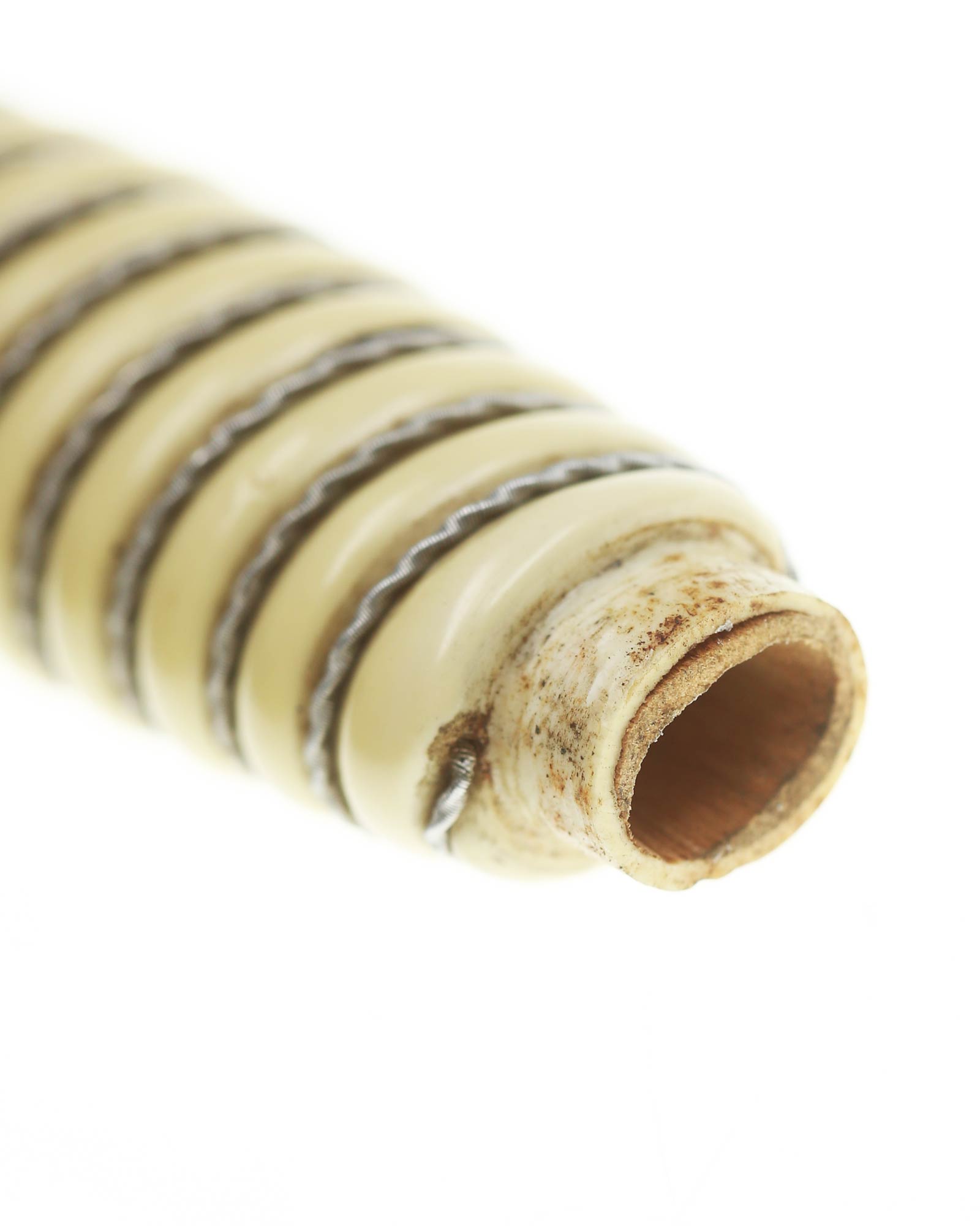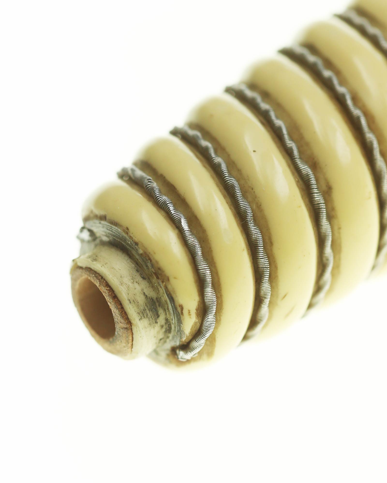 Оригинальная рукоять в белом исполнении, подходящая для офицерского кортика Люфтваффе. Рукоять украшена двойной проволочной обмоткой и имеет выпуклые каннелюры. Длина: около 95 мм. Состояние: хорошее.