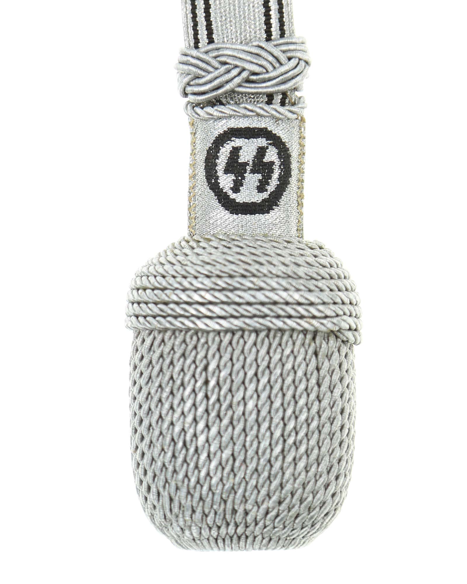 Темляк для палаша или парадного штыка Войск-СС. Изготовлен с применением металлизированой нити. Сохранилась полная длина, значительные следы бытования.