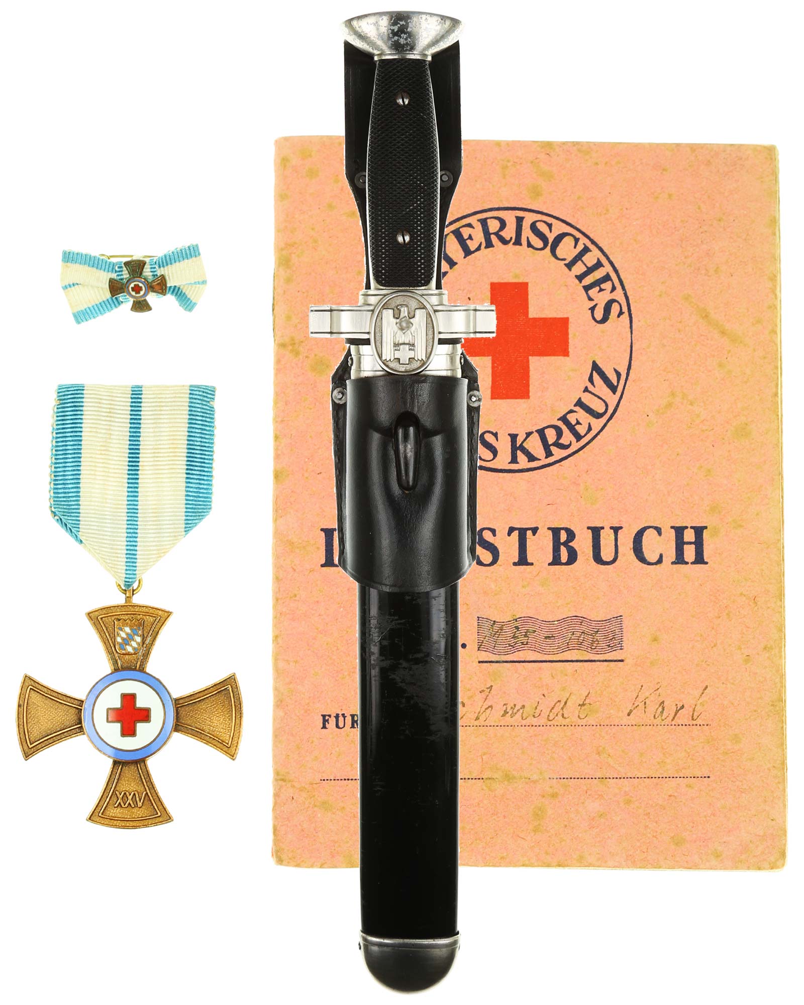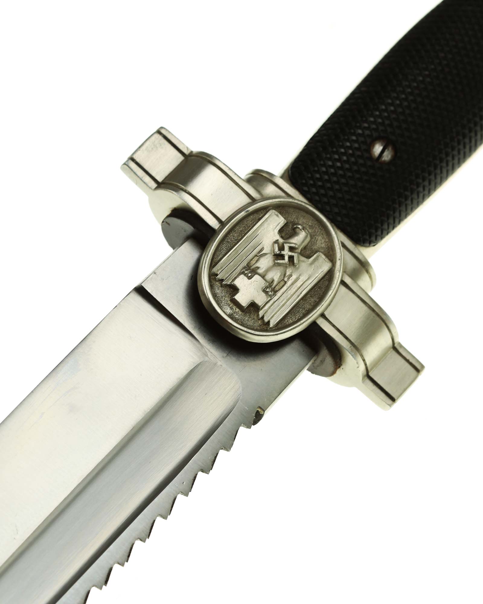 Тесак рядового и унтер-офицерского состава Немецкого красного креста (DRK) образца 1938 года с подвесом. Общая длина: 41,5 см. Ножны с четырьмя винтами (редкий вариант).