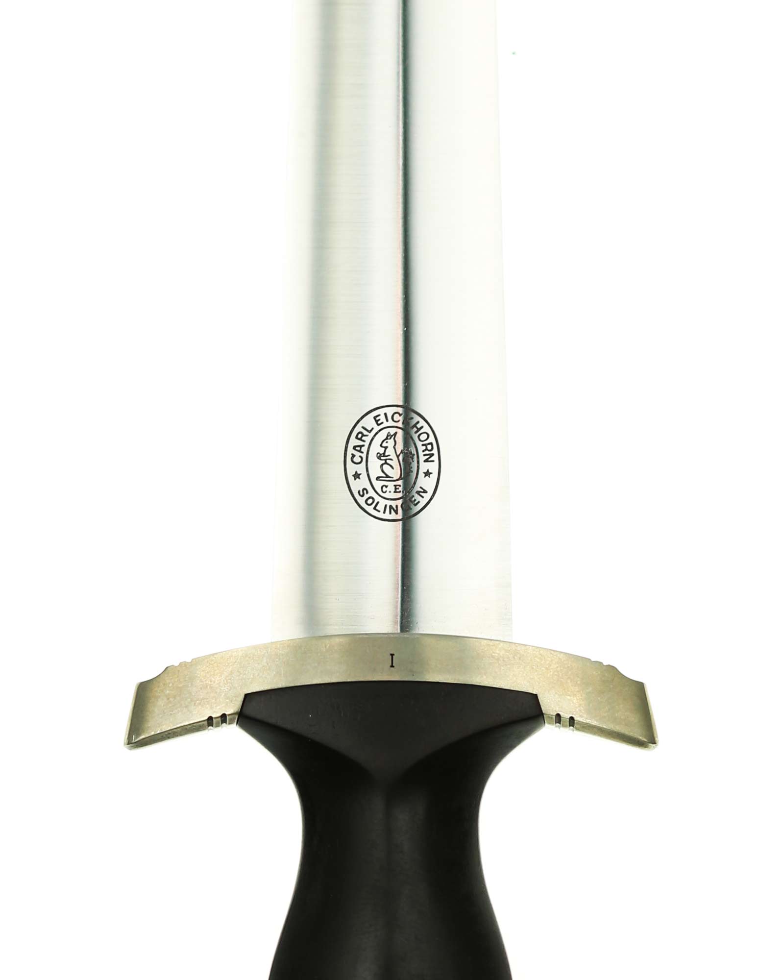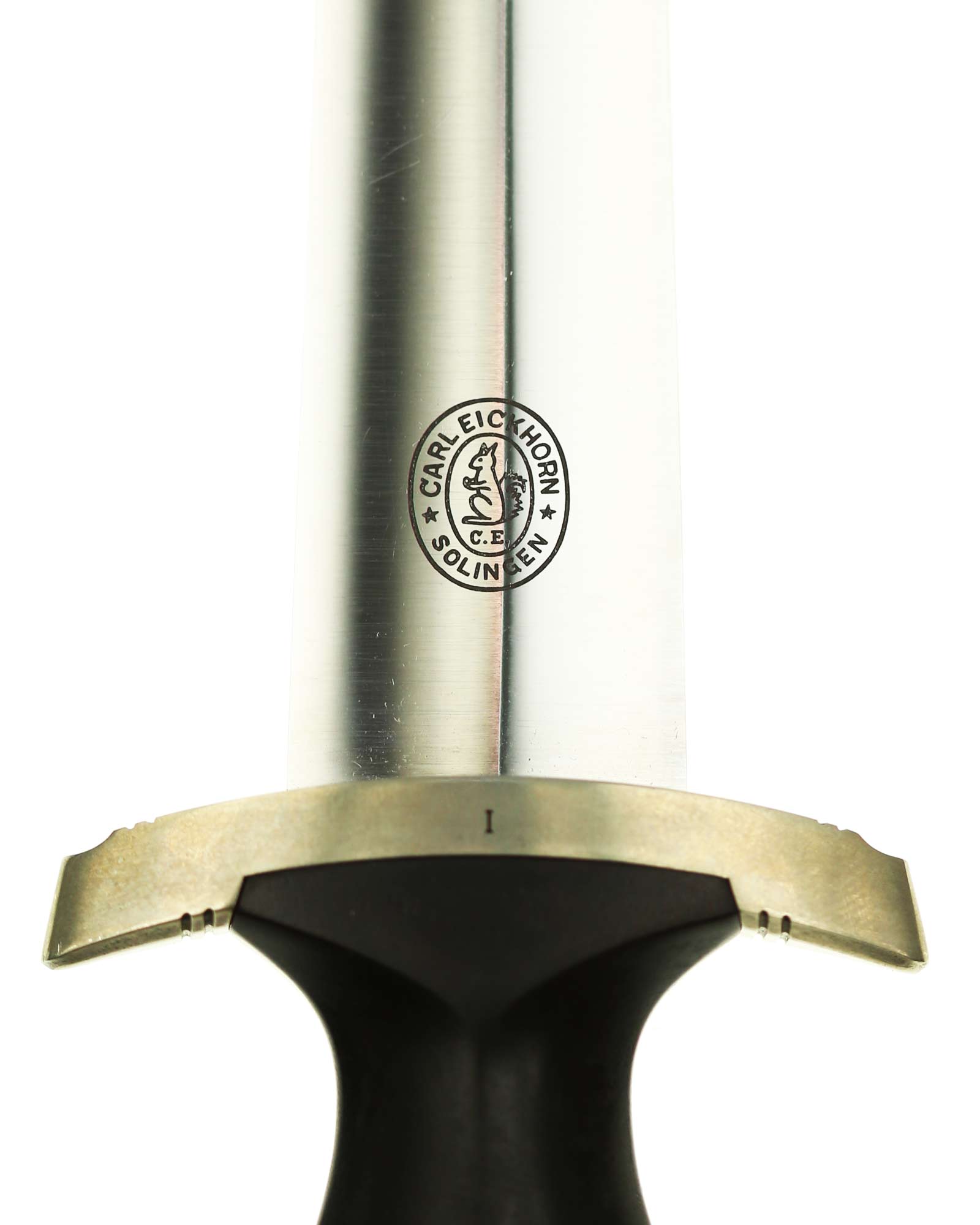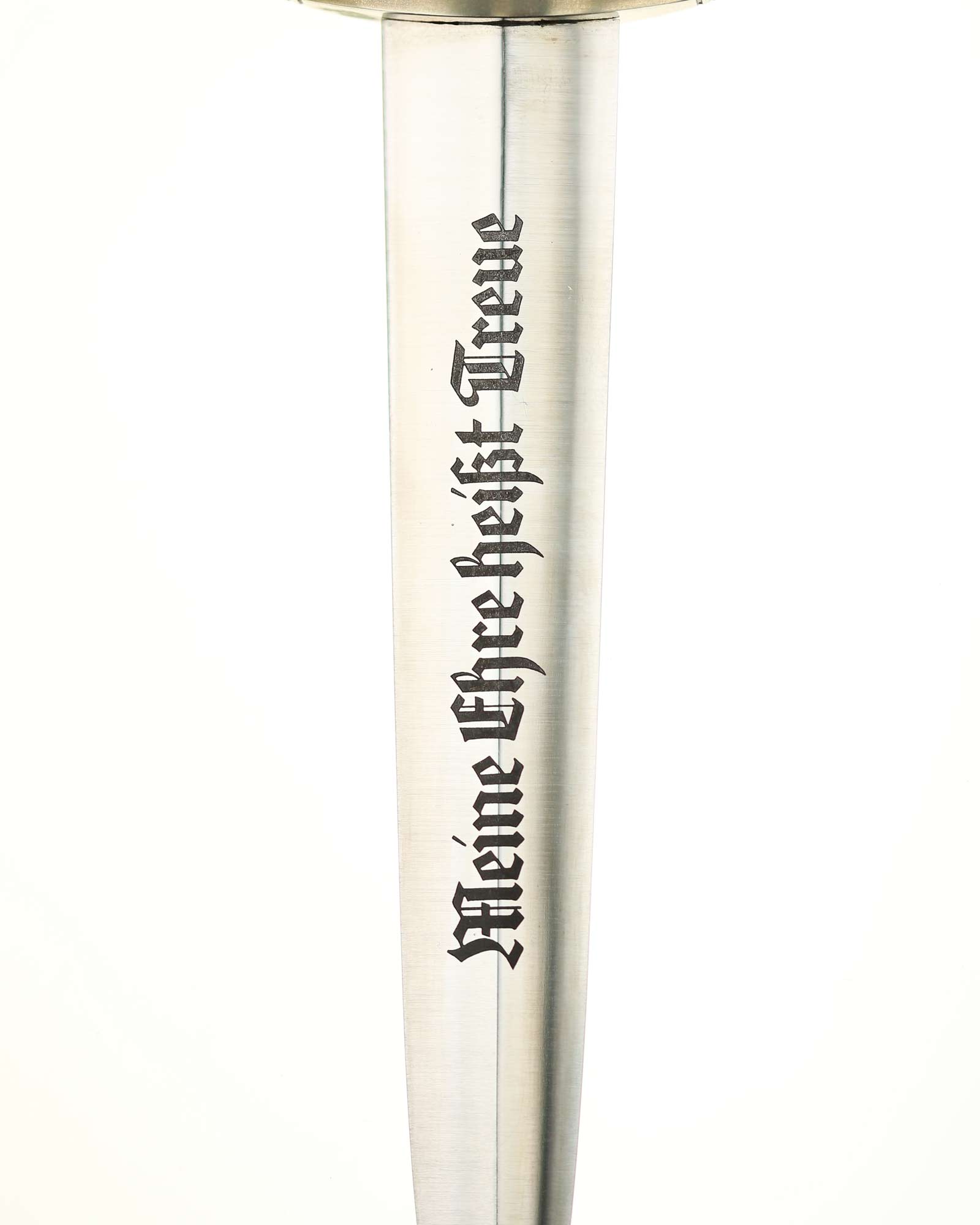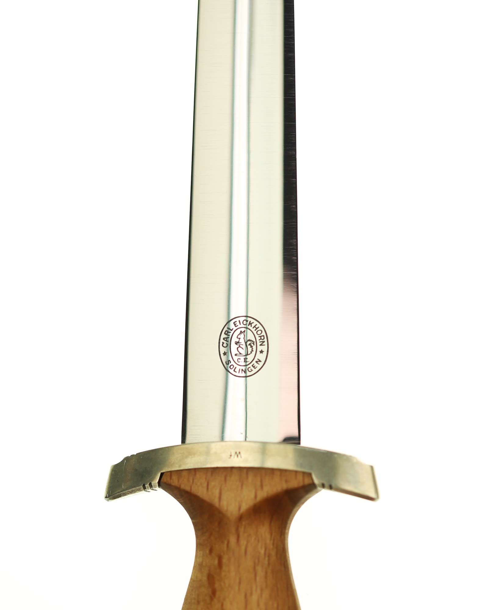 Клинок: Клинок кинжала прямой, стальной, двулезвийный, кинжального типа, с выраженным центральным ребром. На одной стороне клинка методом травления нанесен девиз СС «Meine Ehre heisst Treue» (Моя честь называется верностью). Клинок на оборотной стороне у основания стоит клеймо производителя Carl Eickhorn Solingen (Карл Айкхорн Золинген).
