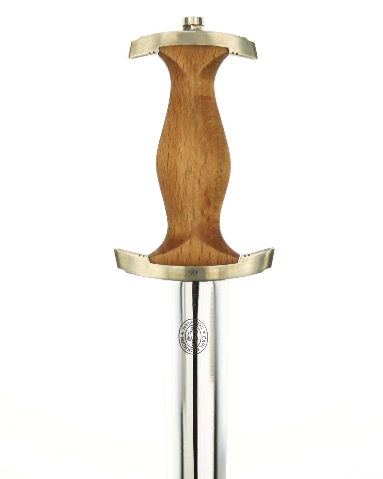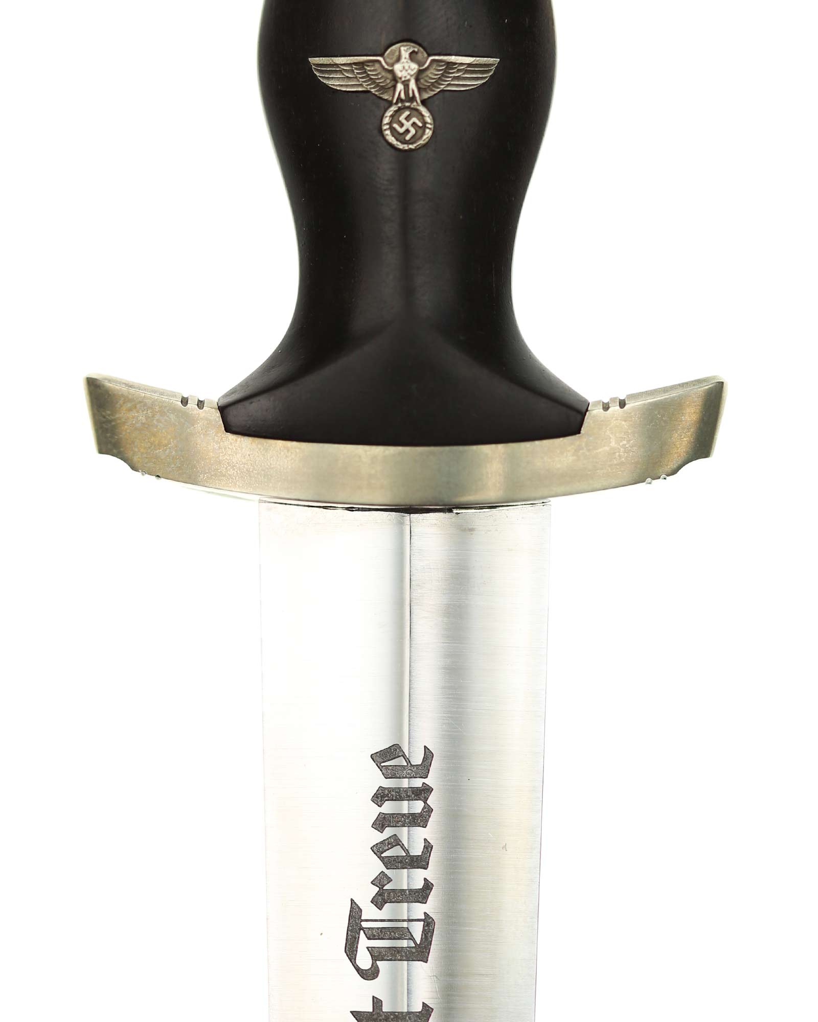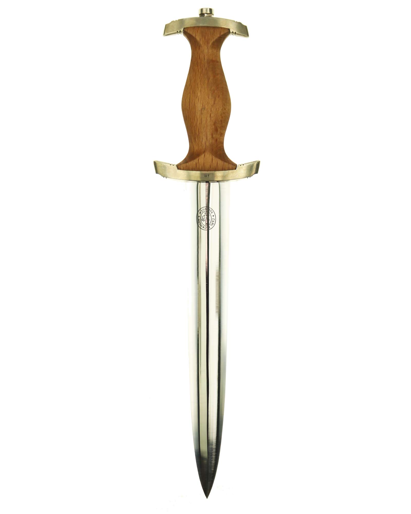 Клинок: Клинок кинжала прямой, стальной, двулезвийный, кинжального типа, с выраженным центральным ребром. На одной стороне клинка методом травления нанесен девиз СС «Meine Ehre heisst Treue» (Моя честь называется верностью). Клинок на оборотной стороне у основания стоит клеймо производителя Carl Eickhorn Solingen (Карл Айкхорн Золинген).