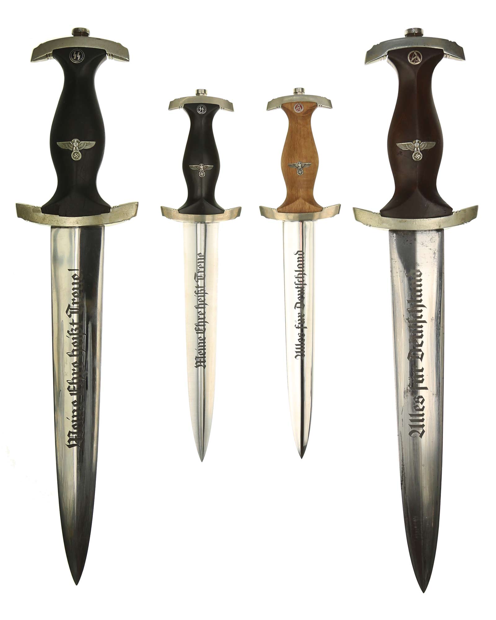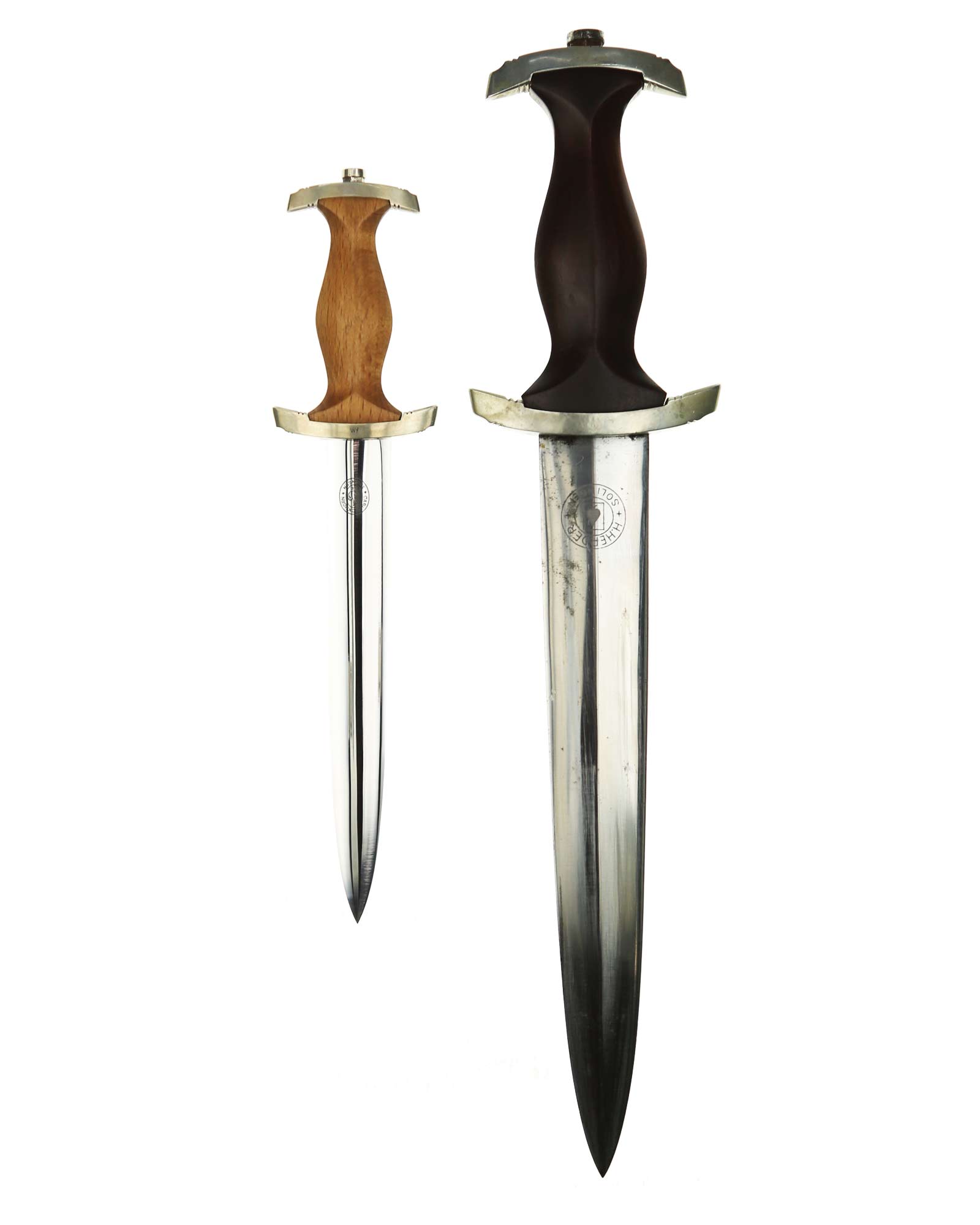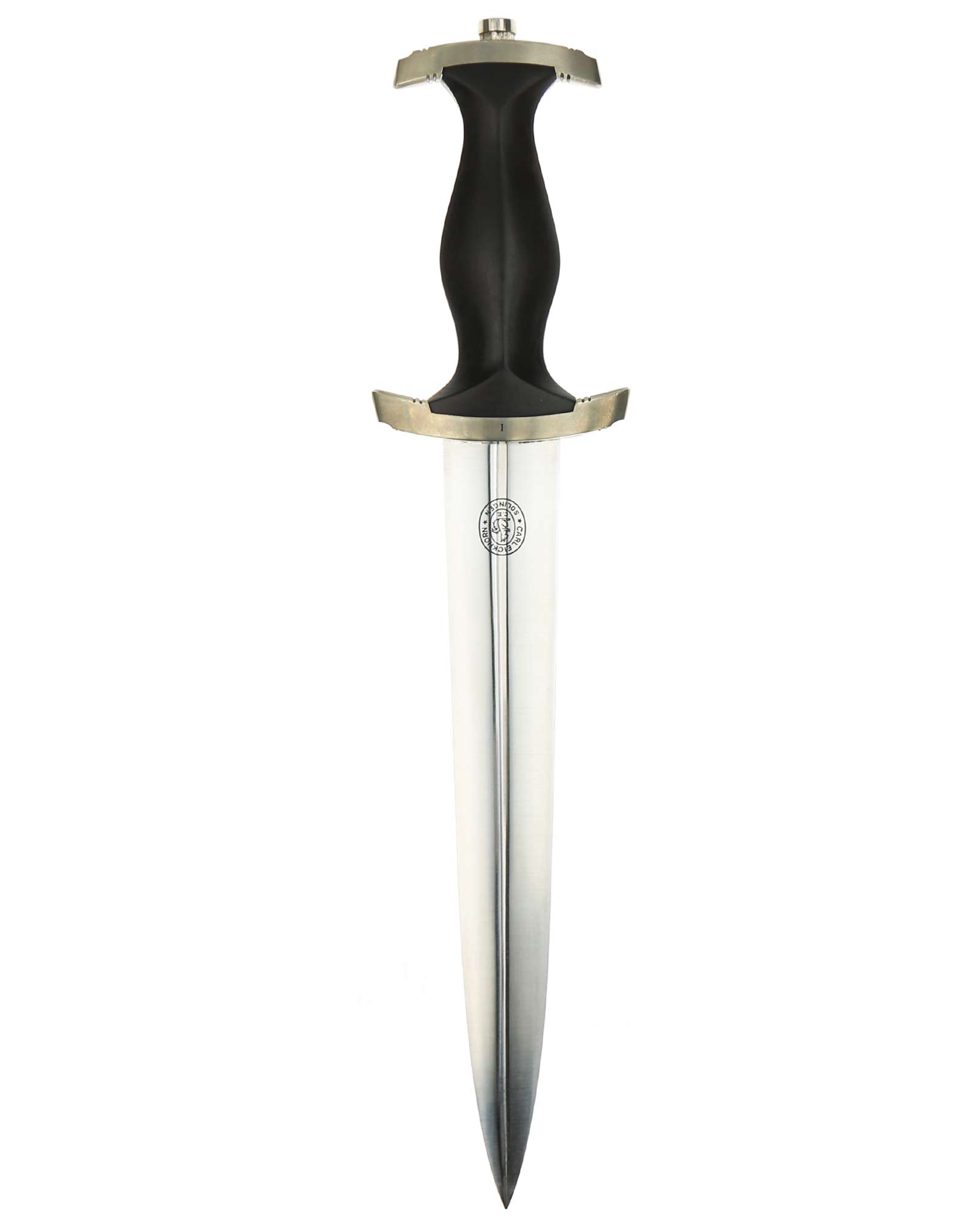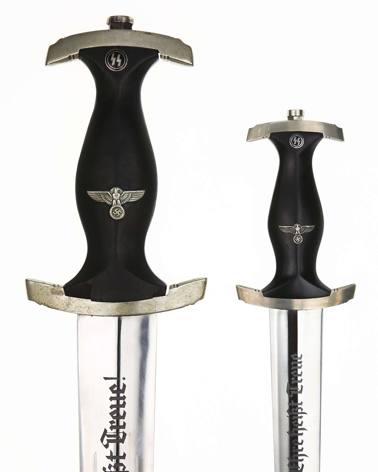 Клинок: Клинок кинжала прямой, стальной, двулезвийный, кинжального типа, с выраженным центральным ребром. На одной стороне клинка методом травления нанесен девиз СС «Meine Ehre heisst Treue» (Моя честь называется верностью). Клинок на оборотной стороне у основания стоит клеймо производителя Carl Eickhorn Solingen (Карл Айкхорн Золинген).