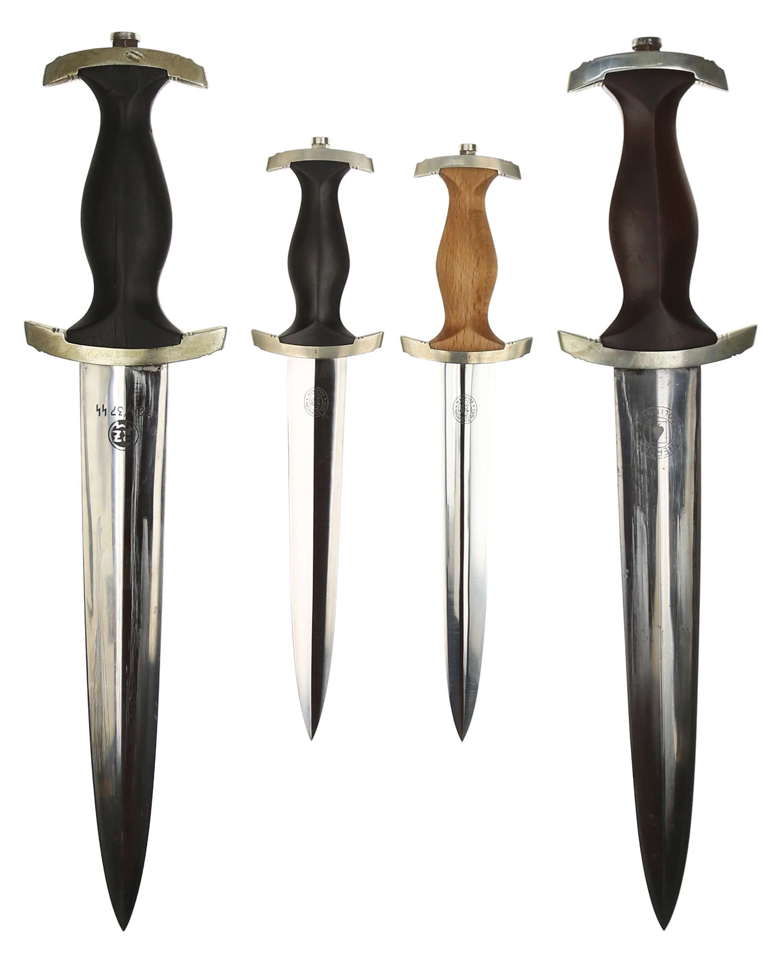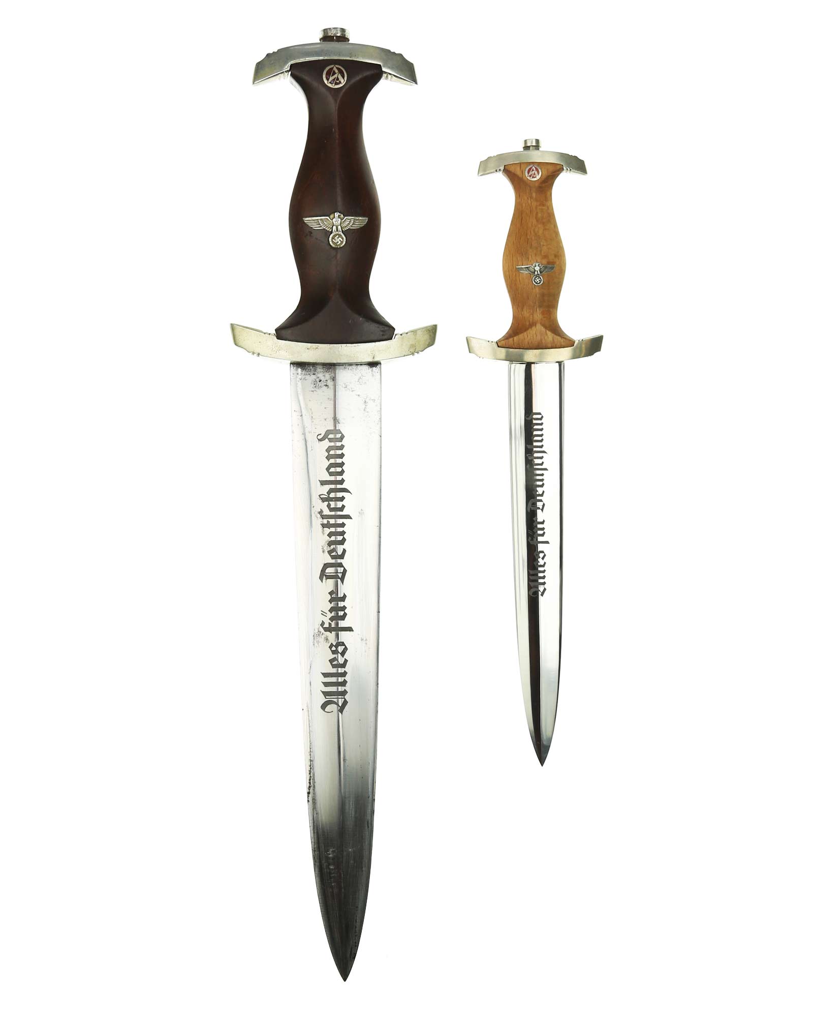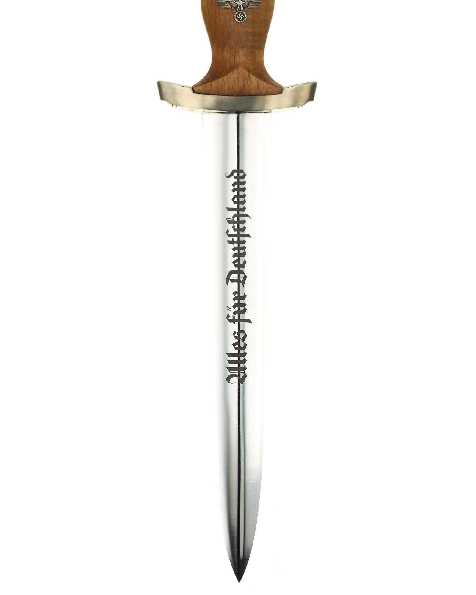 Клинок: Клинок кинжала прямой, стальной, двулезвийный, кинжального типа, с выраженным центральным ребром. На одной стороне клинка методом травления нанесен девиз СА «Всё для Германии» (Alles für Deutchland). Клинок на оборотной стороне у основания стоит клеймо производителя Карл Айкхорн Золинген (Carl Eickhorn Solingen).