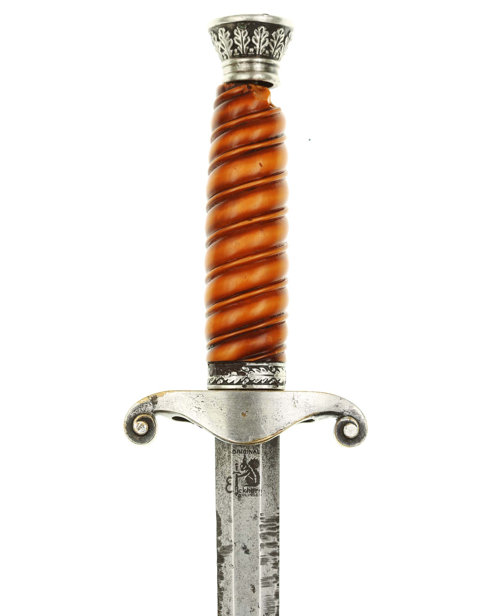 Клинок: Клинок стальной, прямой, двулезвийный, в сечении – шестигранный; боевой конец – ромбического сечения, полированный. На пяте клинка нанесено клеймо немецкой фирмы производителя «Карл Айкхорн Золинген» (Carl Eickhorn Solingen).