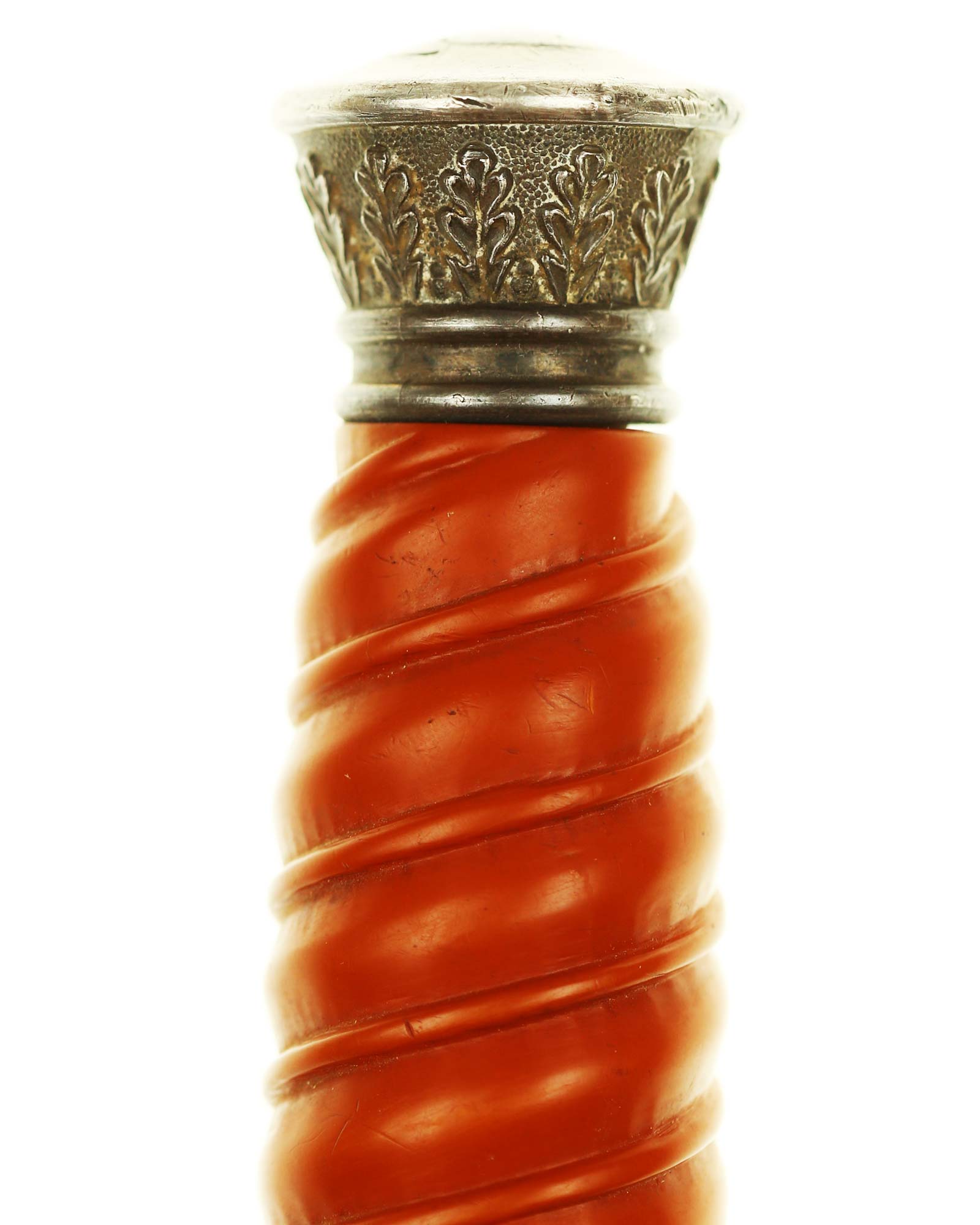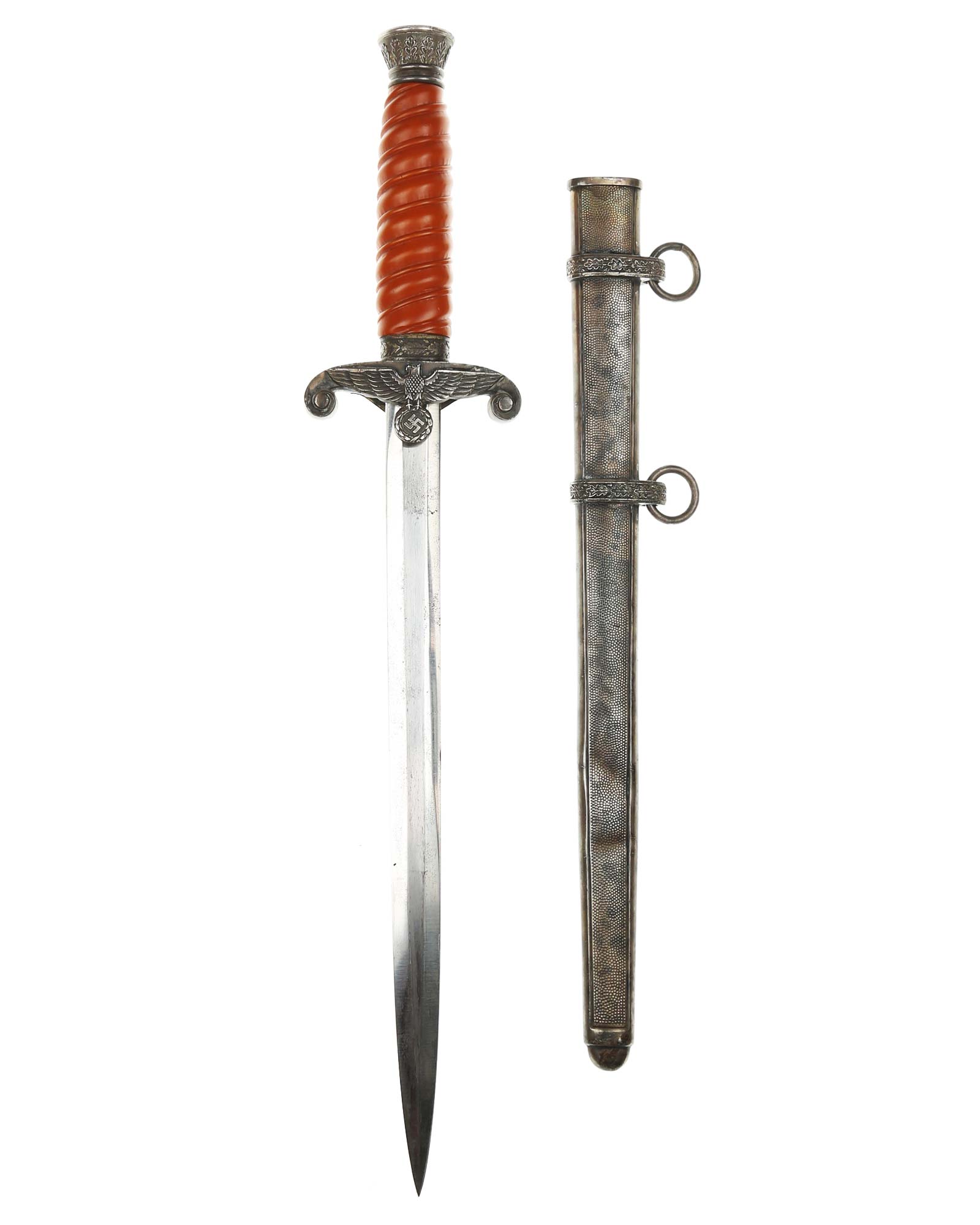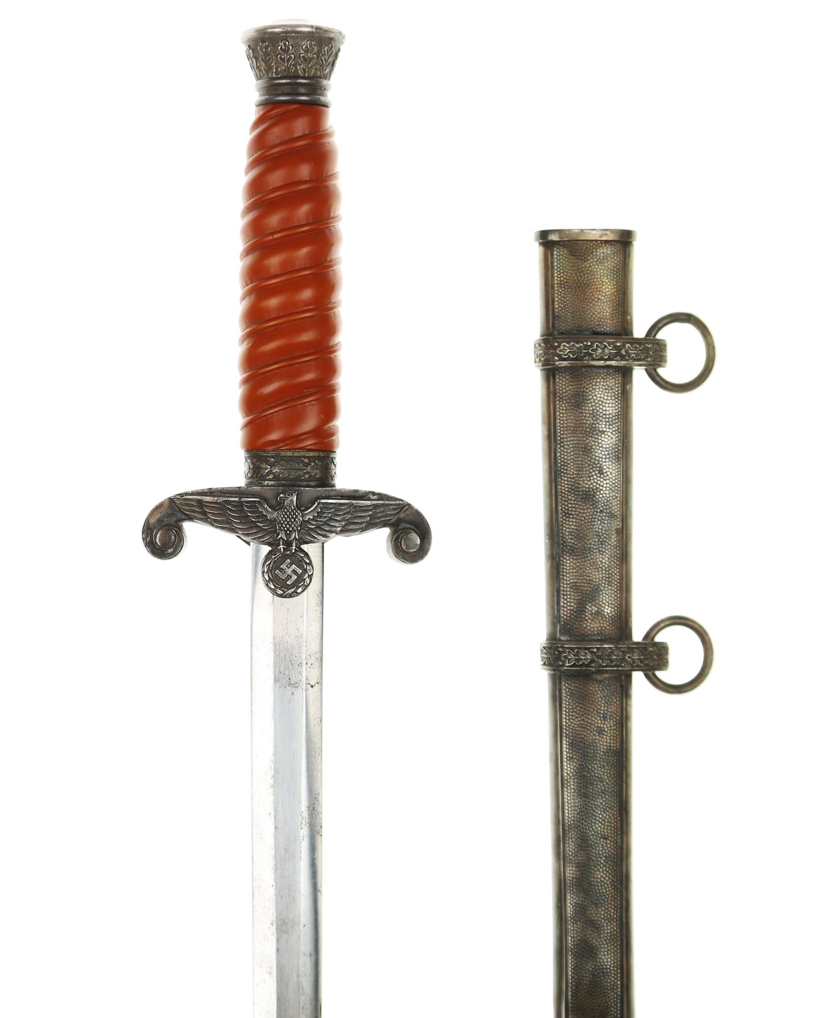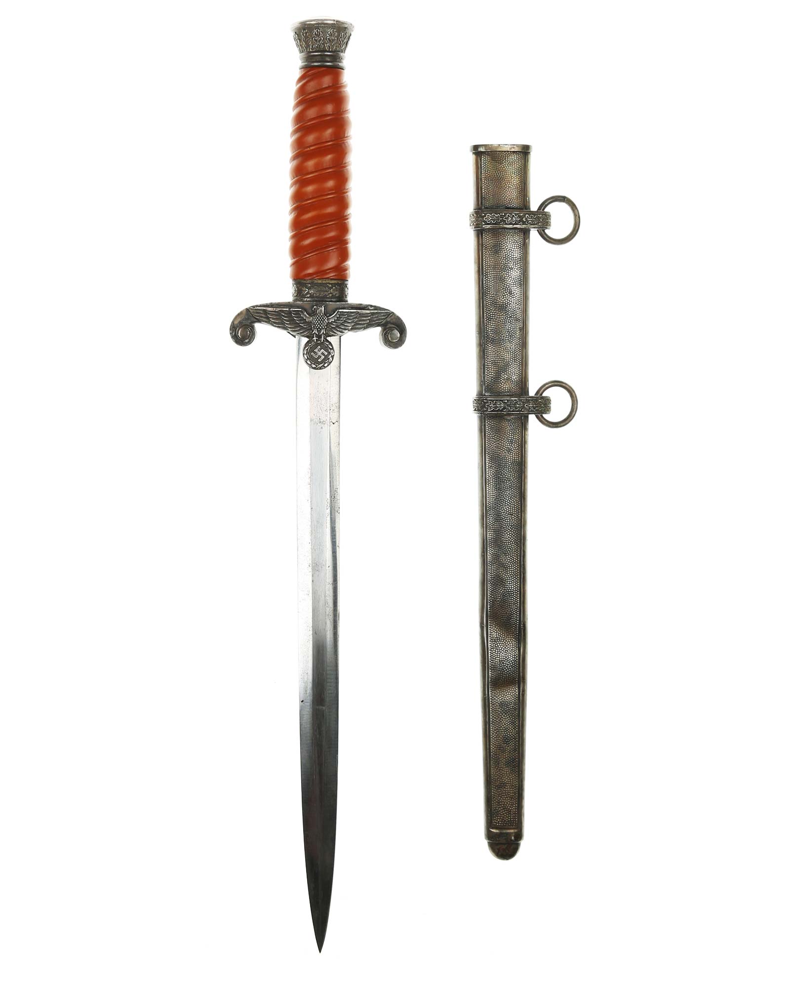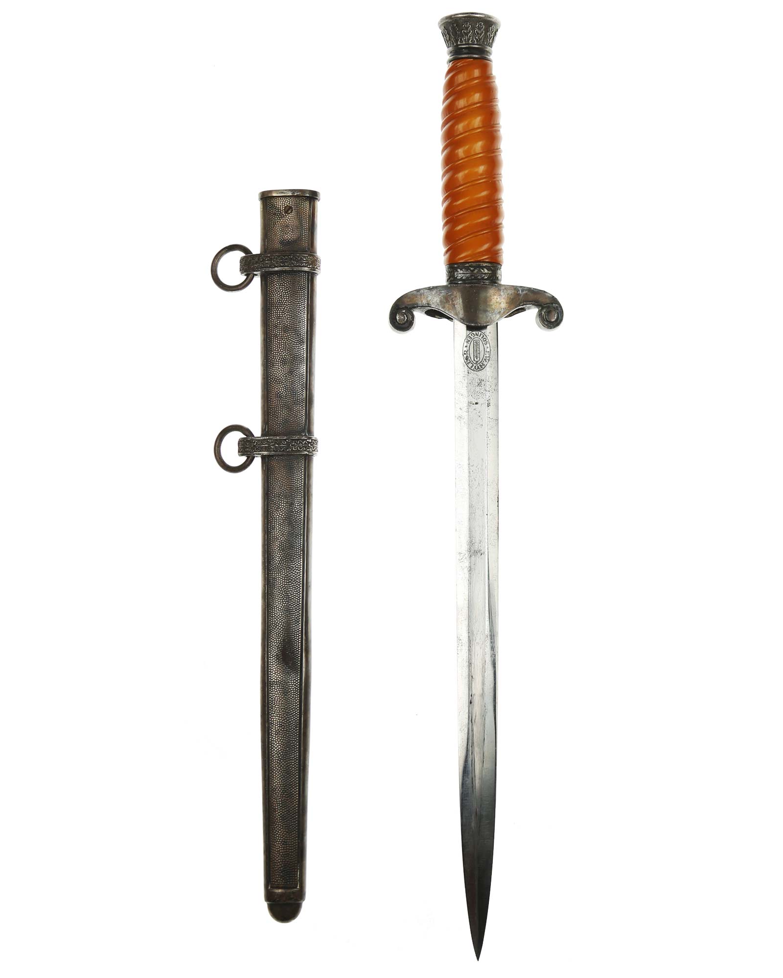 Рукоять: Рукоять из пластмассы, в сечении – овальная, с двойными поперечными желобками. Снизу на рукояти расположена металлическая втулка с изображениями дубовых листьев. Головка рукояти – литая, конической формы, имеет в нижней части два ободка, также украшена изображениями дубовых листьев. Крестовина кортика металлическая, литая, с симметричными концами, закругленными и загнутыми вниз. На перекрестье с лицевой стороны рельефное изображение германского орла, держащего в когтях венок со свастикой.