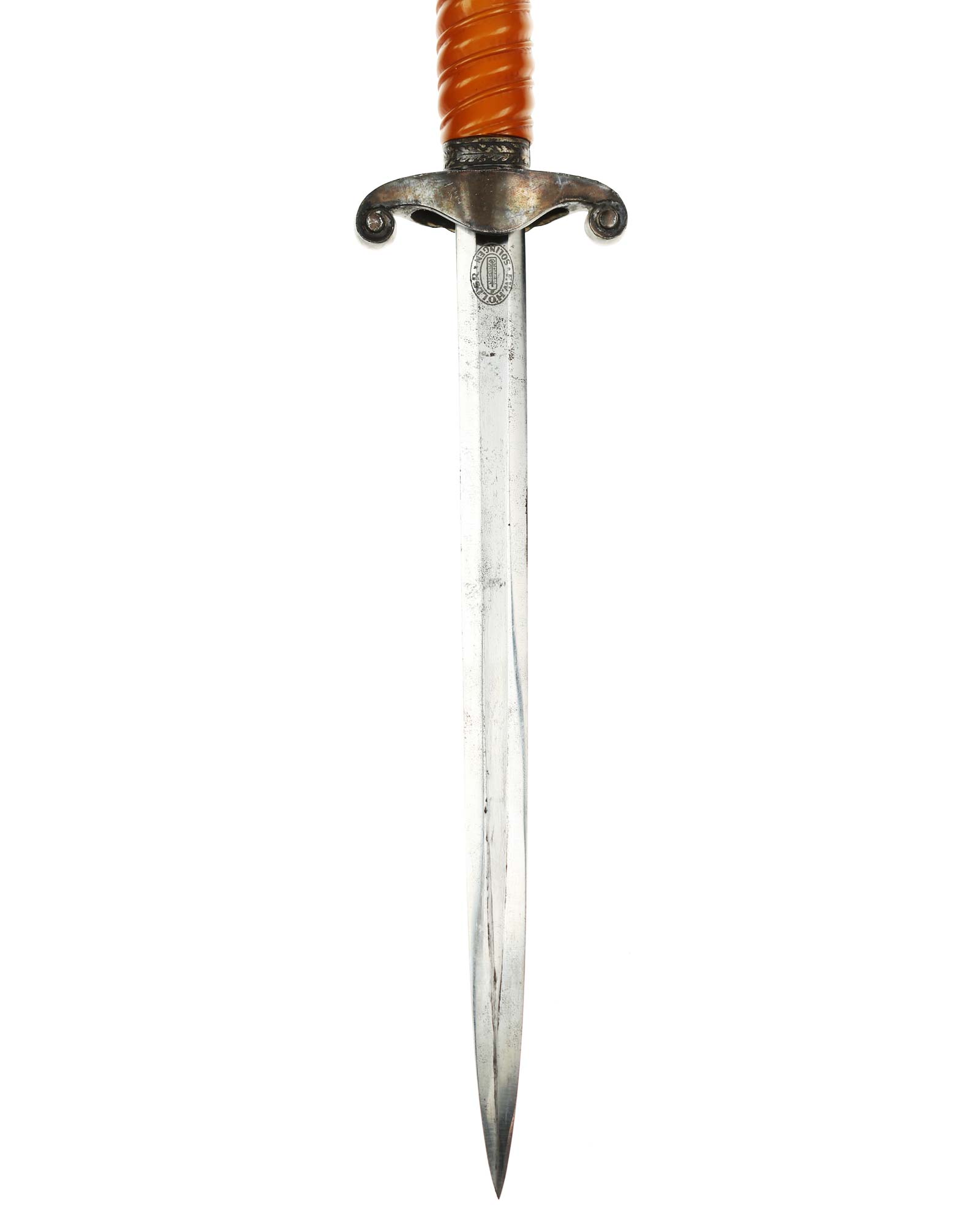 Клинок: Клинок стальной, прямой, двулезвийный, в сечении – шестигранный; боевой конец – ромбического сечения, полированный. На пяте клинка нанесено надпись «F.W. Höller» — клеймо немецкой фирмы производителя «Ф.В. Хёллер Золинген» (F.W. Höller Solingen).