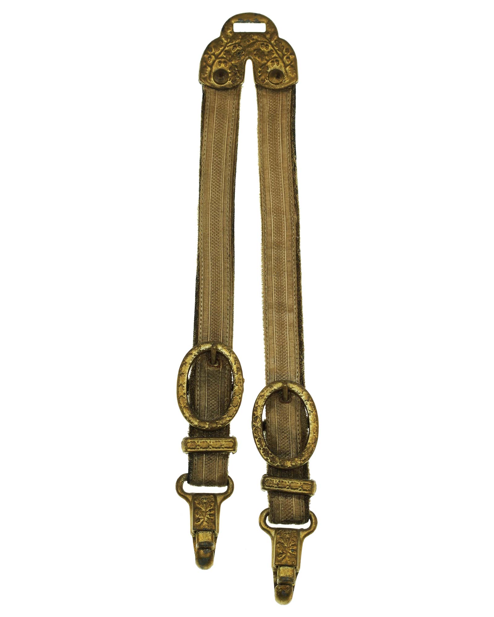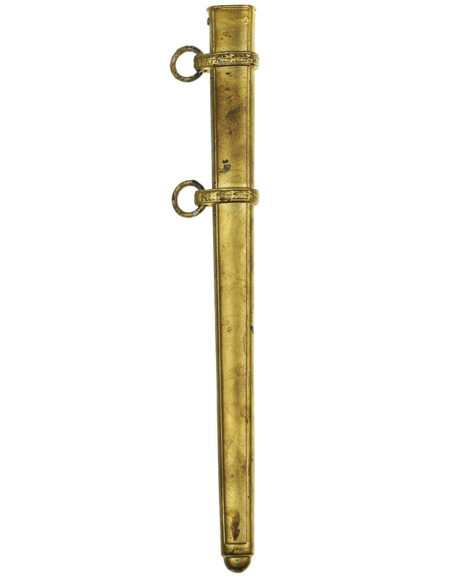 Ножны: Ножны металлические, имеющие с внешней и внутренней стороны мелкоточечную рифленую поверхность в линейной окантовке; прибор состоит из вставного устья; наконечник ножен выполнен в виде полуовала. Обоймицы (гайки) украшены рельефными изображениями дубовых листьев; на каждой обоймице (гайке) подвижно укреплено по одному кольцу. Металлические элементы эфеса и ножны посеребрены.