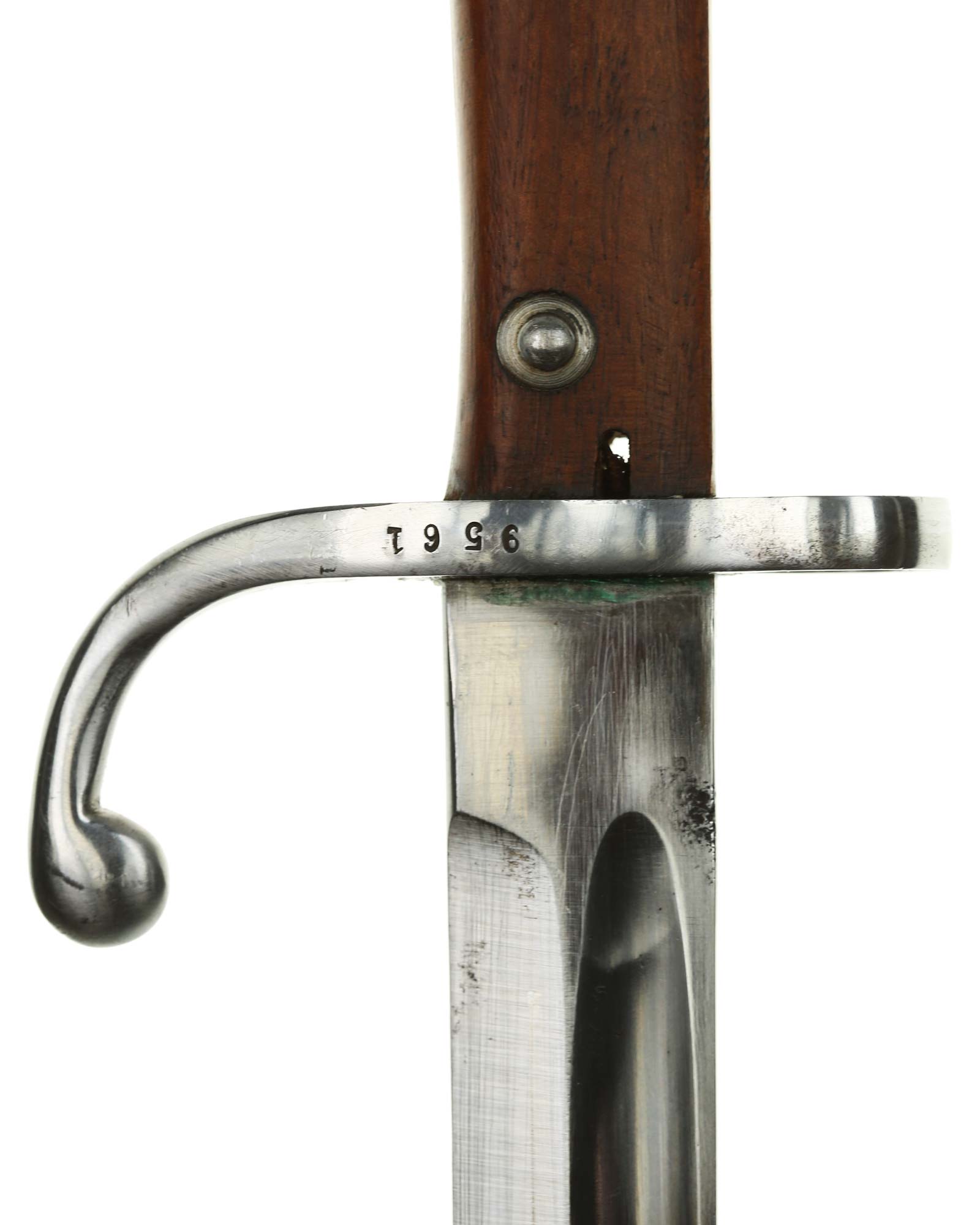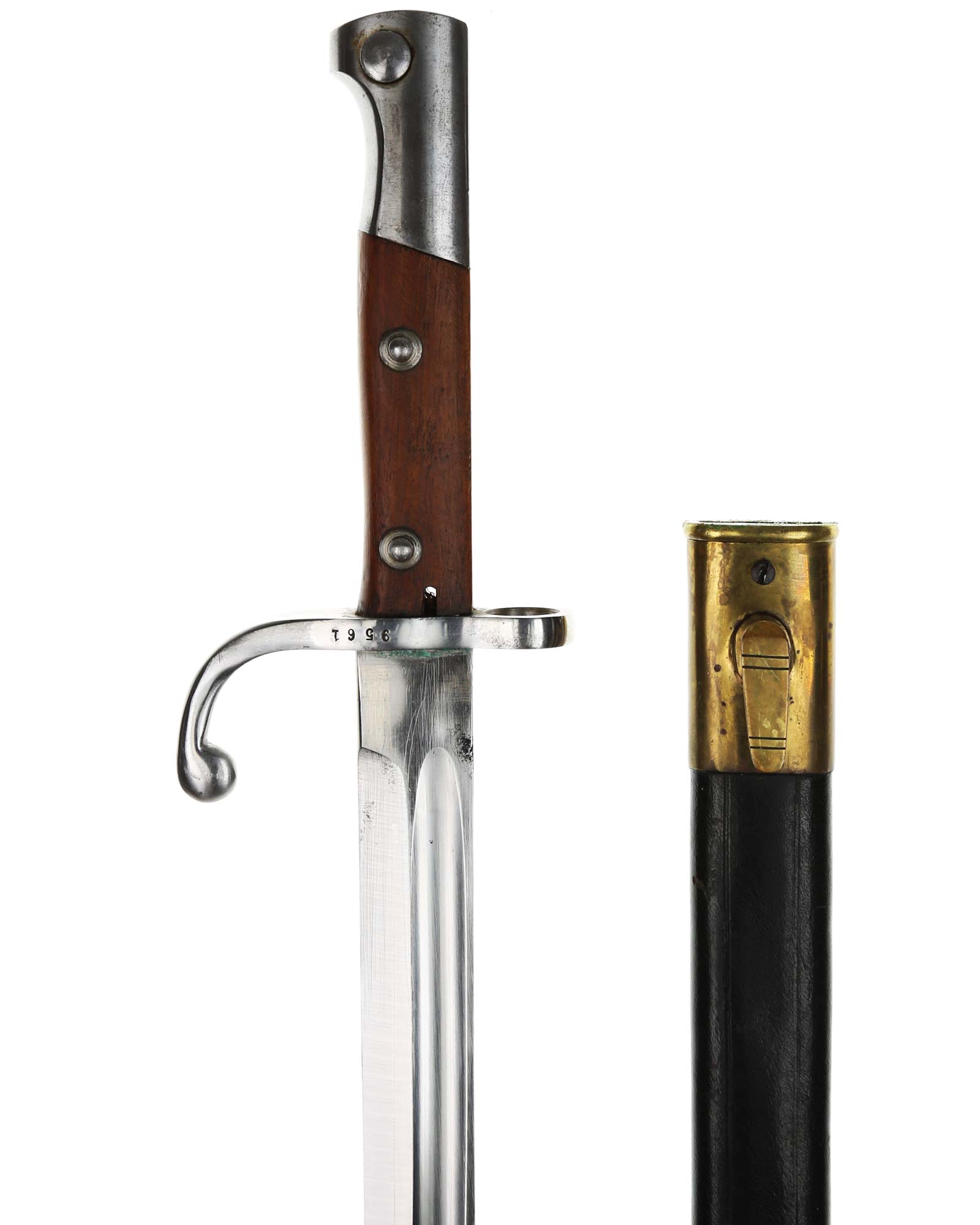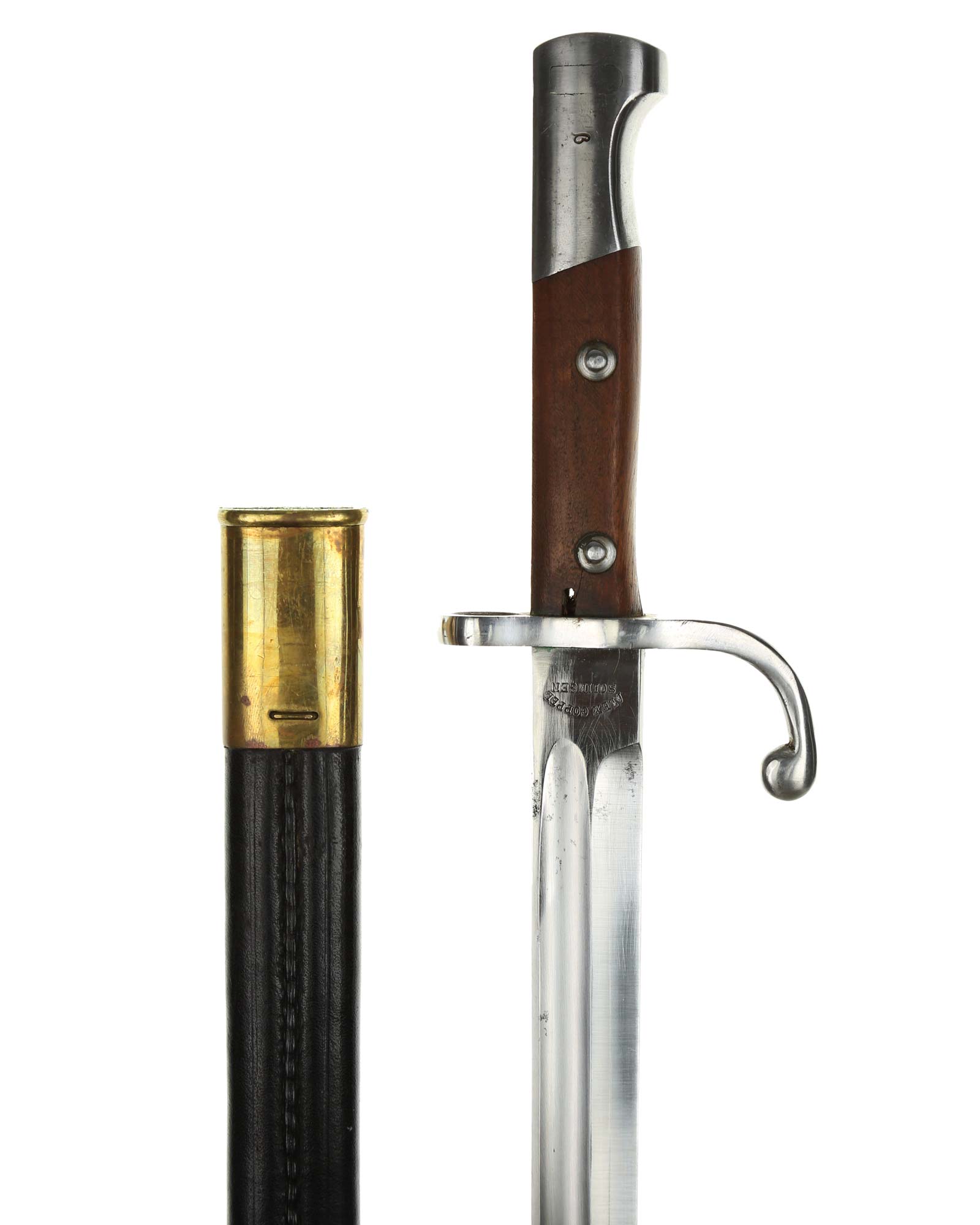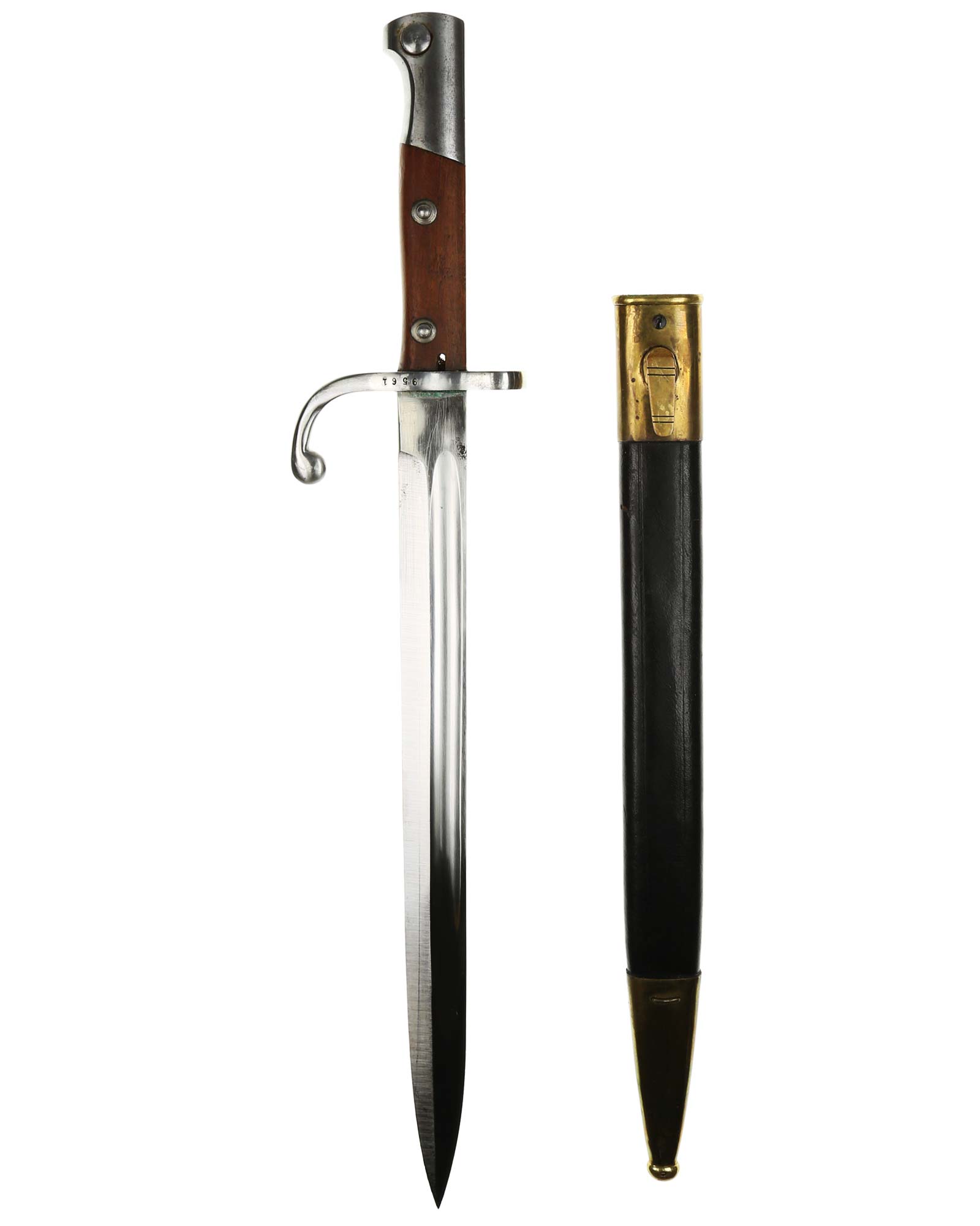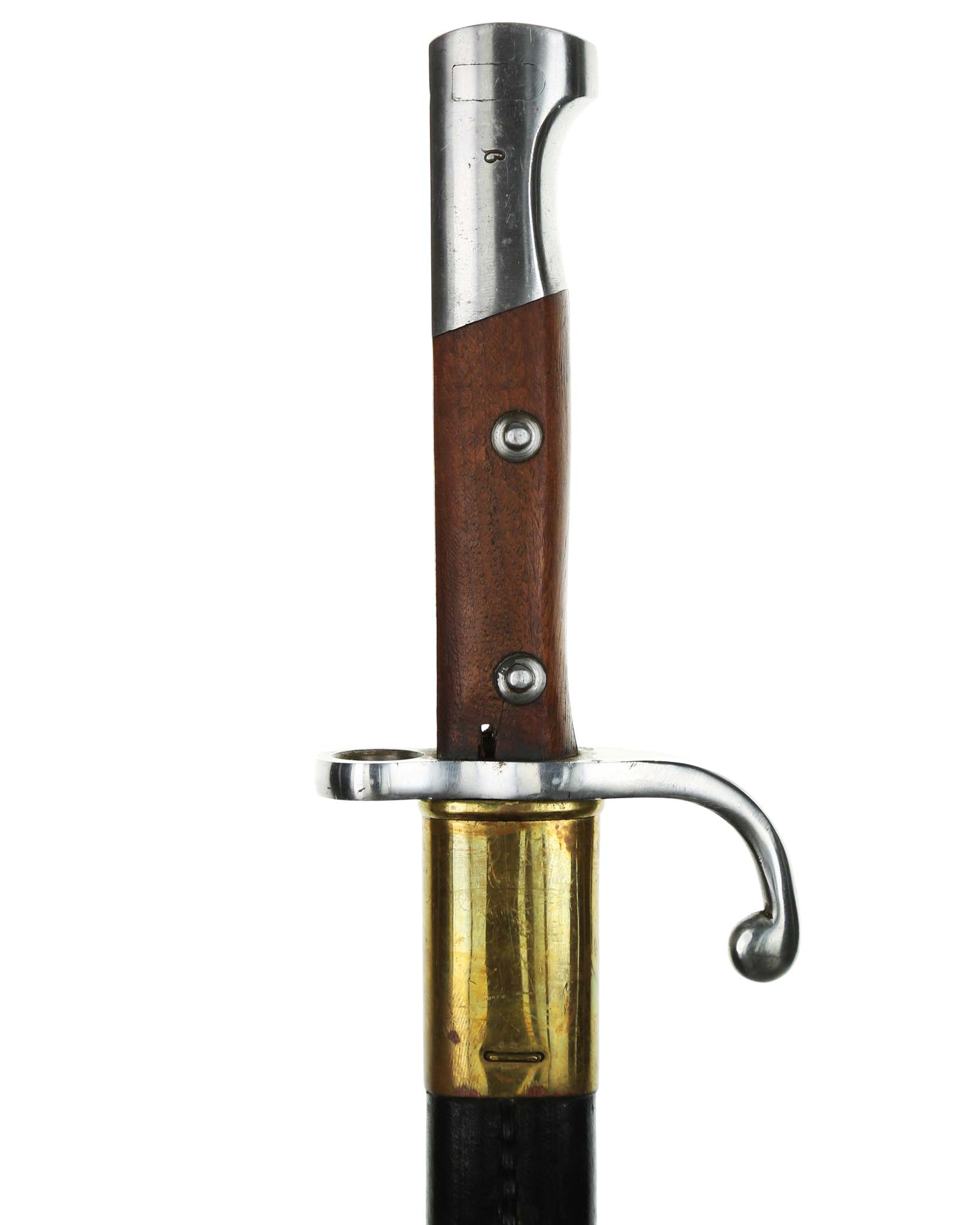 Штык образца 1908 года к винтовке системы Маузера образца 1908 года. Штык поставлялся в Бразилию вместе с винтовкой образца 1908 года, производившейся в Германии. Рукоять образована двумя деревянными щечками, скреплёнными с хвостовиком двумя заклёпками (изредка винтами). Отверстие для чистки шомпола прямоугольное, расположено в щечках рукояти, рядом с крестовиной. В головке рукояти Т-образный паз с цилиндрическим расширением и пружинная защёлка с внутренним расположением спиральной пружины. Крестовина с загнутым вперёд концом, оканчивающимся шариком, и с кольцом для ствола со стороны обуха клинка. Клинок штыка однолезвийный, с долом с обеих сторон. Ножны кожаные со латунным прибором, состоящим из устья с крючком и наконечника с шариком на конце.