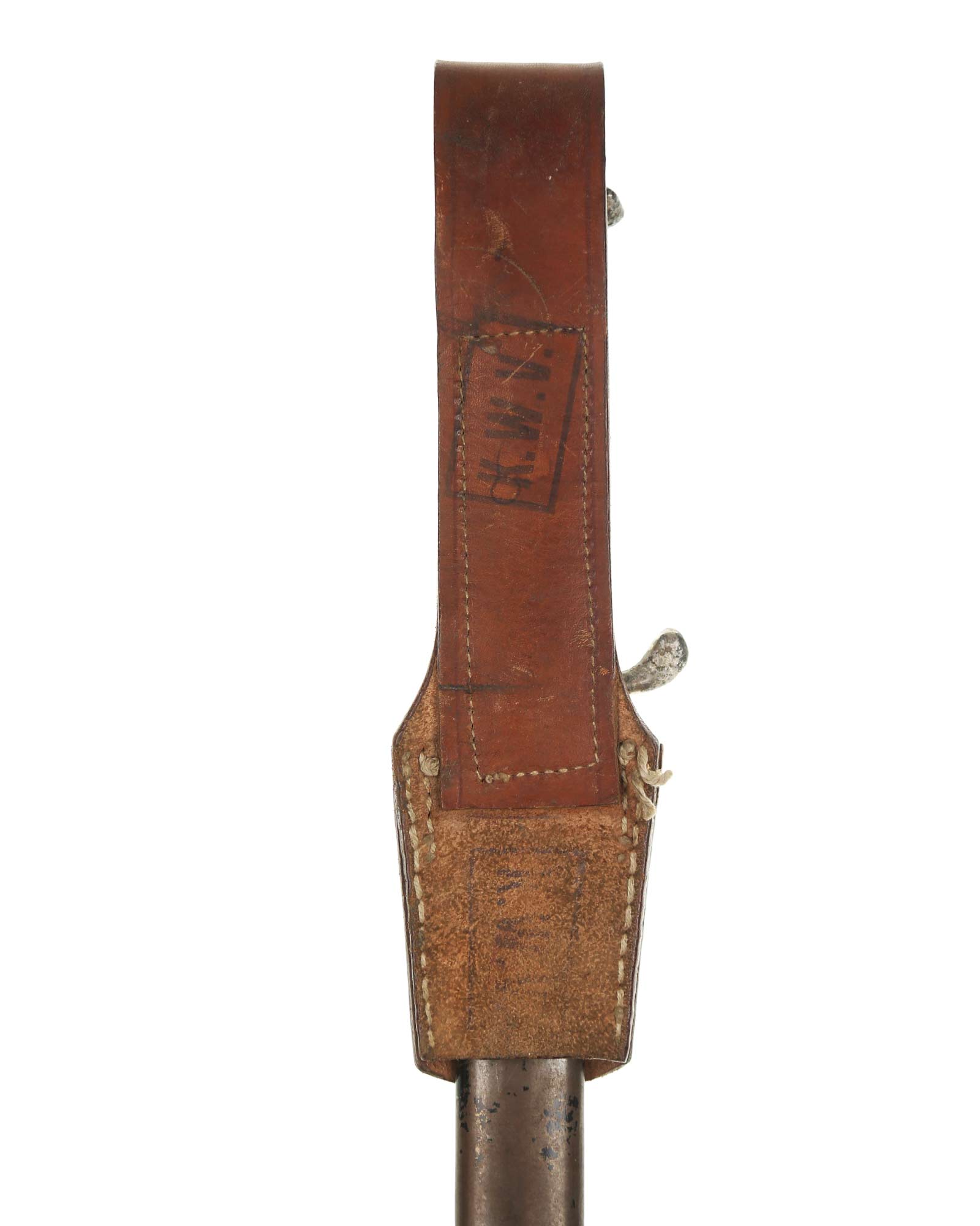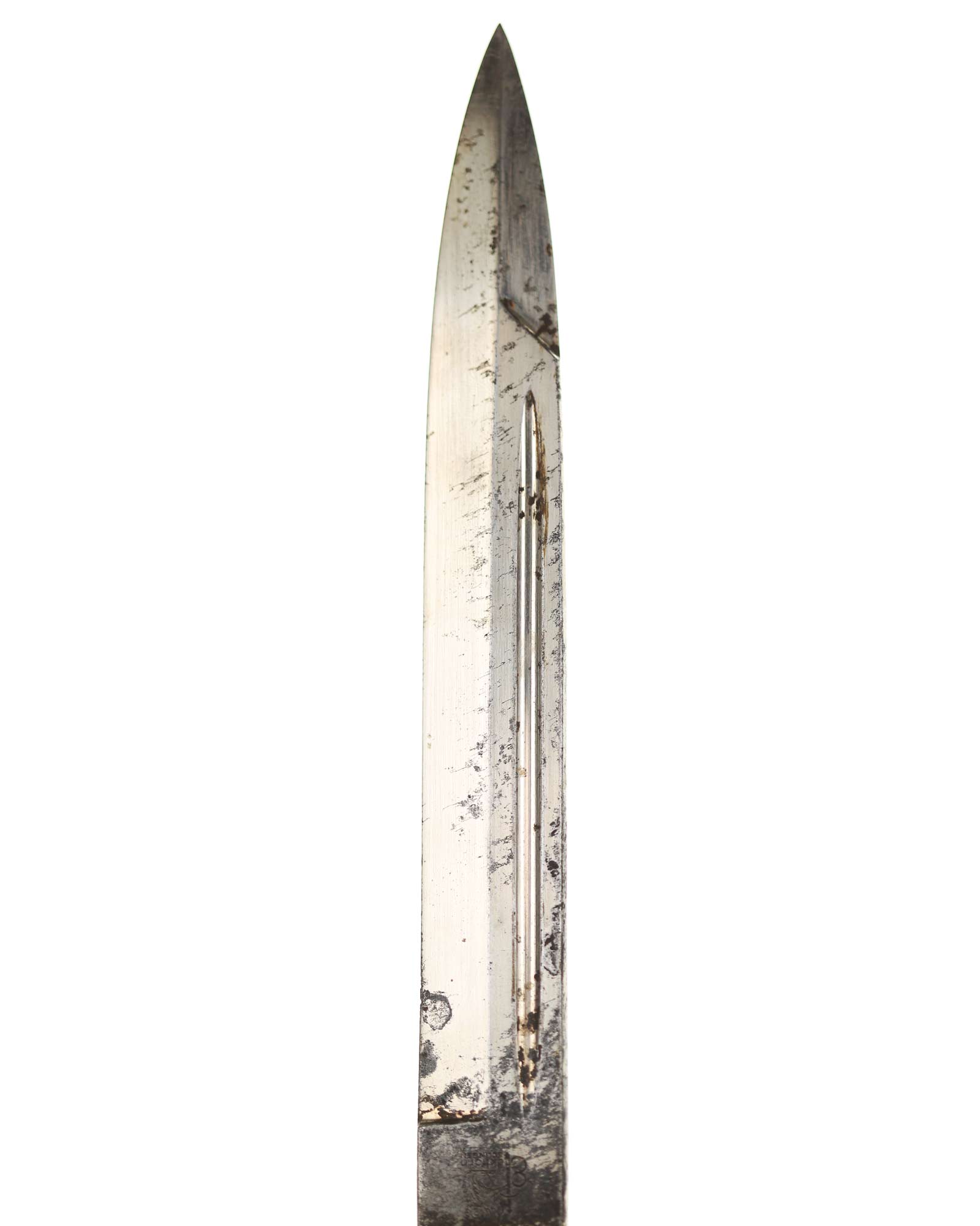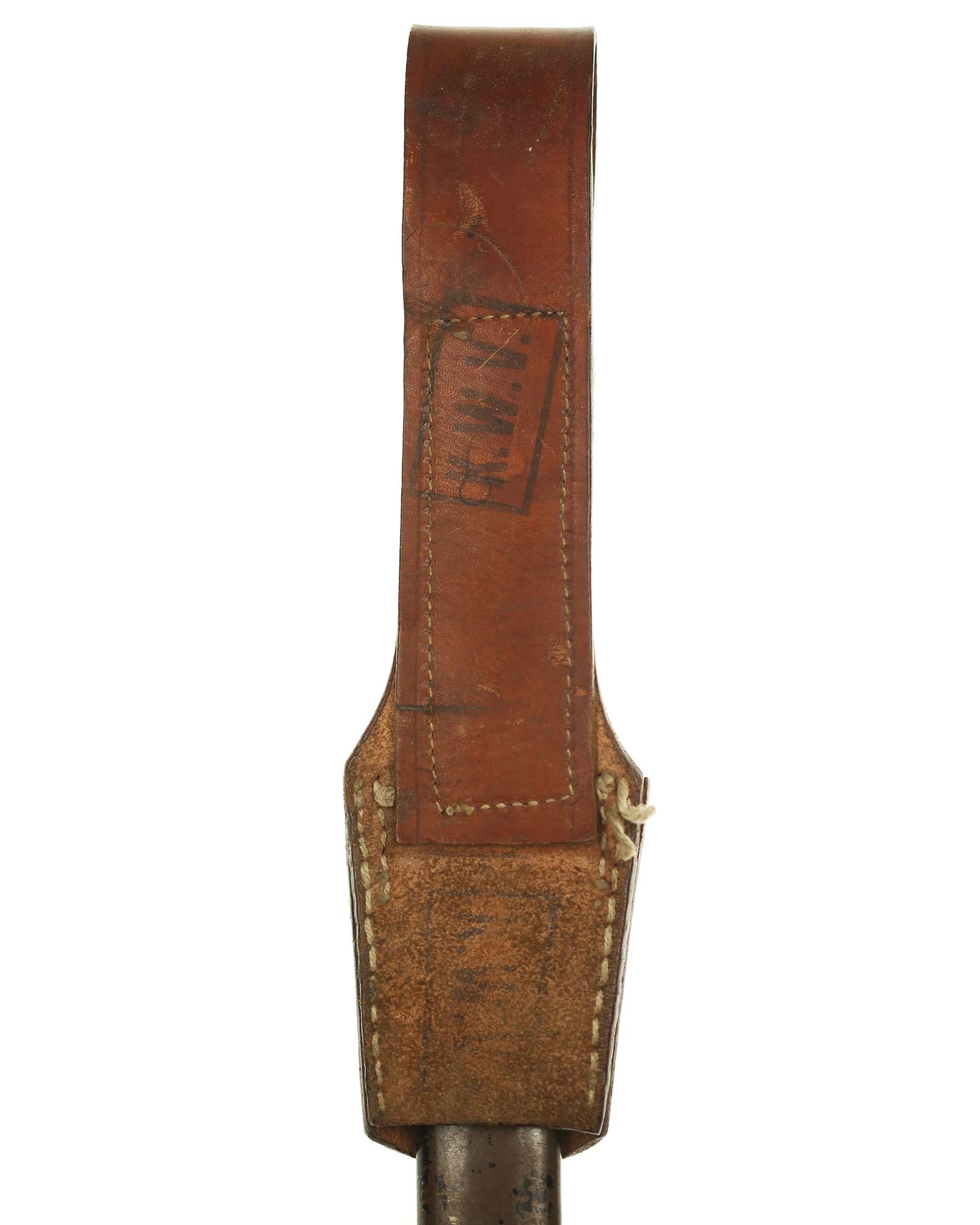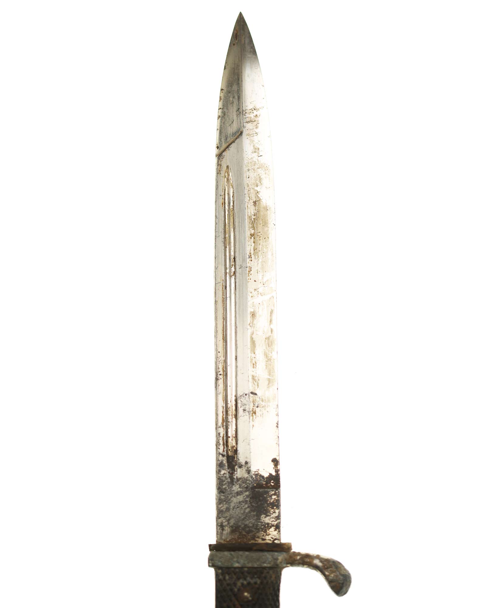 Штык внестроевой обр. 1933-45 гг. (тип K98). Рукоять образована двумя пластмассовыми рифлеными щечками, скрепленными с хвостовиком клинка заклепками. Головка рукояти стилизована под птичью голову. Клинок прямой, стальной, однолезвийный, с долом на каждой стороне и пилой на обухе. Ножны стальные, окрашены в черный цвет, с крючком и шариком на конце. На пяте клинка имеется клеймо известного производителя - Original Eickhorn Solingen, клеймо немецкой фирмы «Карл Айкхорн» Золинген.