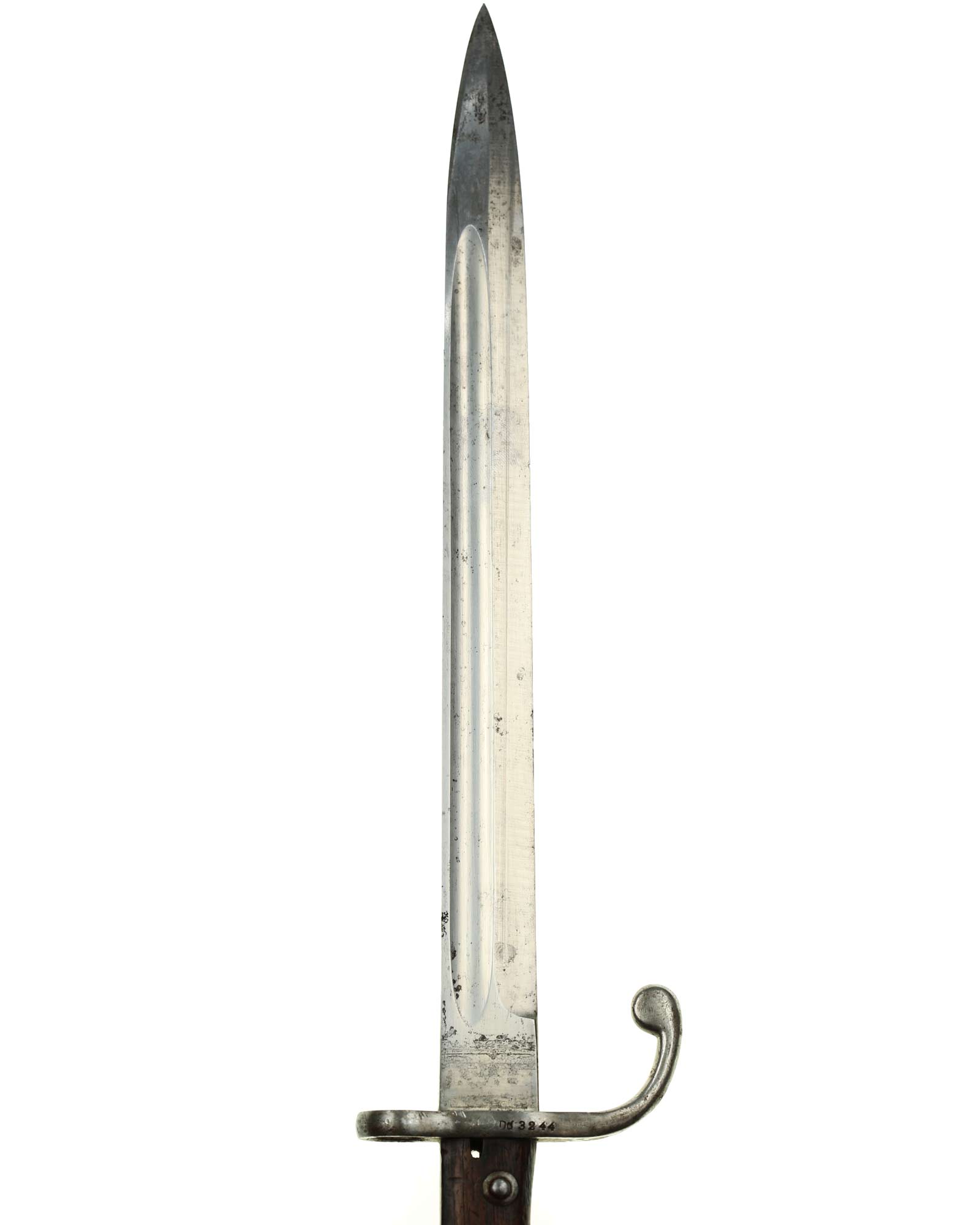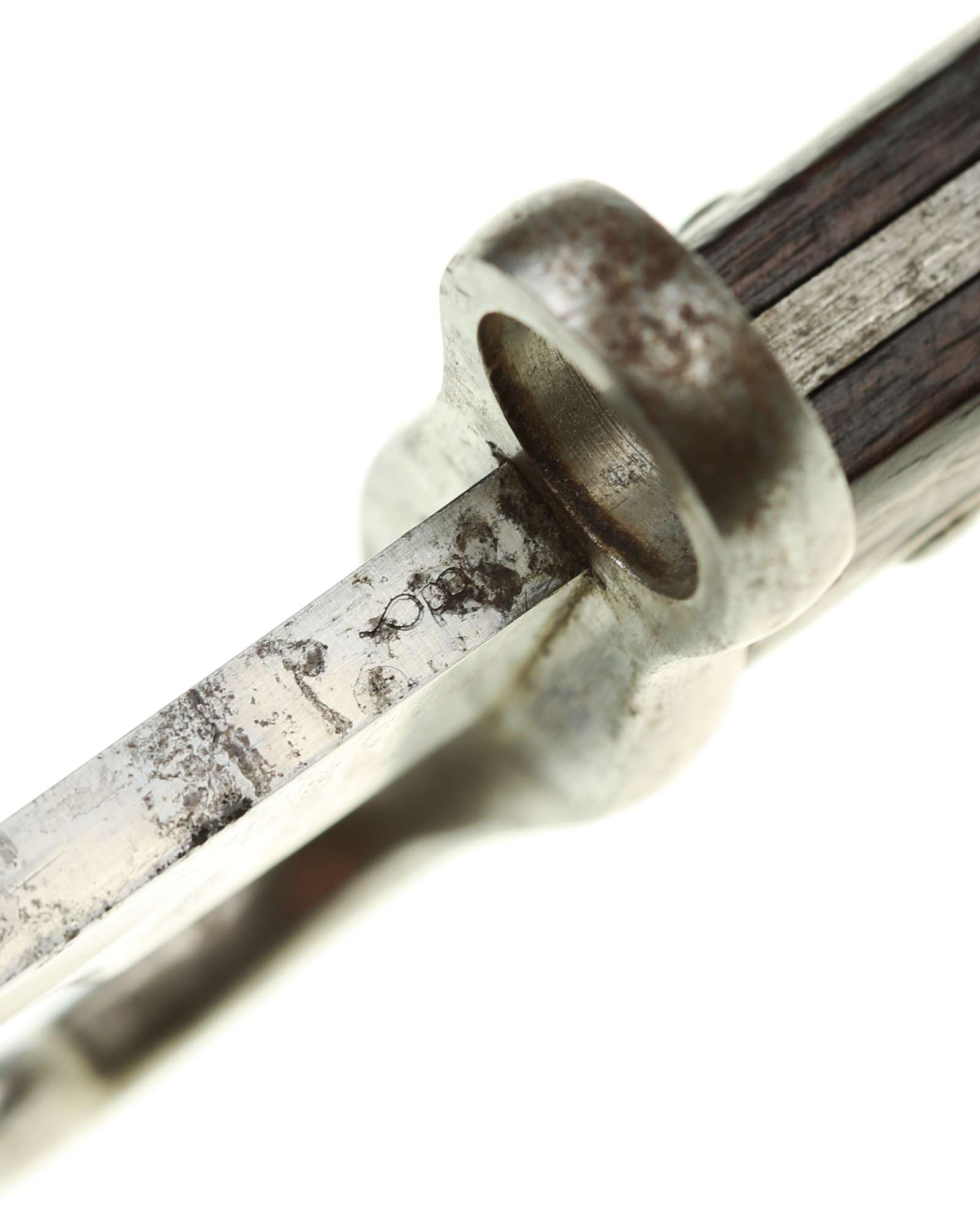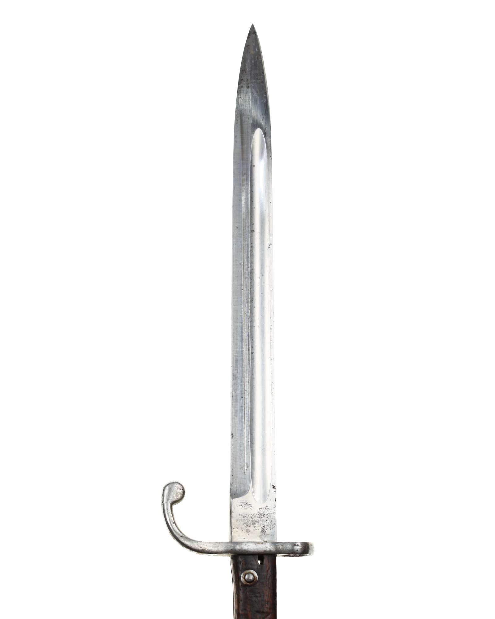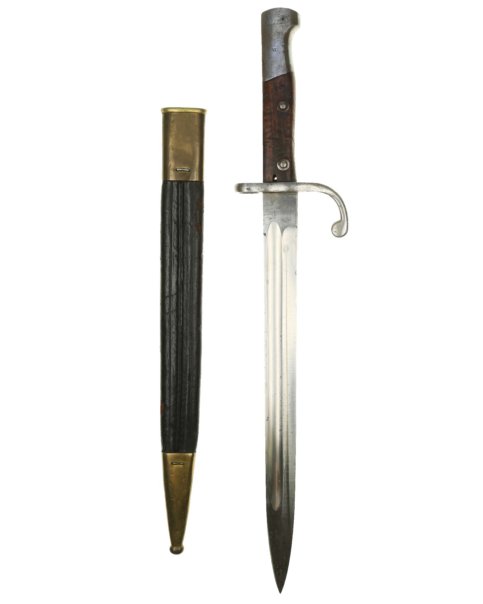 Хорошо сохранившийся штыk Mauser M1908 для Бразилии, изготовленный компанией WKC, Золинген. Классическая комплектация с оригинальными кожаными ножнами и латунным прибором. Общая длина: 46,4 см.