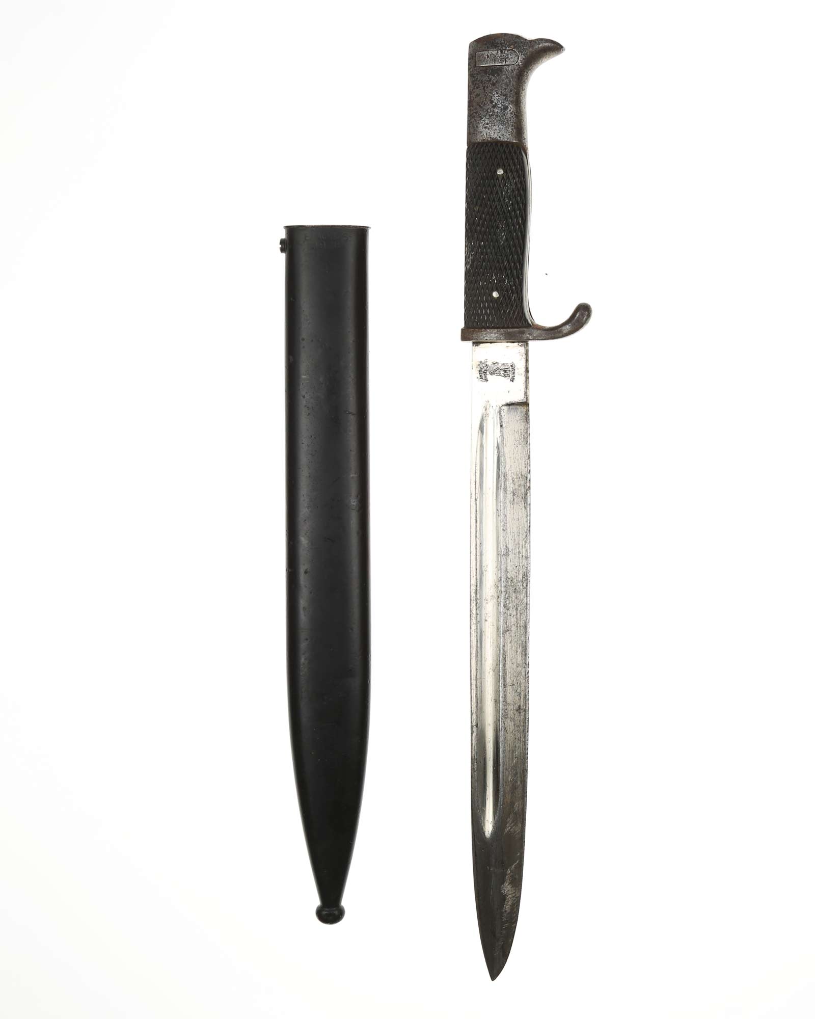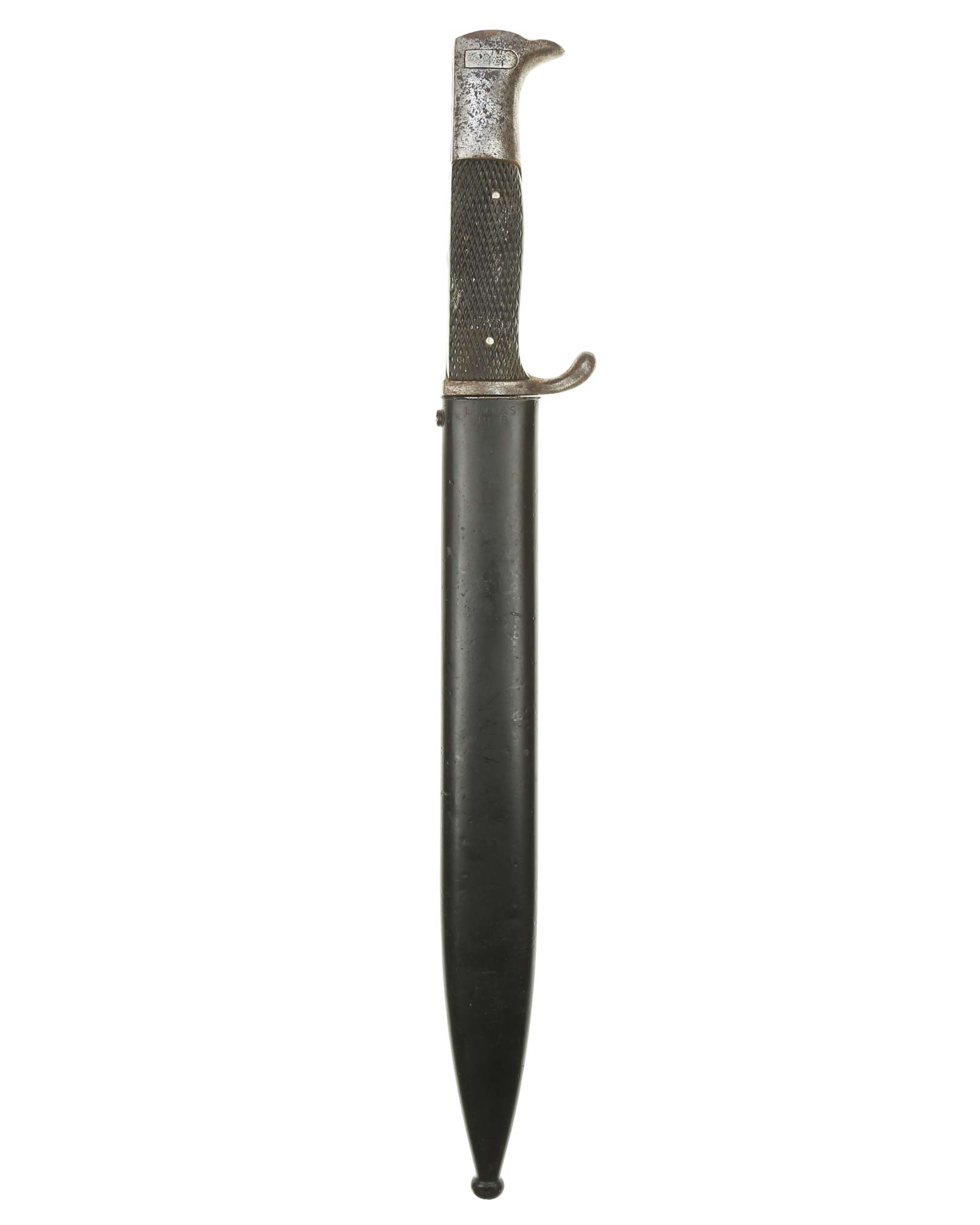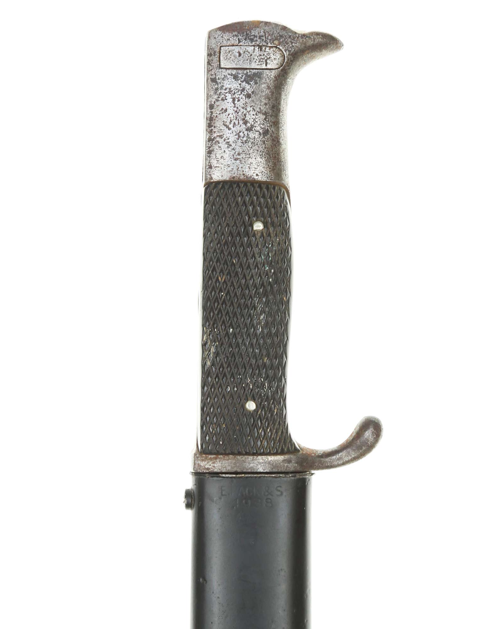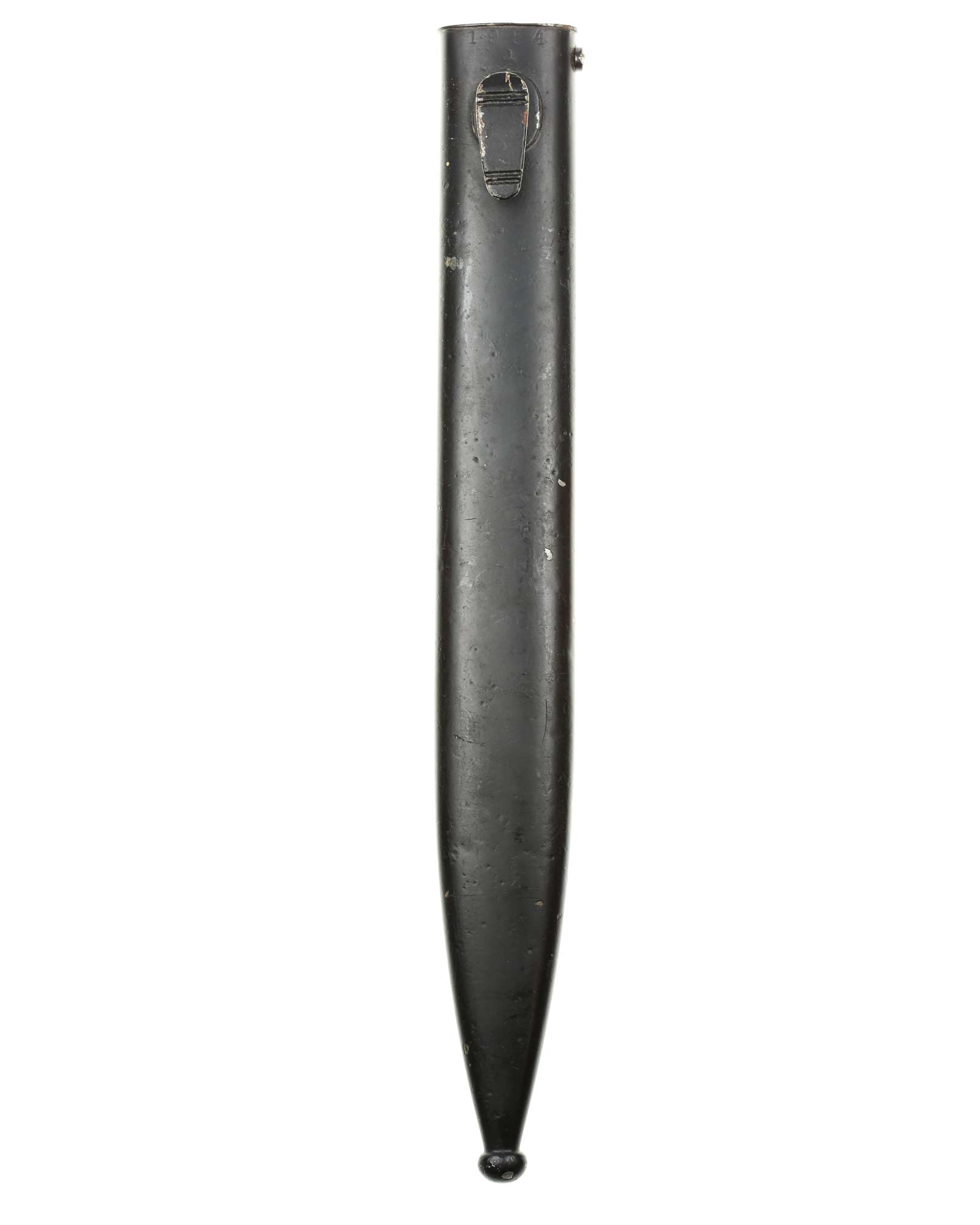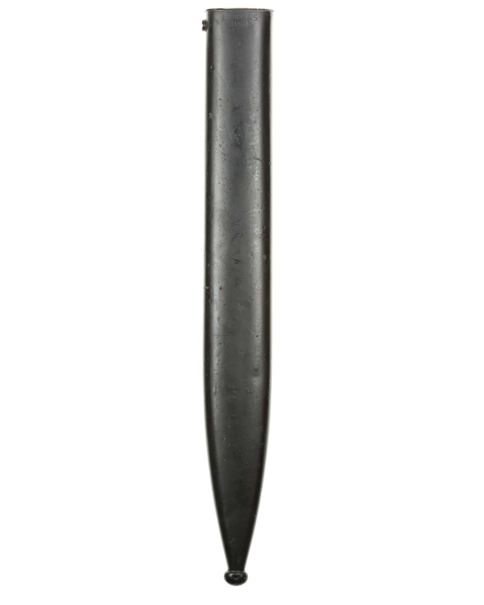 Стальные ножны: Оригинальные ножны модели 84/98 с чёрным покрытием. На обратной стороне клеймо E. Pack & S. 1938 и номер 1954a.