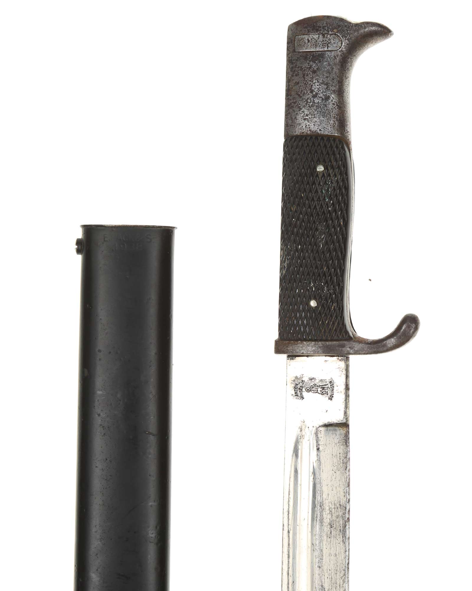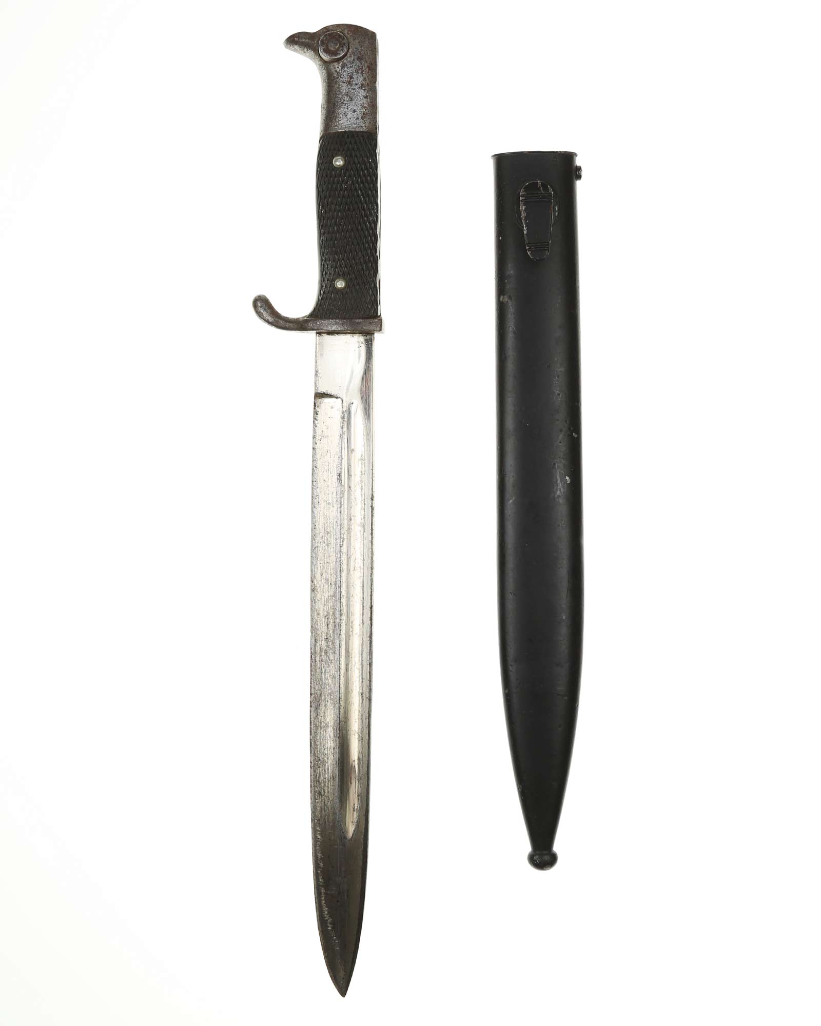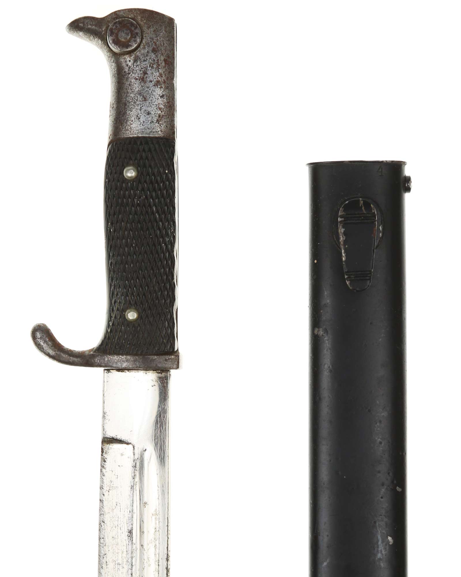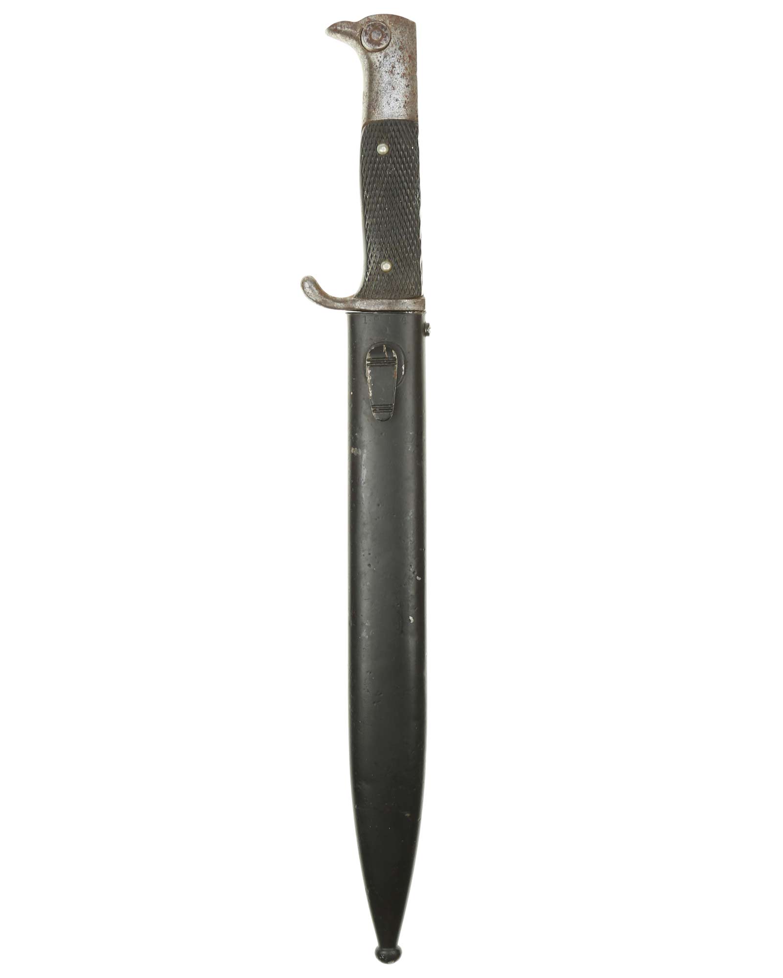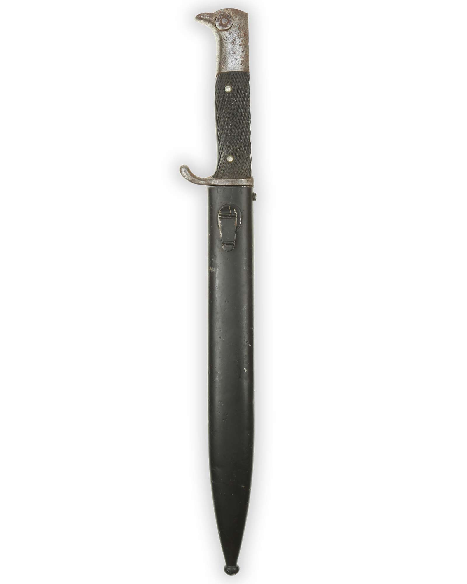 Стальные ножны: Оригинальные ножны модели 84/98 с чёрным покрытием. На обратной стороне клеймо E. Pack & S. 1938 и номер 1954a.