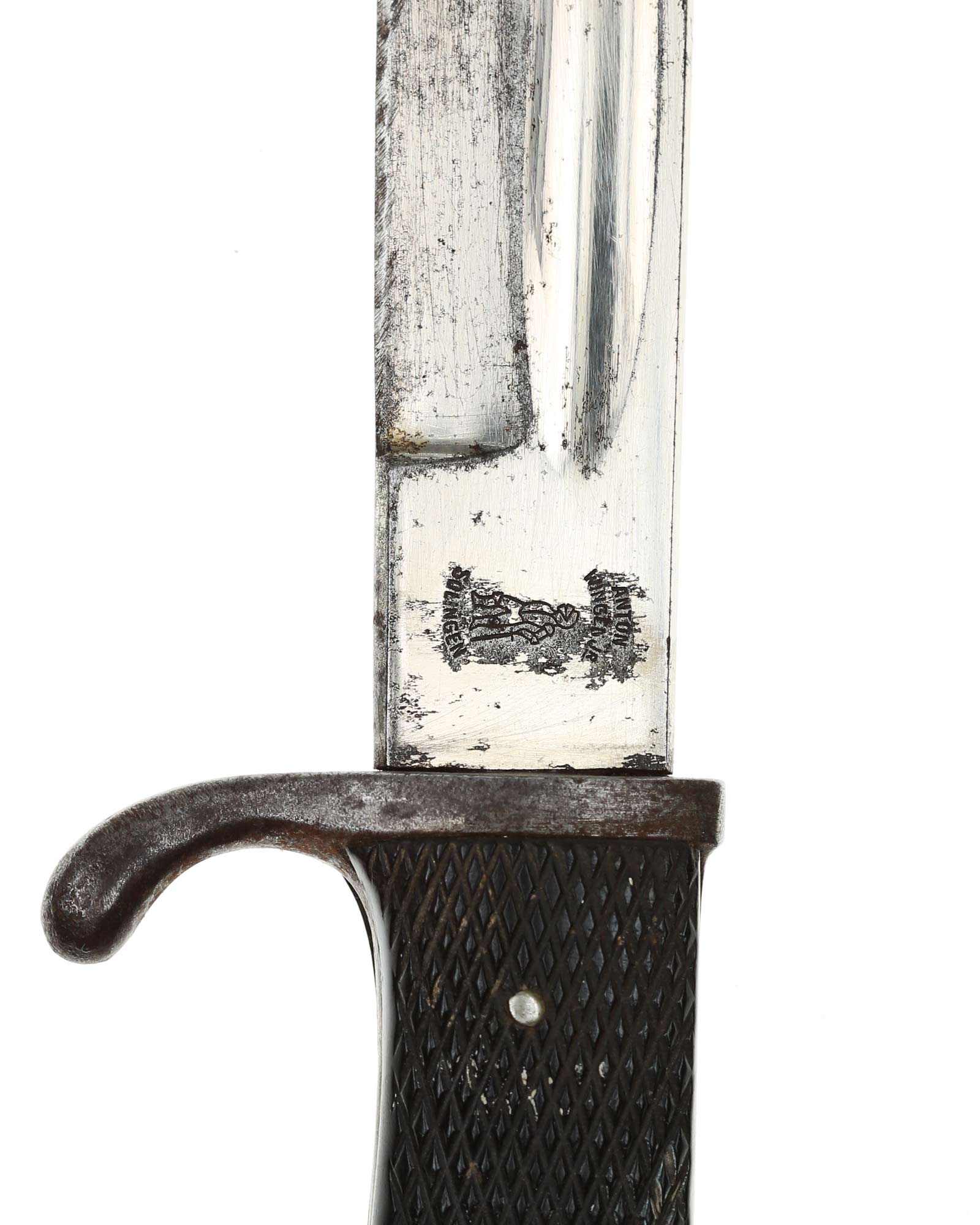 Хорошо сохранившийся длинный штык K98 с клеймом производителя Anton Wingen, Solingen. Классическое исполнение с полностью исправной механикой.
