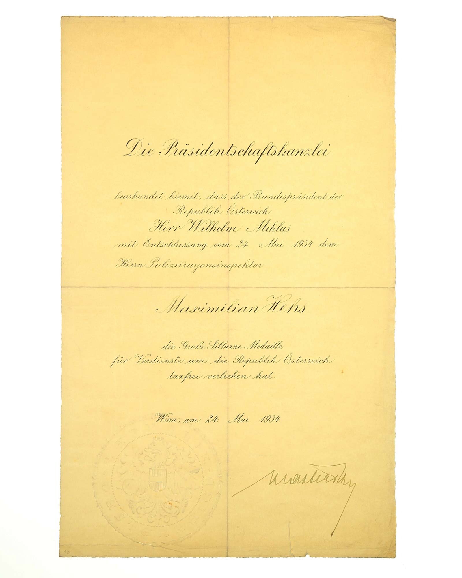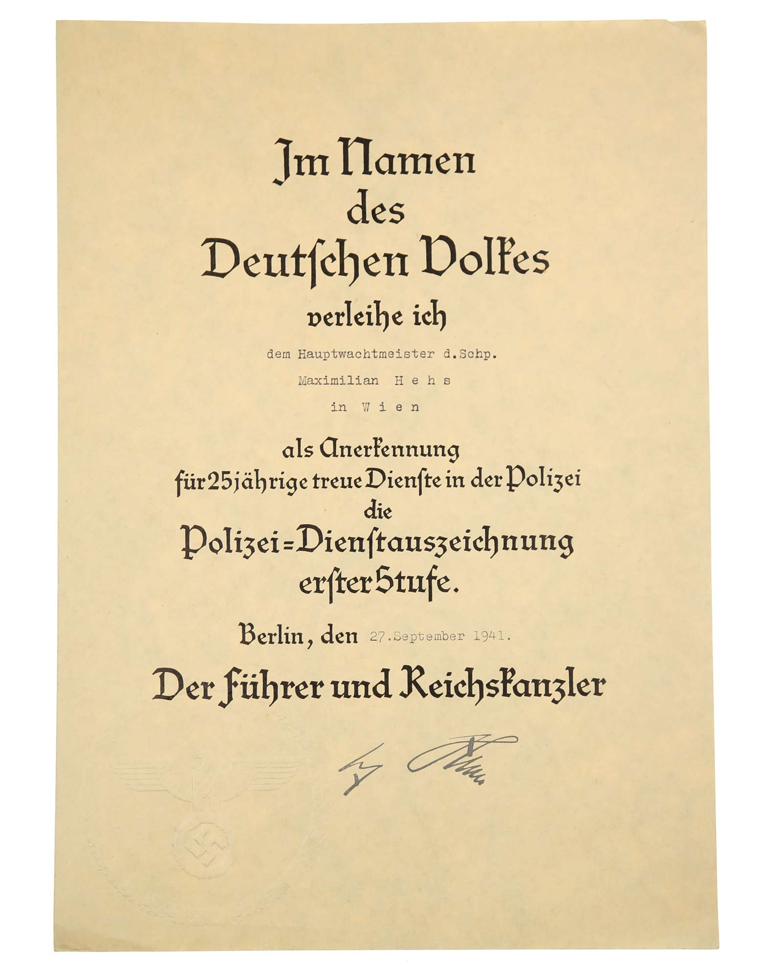 Полицейский штык с документами и подписью Адольфа Гитлера - В. Витали Вена