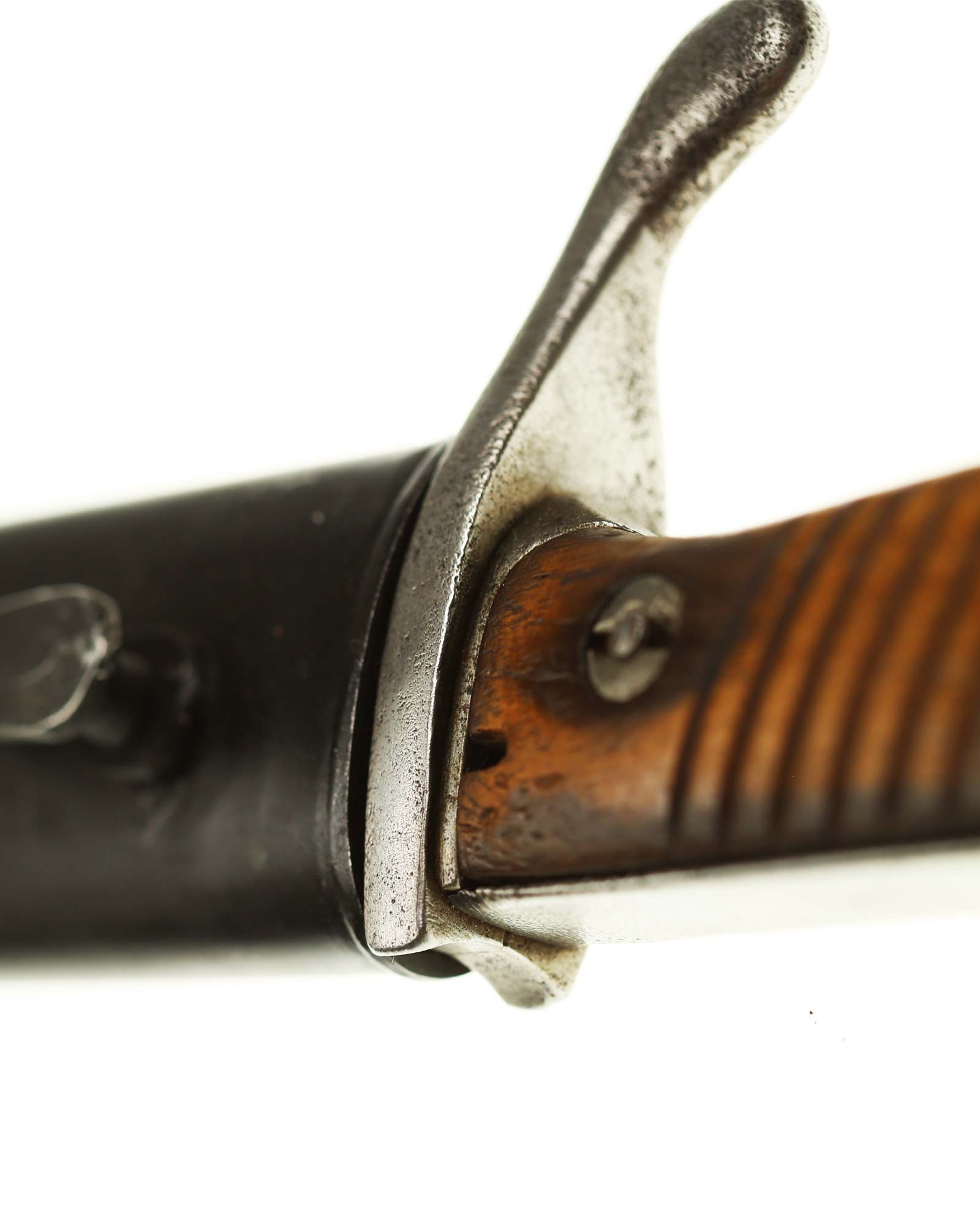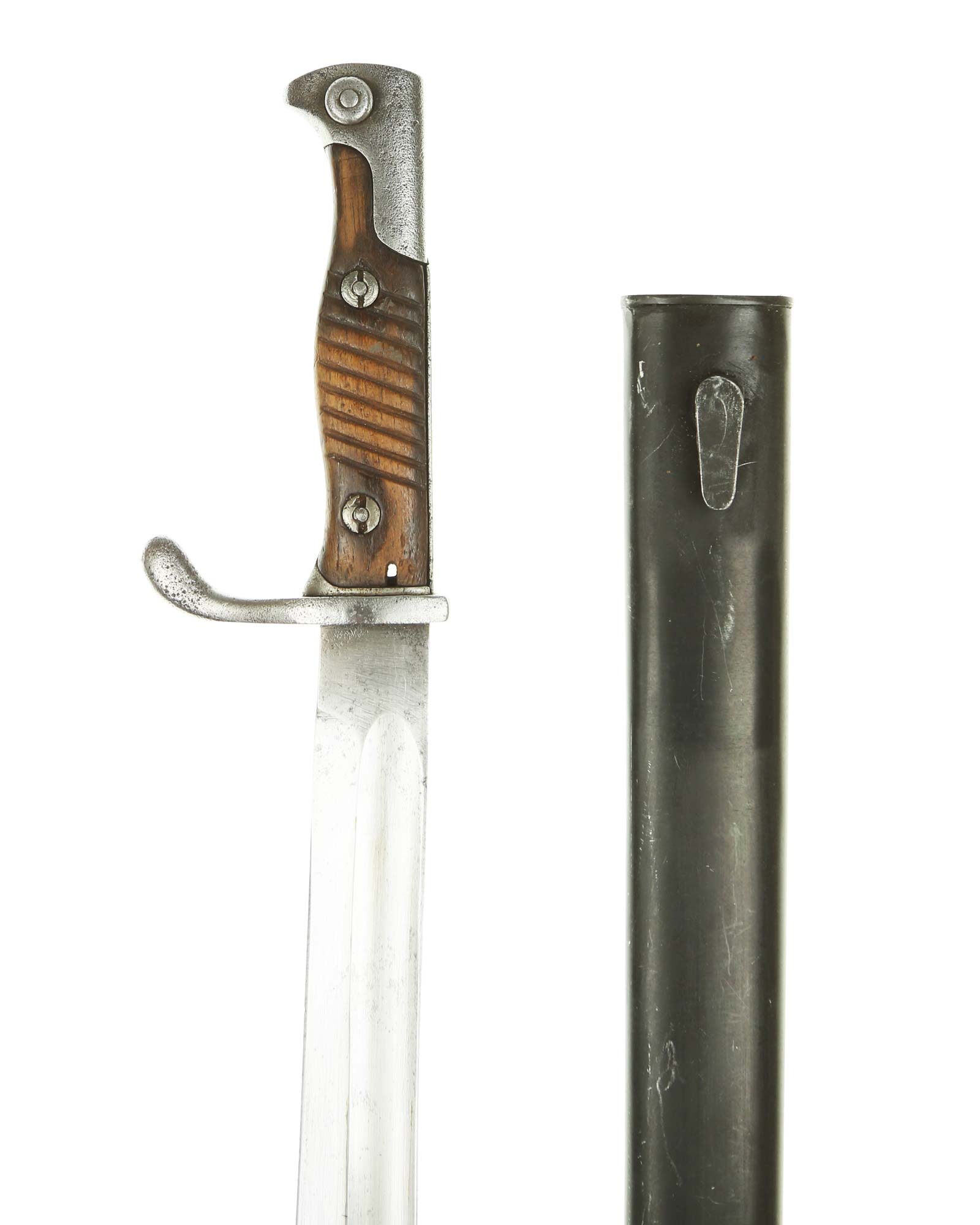 Штык обр. SG 98/05. Щечки рукояти деревянные, крепятся к рукояти при помощи двух заклепок. В верхней части рукояти находится пружинная защелка, фиксировавшая штык. В головке рукояти находится Т-образный паз для фиксации штыка на штыкоприемнике. Крестовина стальная. Клинок стальной, прямой. На пяте клинка имеется клеймо производителя "Е. Ф. Хёрстер Золинген. Ножны стальные, со шпеньком и шариком на конце.