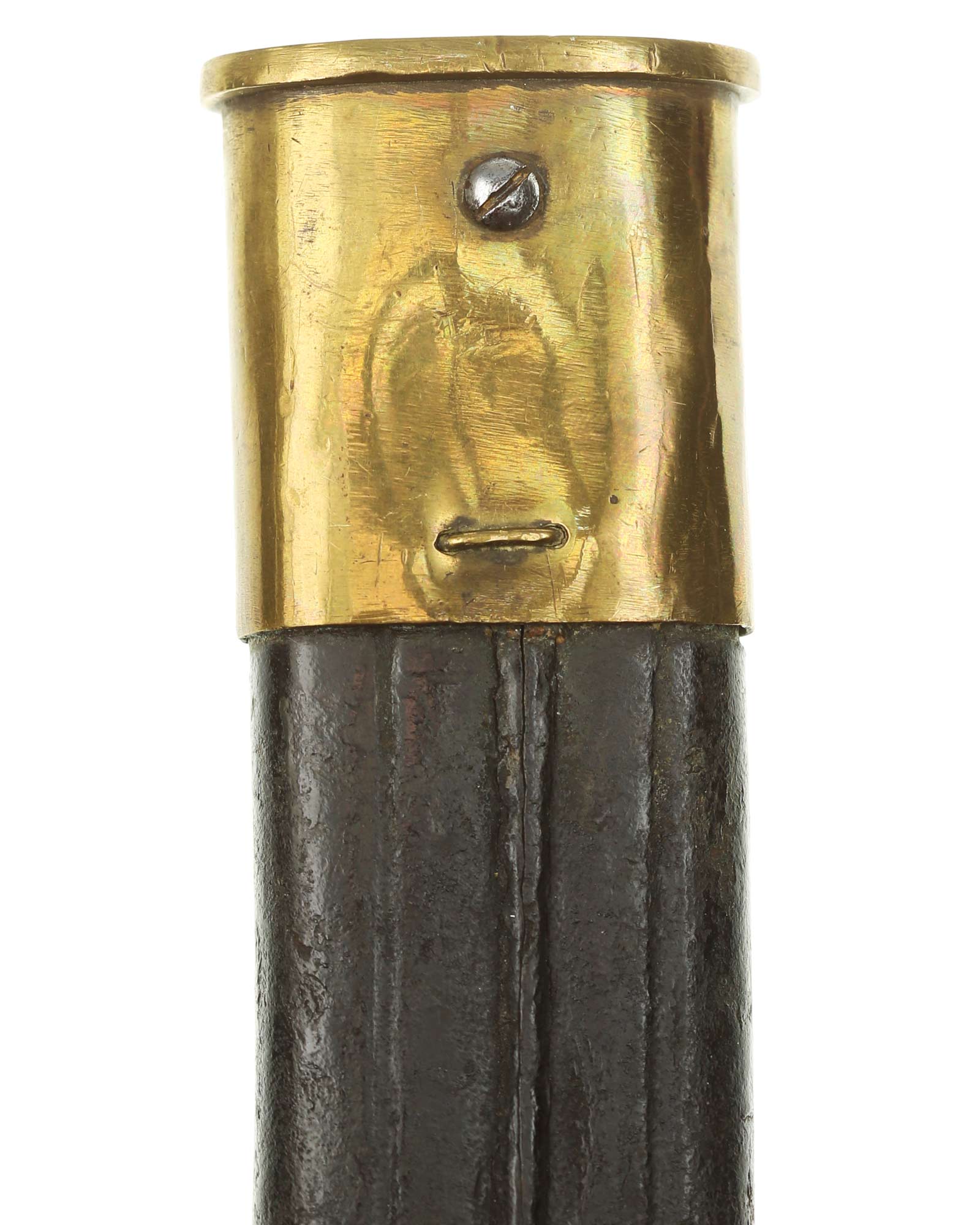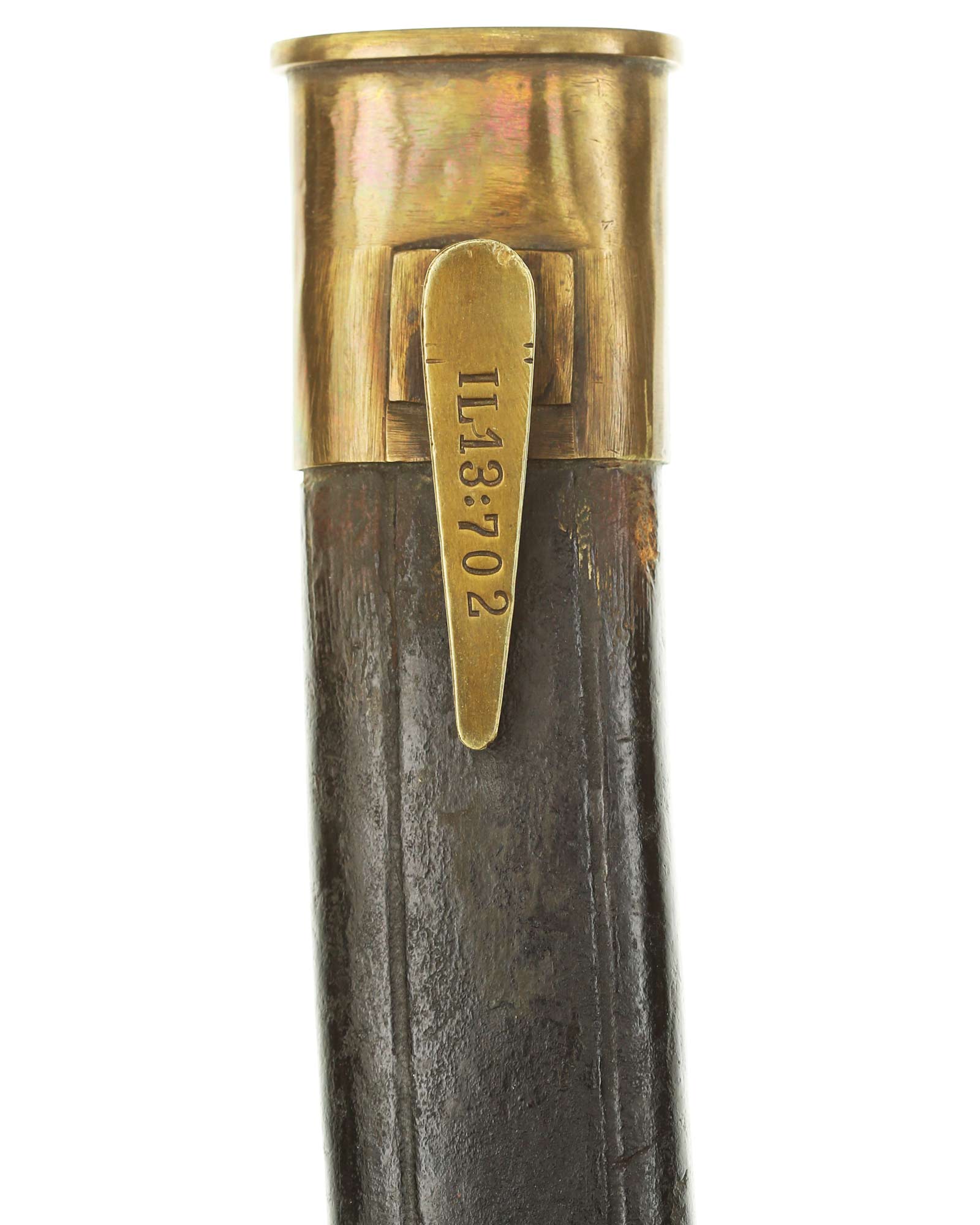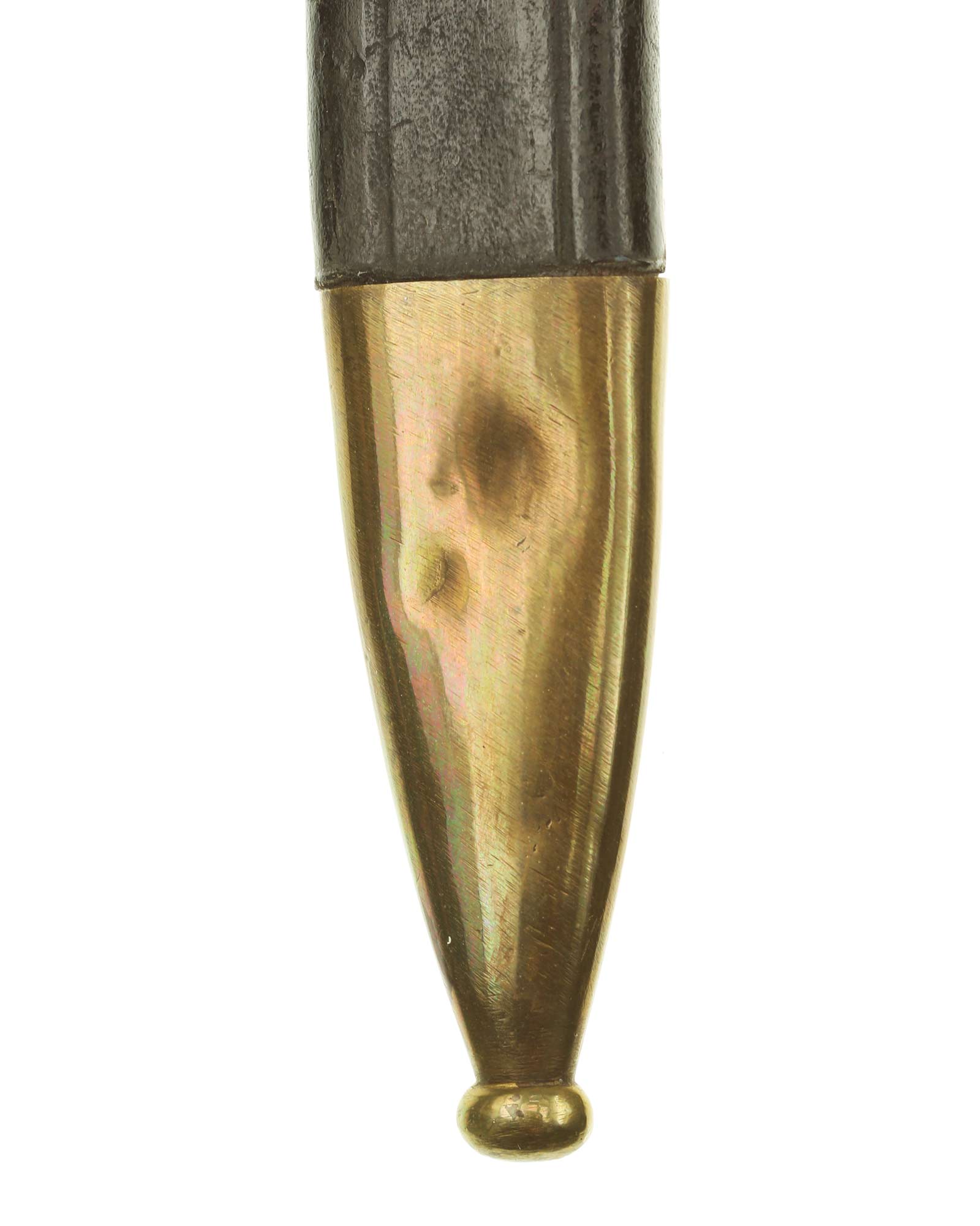 Ножны: Ножны кожаные с латунным прибором, состоящим из устья с неподвижной скобой и наконечника с шариком.