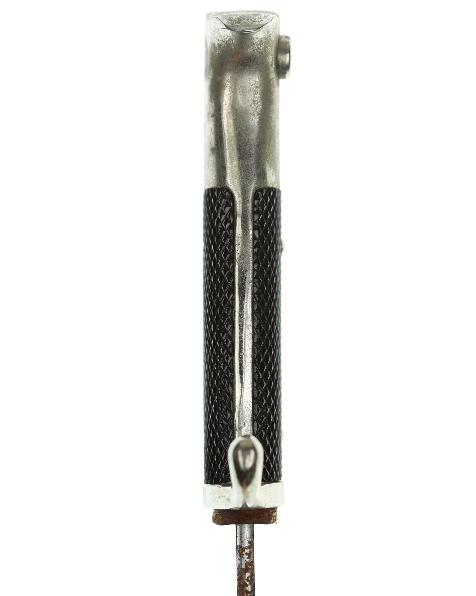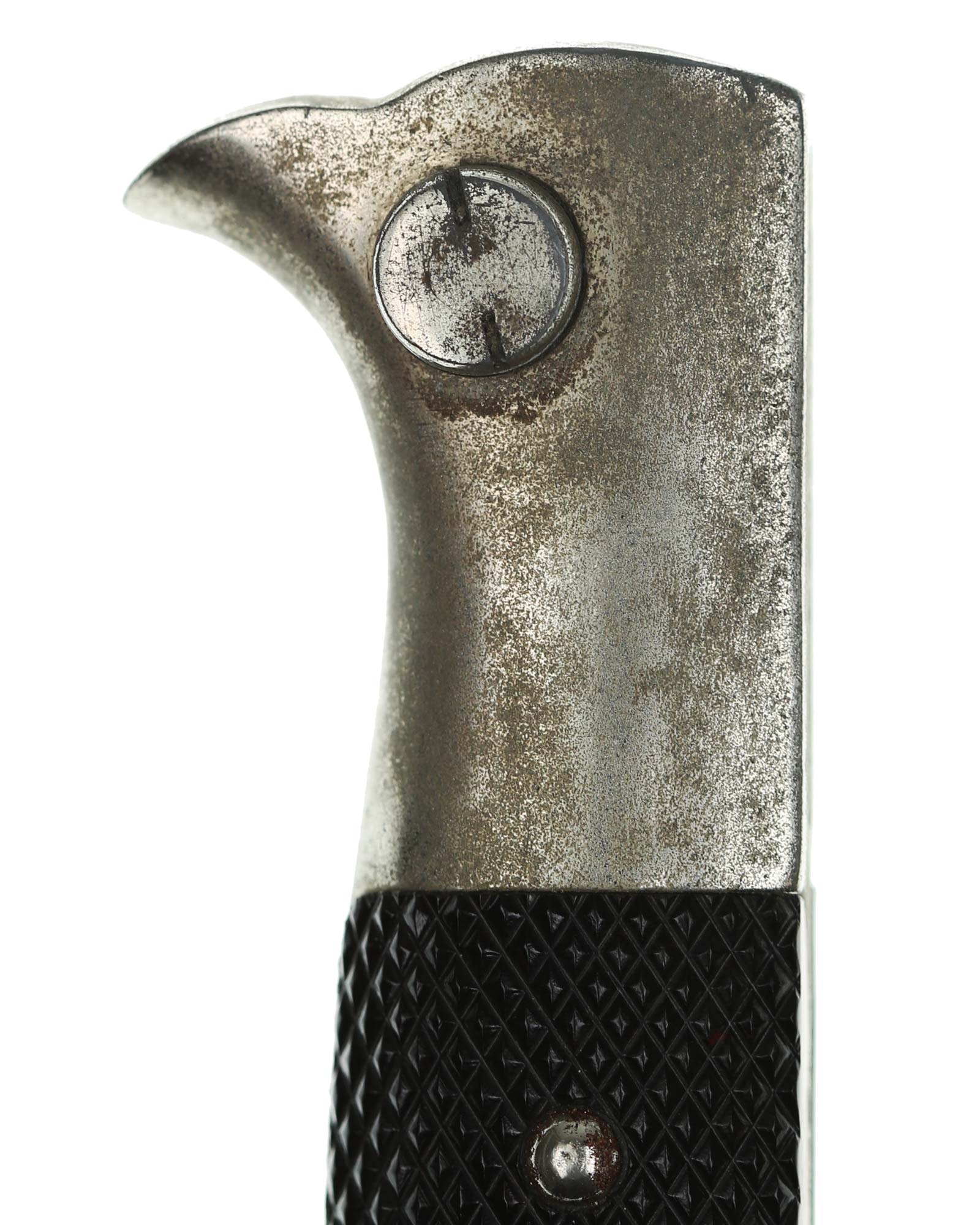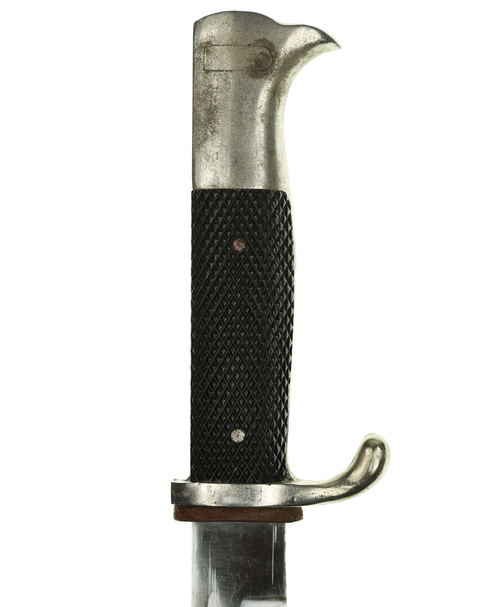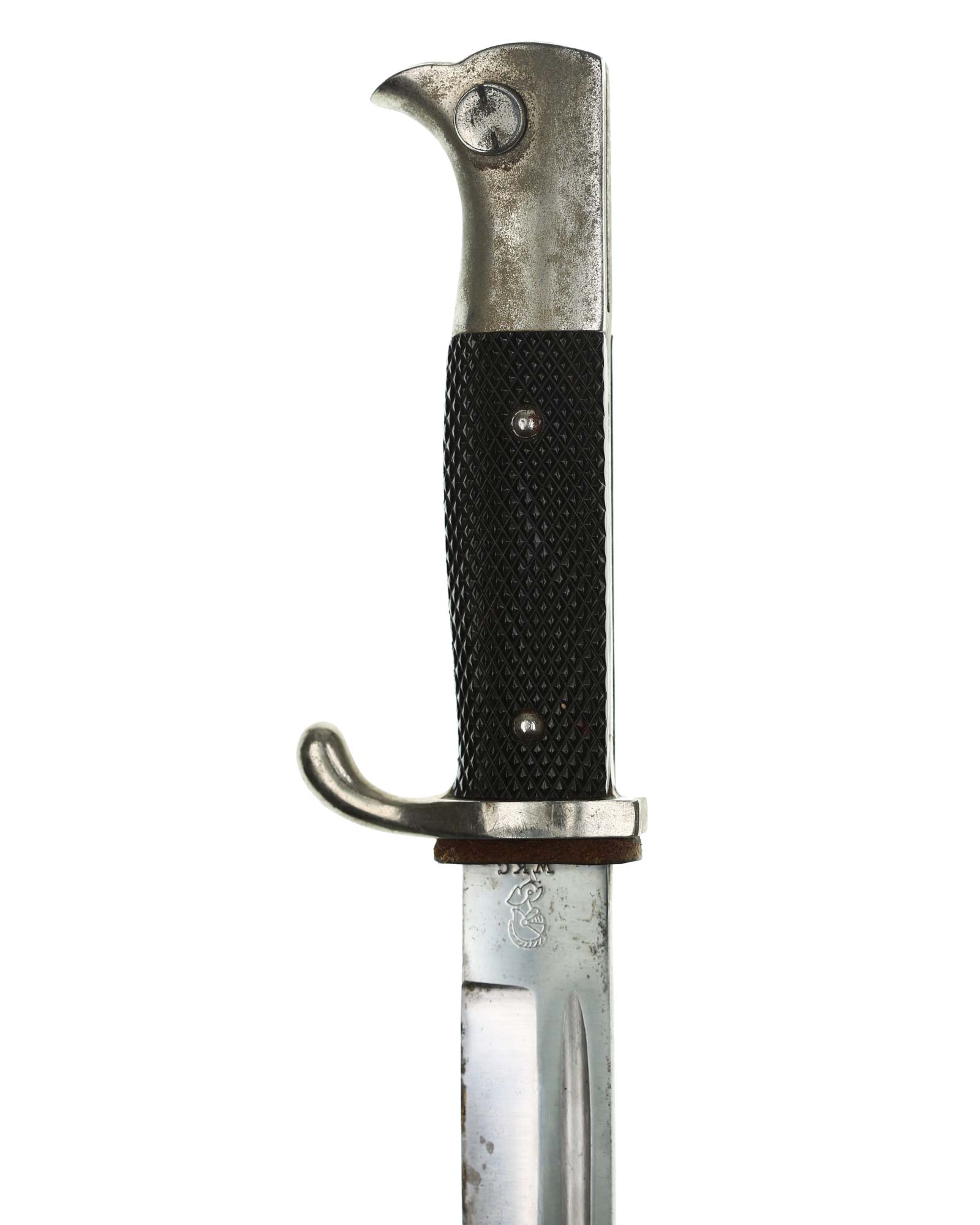 Штык внестроевой обр. 1933-45 гг. (тип KS98). Рукоять образована двумя пластмассовыми рифлеными щечками, скрепленными с хвостовиком клинка заклепками. Головка рукояти стилизована под птичью голову. Клинок прямой, стальной, однолезвийный, с долом на каждой стороне и пилой на обухе. Ножны стальные, окрашены в черный цвет, с крючком и шариком на конце. На пяте клинка имеется клеймо известного производителя - WKC Solingen.