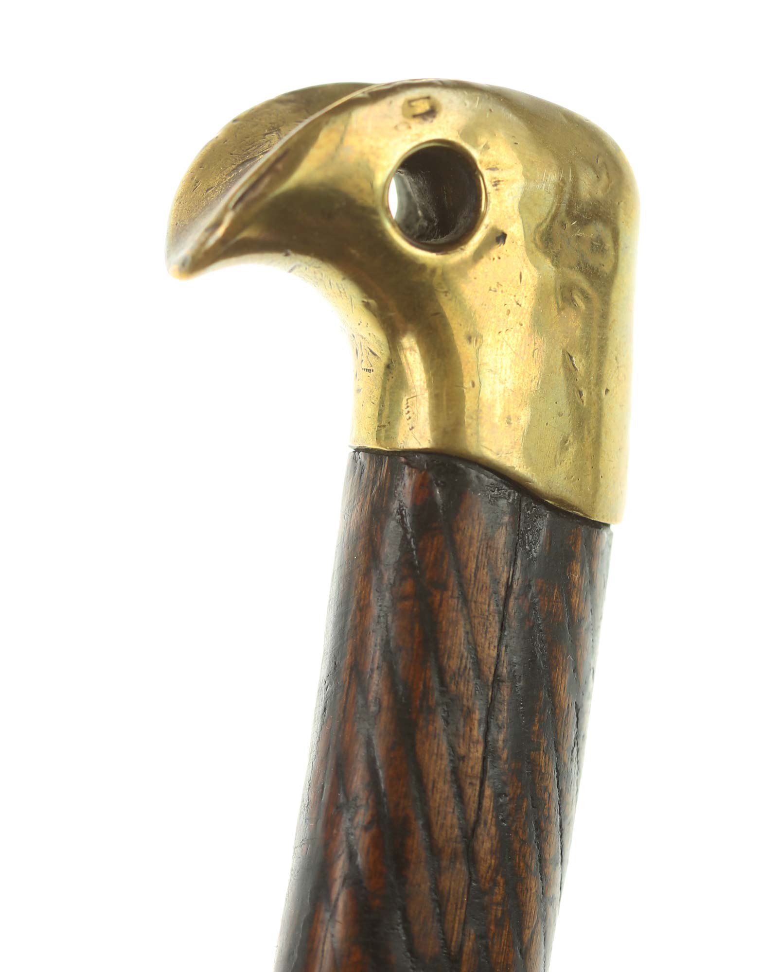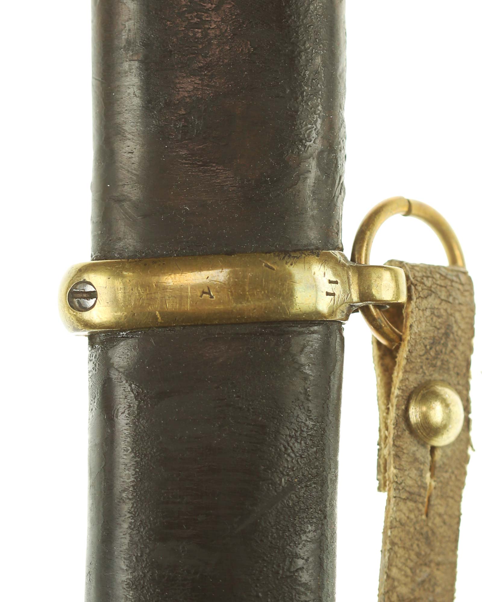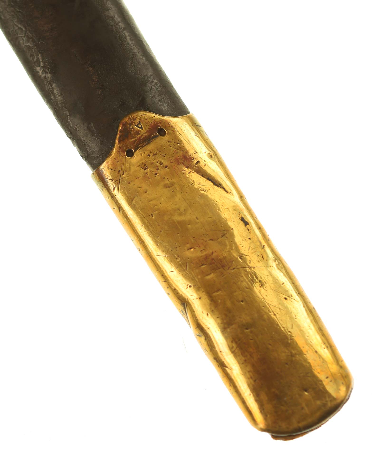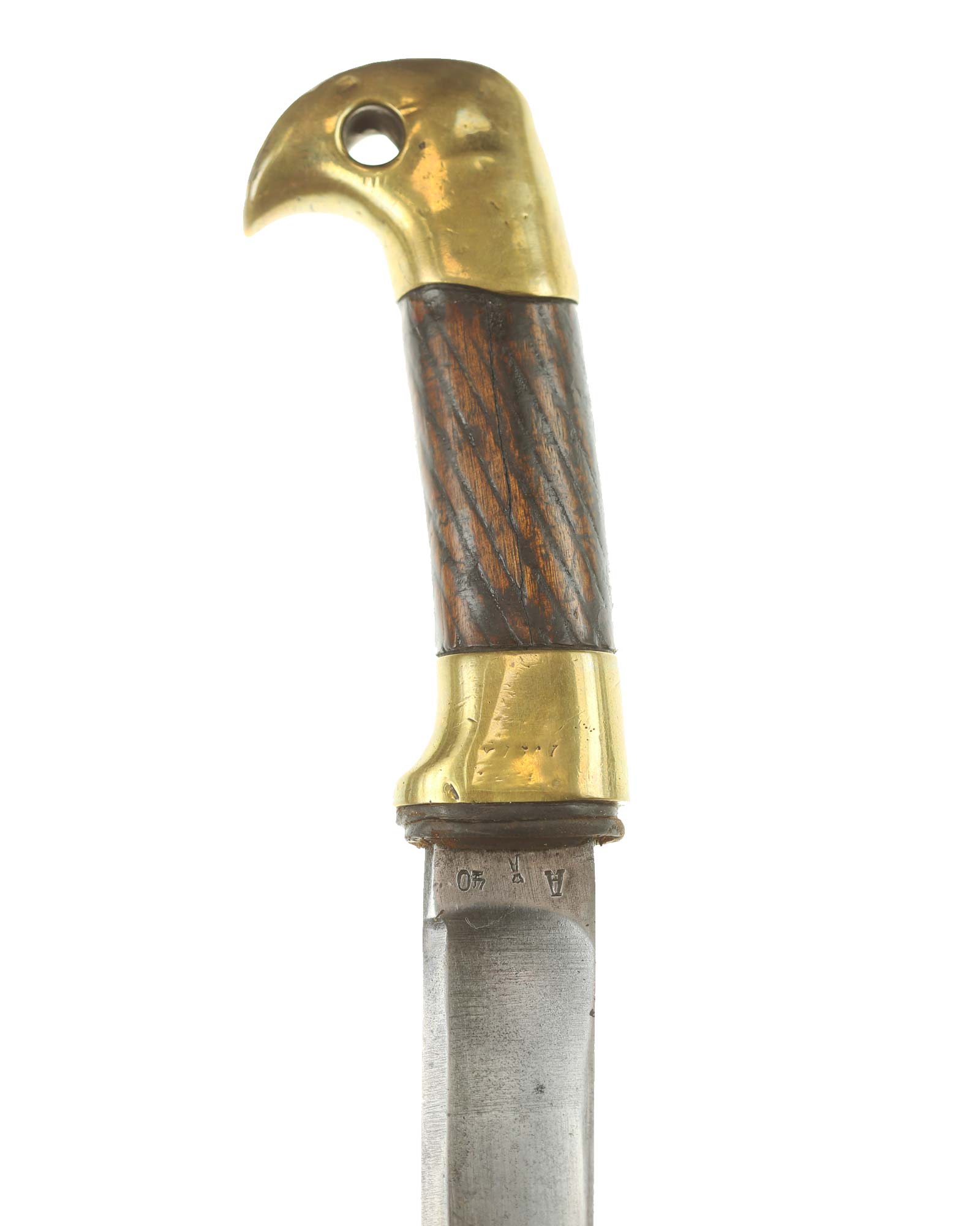 Казачья шашка образца 1881 года. Клинок слегка изогнутый, доленный с обеих сторон с обоюдоострым острием. латунный сосуд. Деревянная рифленая темно-коричневая рукоять, кожаные ножны с фурнитурой. На рукояти и ножнах клеймо 22, на клинке с одной стороны клеймо завода-изготовителя и год 1916, с другой стороны клеймо А и 40.