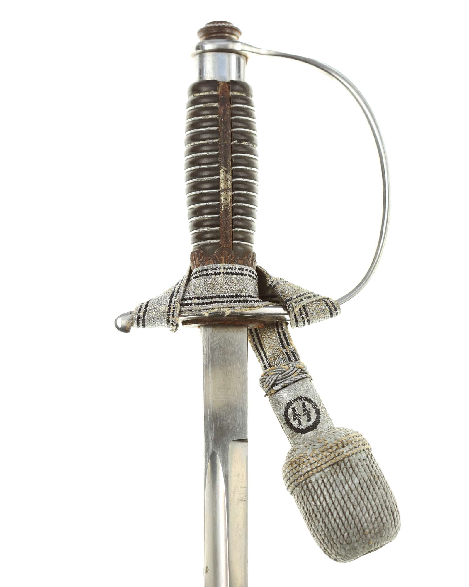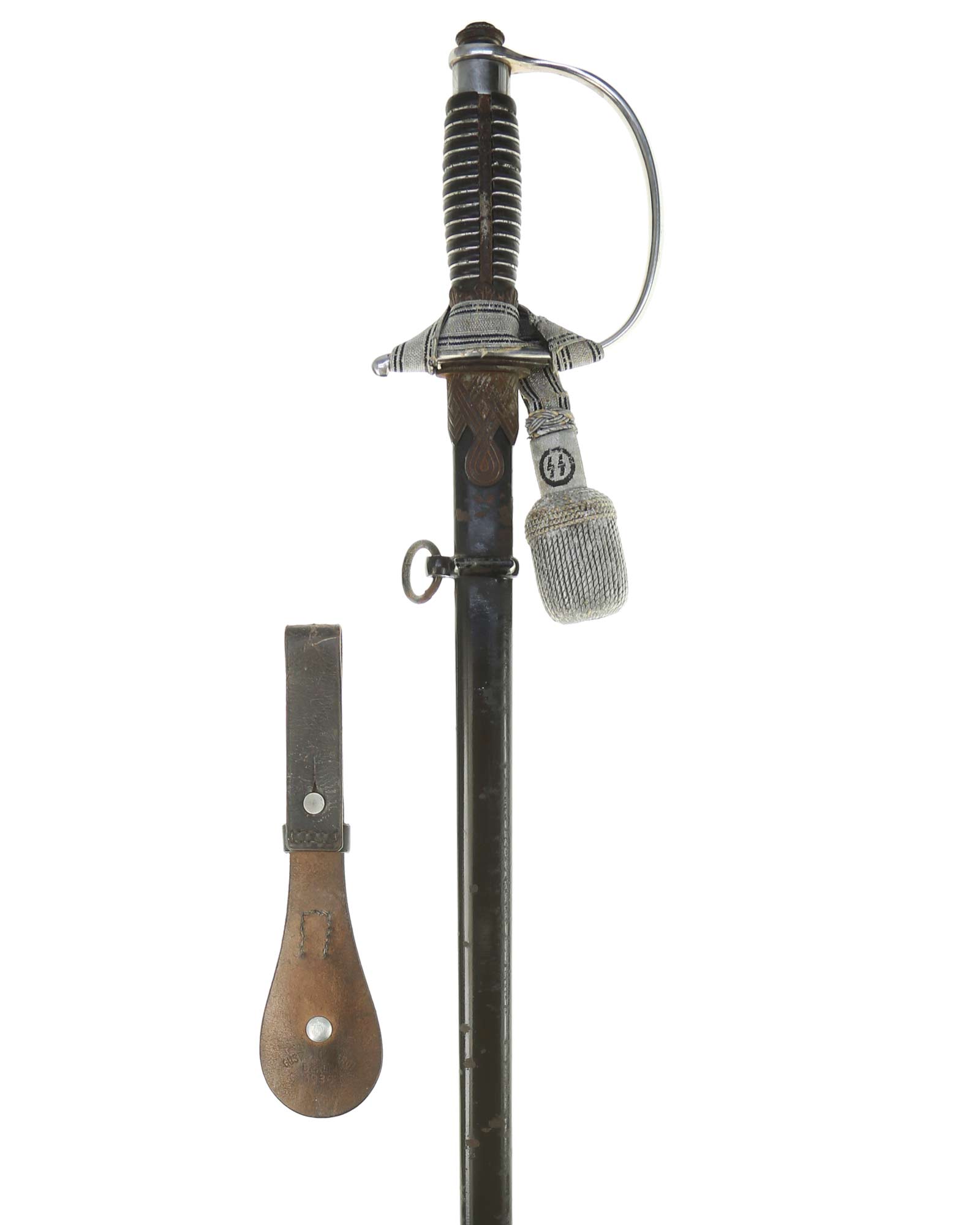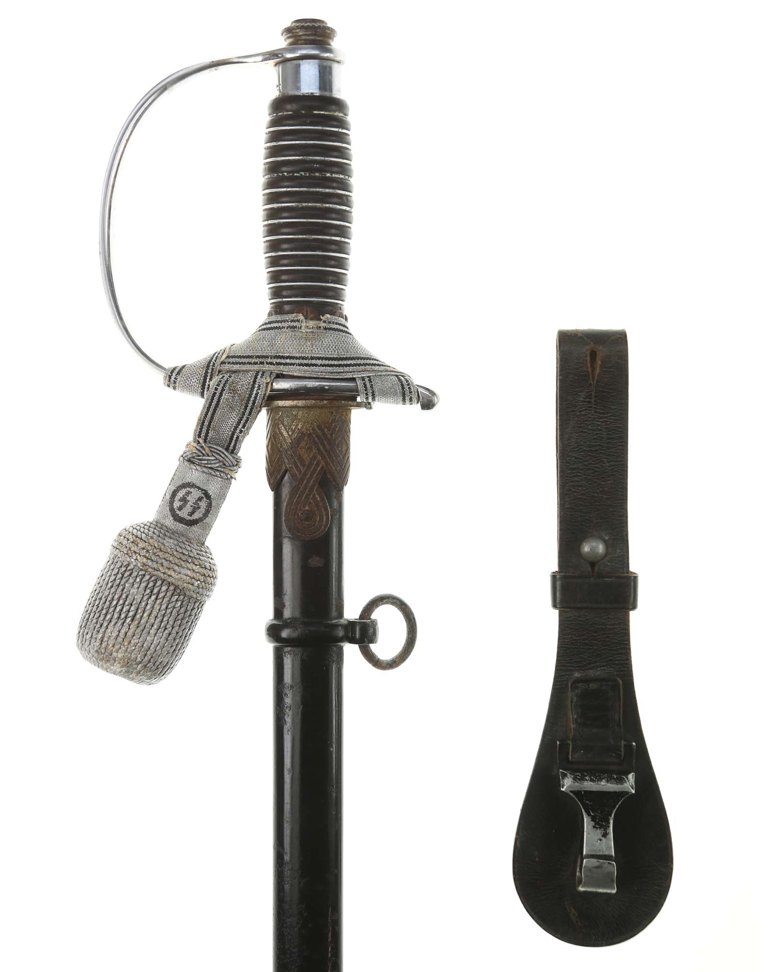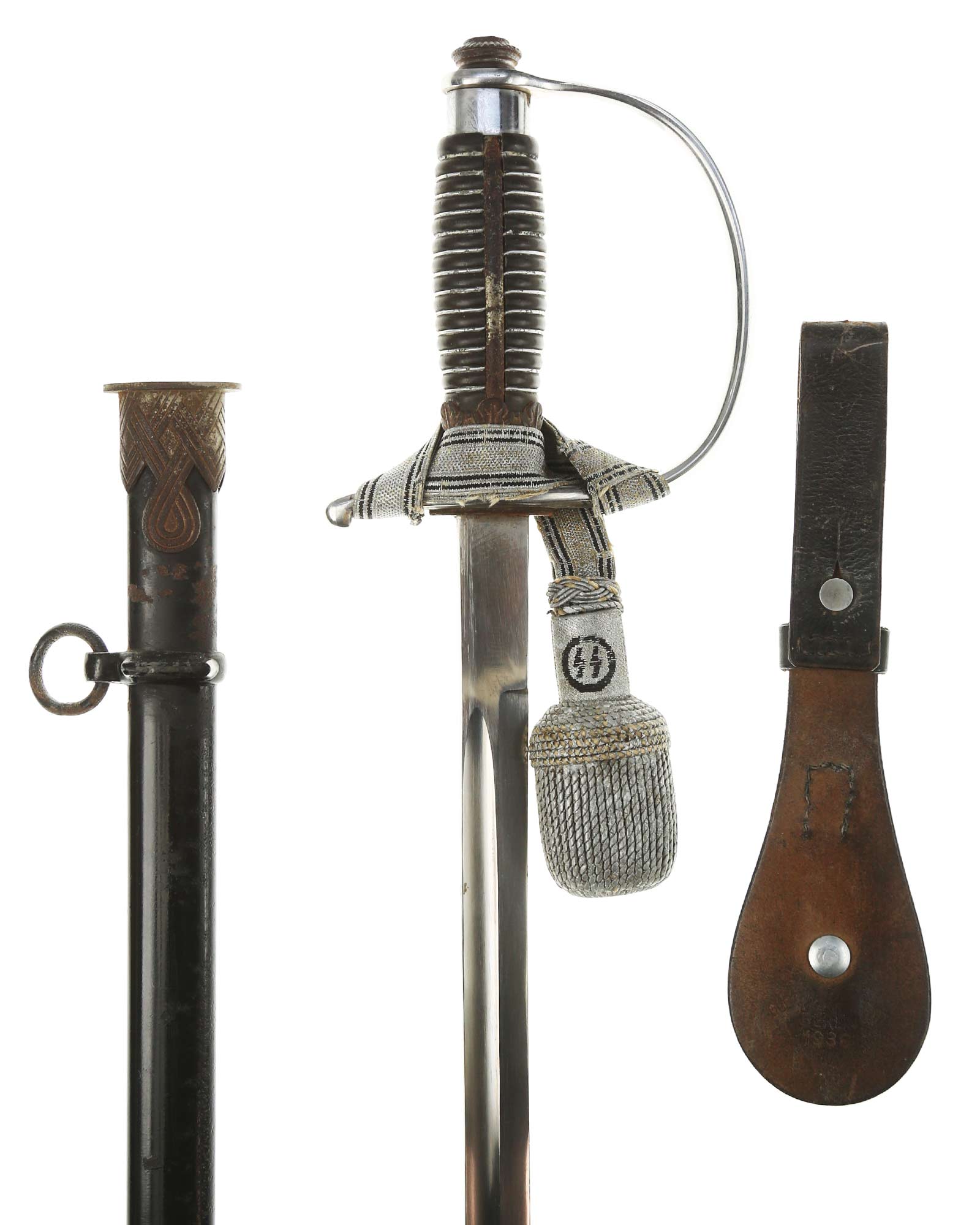Парадный палаш унтер-офицера СС. Длина в ножнах 106 см, палаш СС с инициалами владельца и портупеей СС и кожаными подвесами, включая документы от владельца Helmut Stratmann. Общая длина 106,0 см.