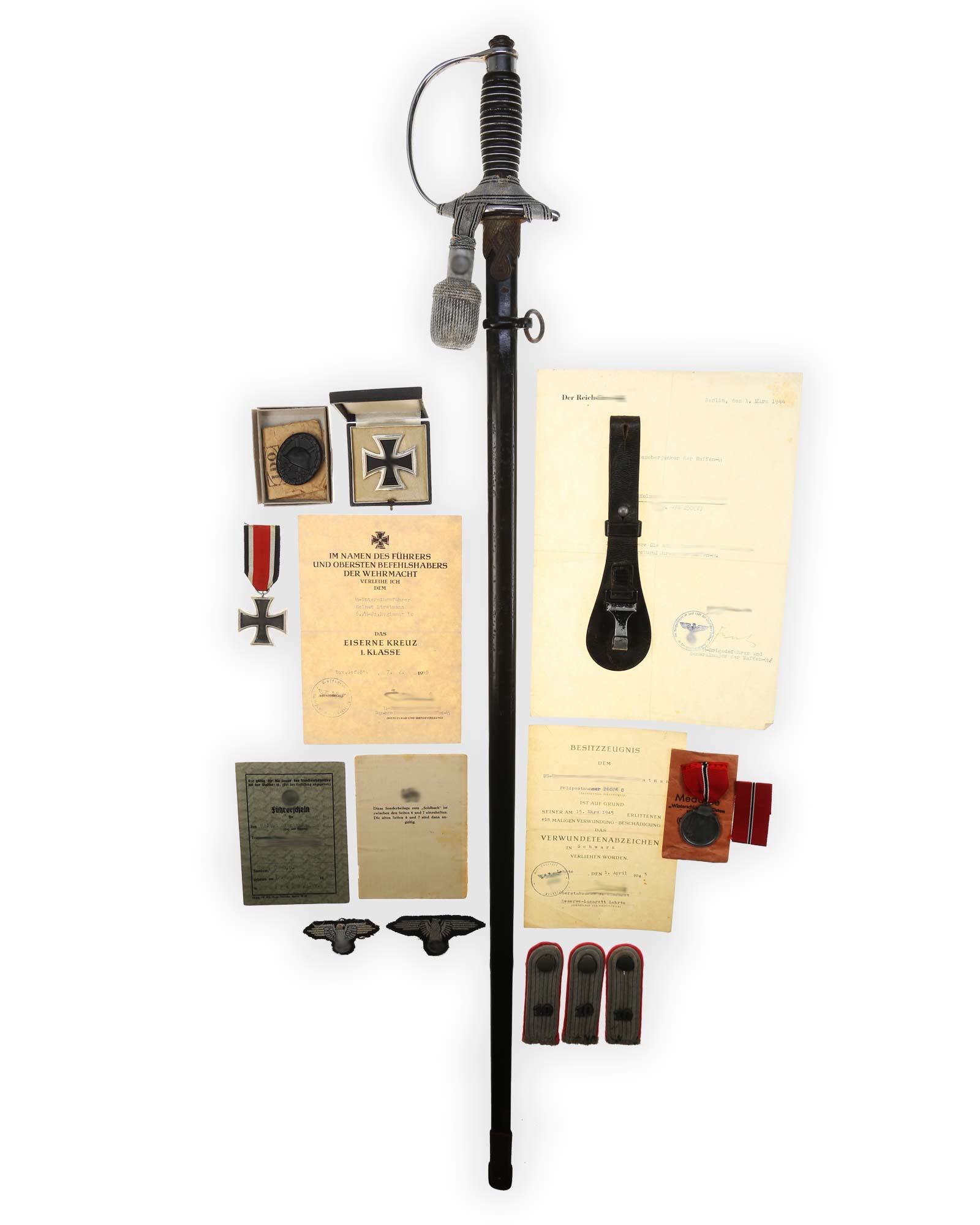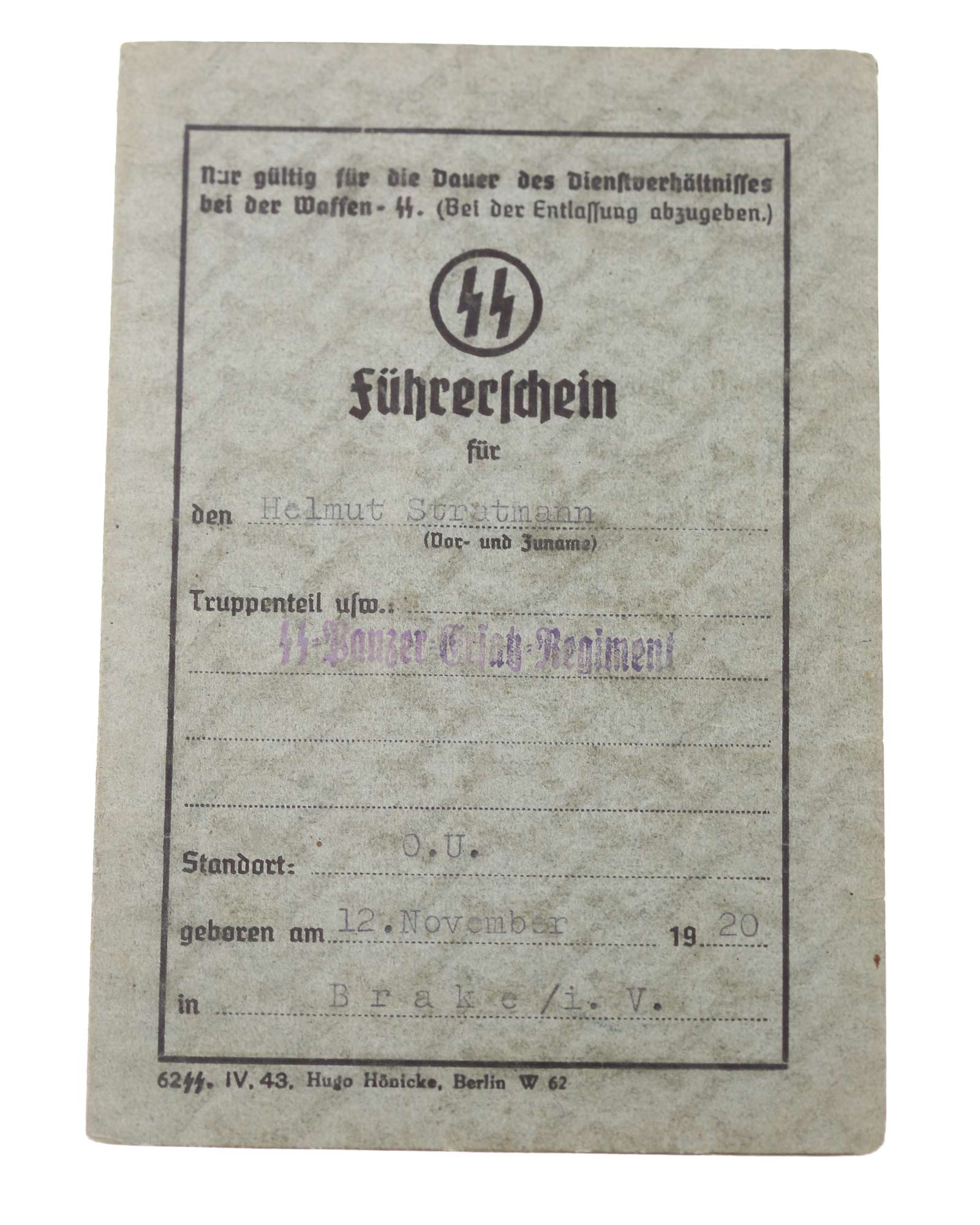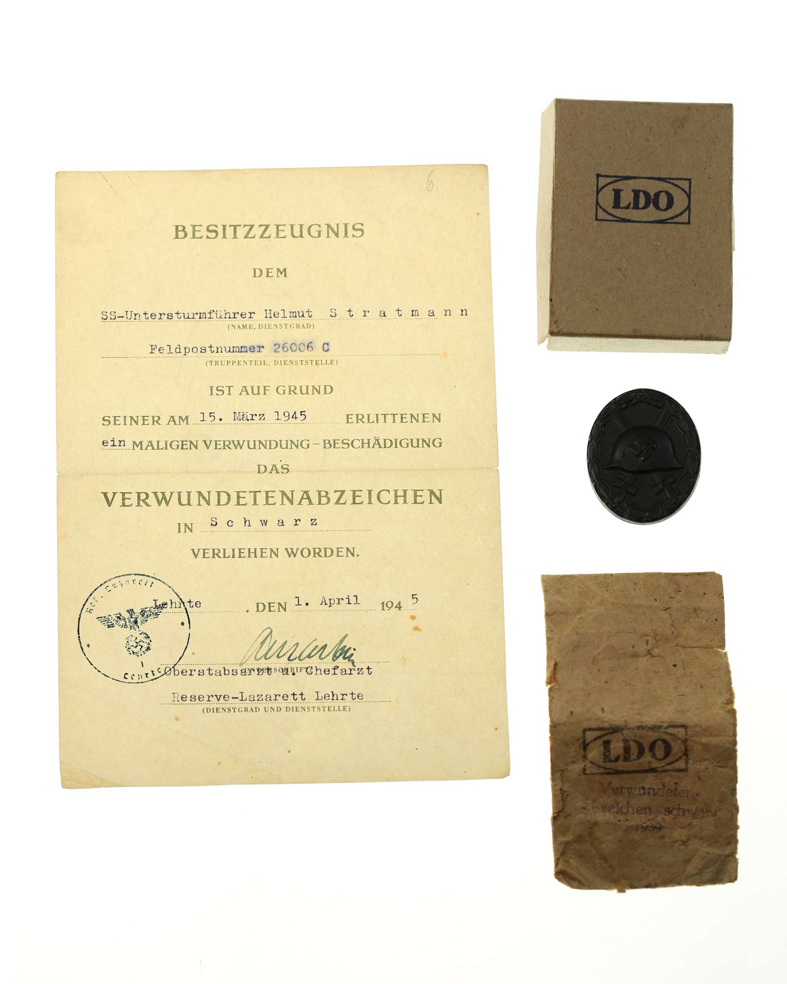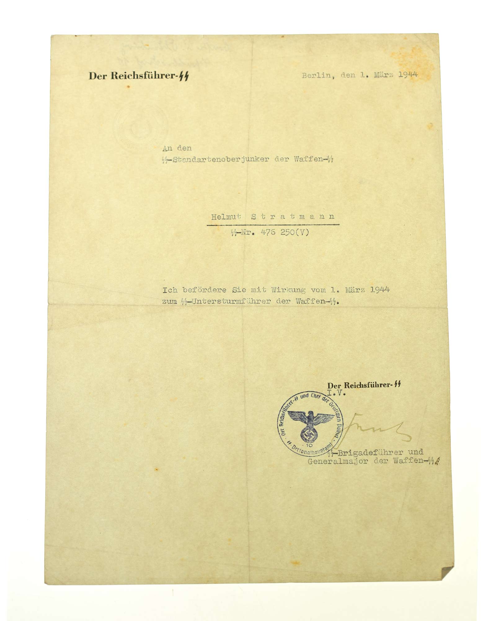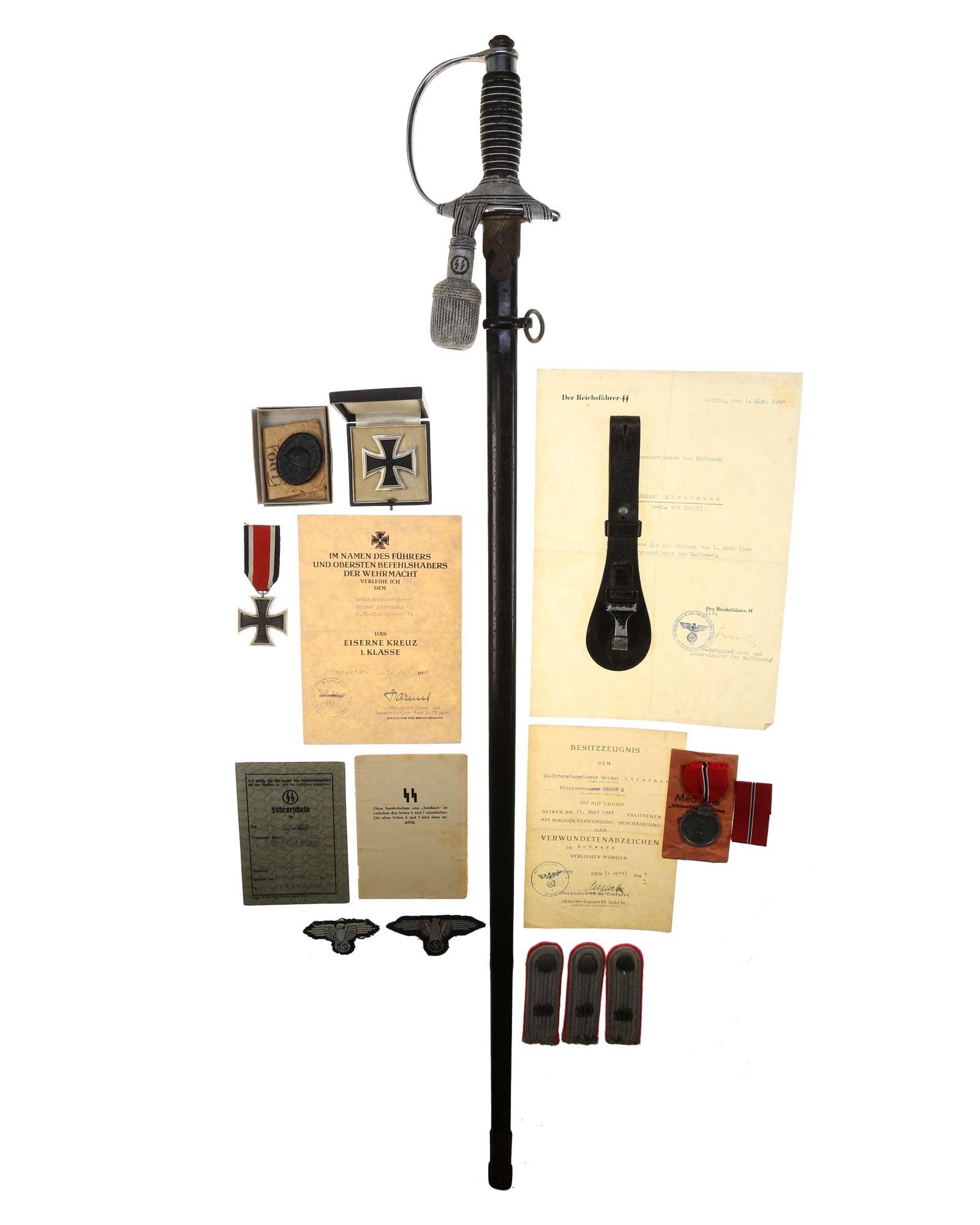 Парадный палаш унтер-офицера СС. Длина в ножнах 106 см, палаш СС с инициалами владельца и портупеей СС и кожаными подвесами, включая документы от владельца Helmut Stratmann. Общая длина 106,0 см.