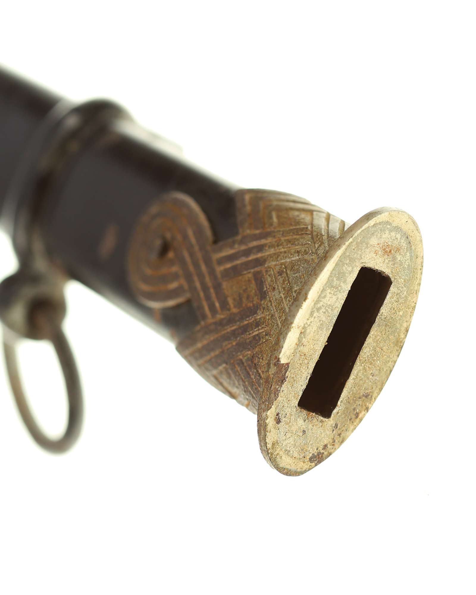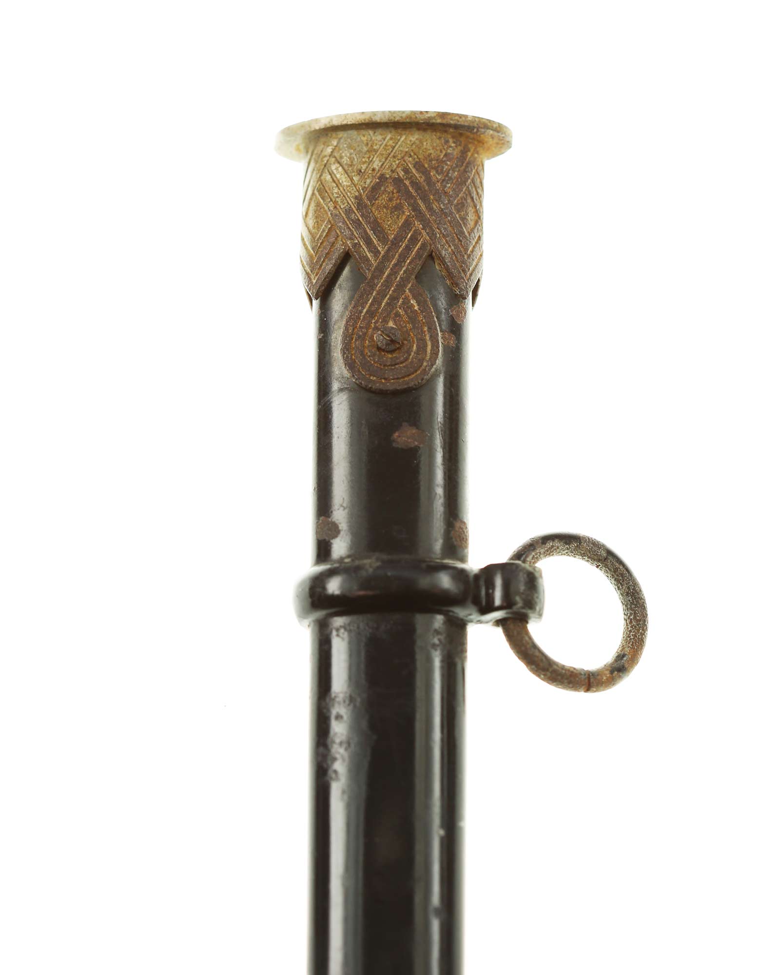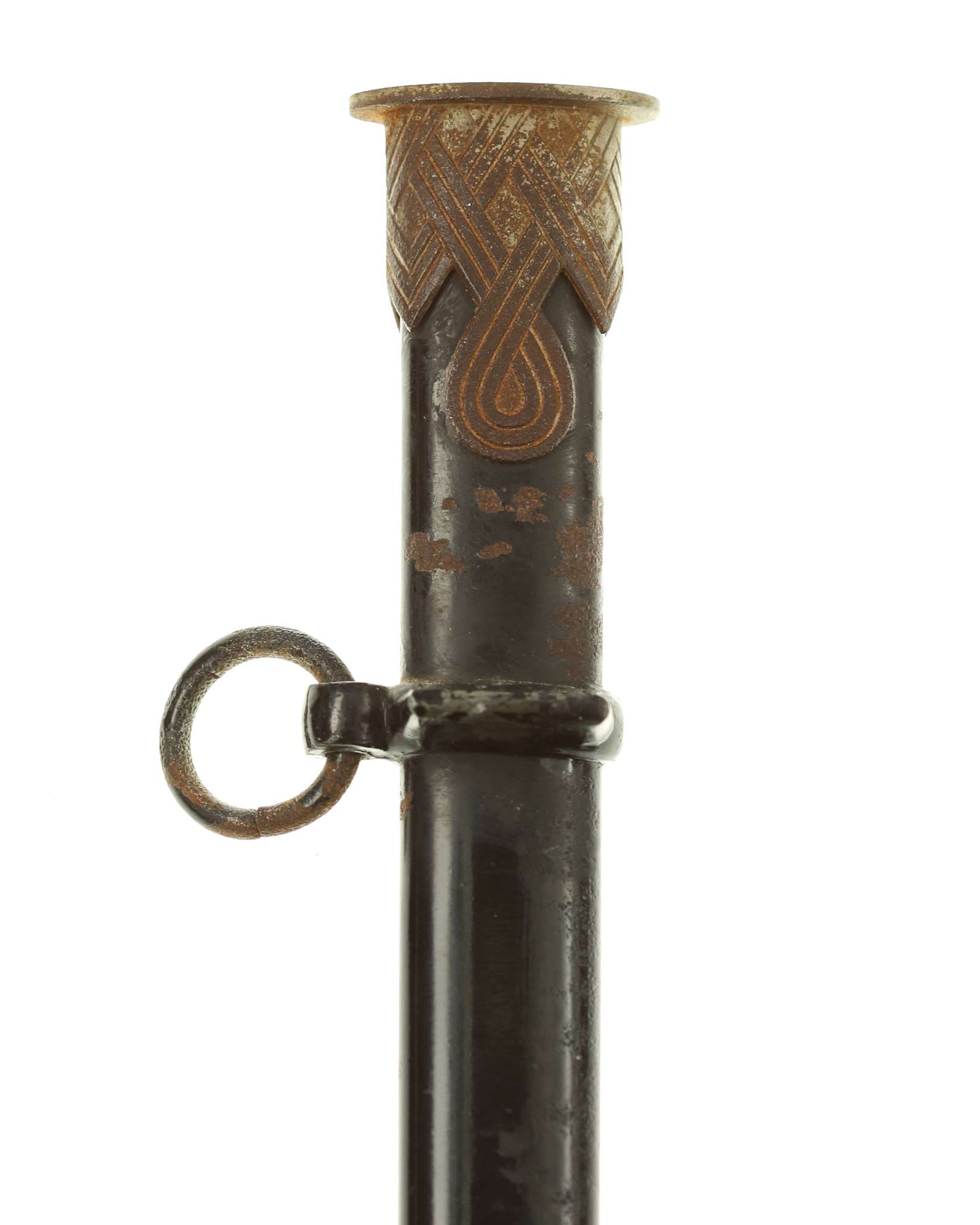 Ножны: Ножны металлические, выкрашенные в черный цвет, с фигурным никелированным устьем, снабженные кольцом для подвешивания к портупее.