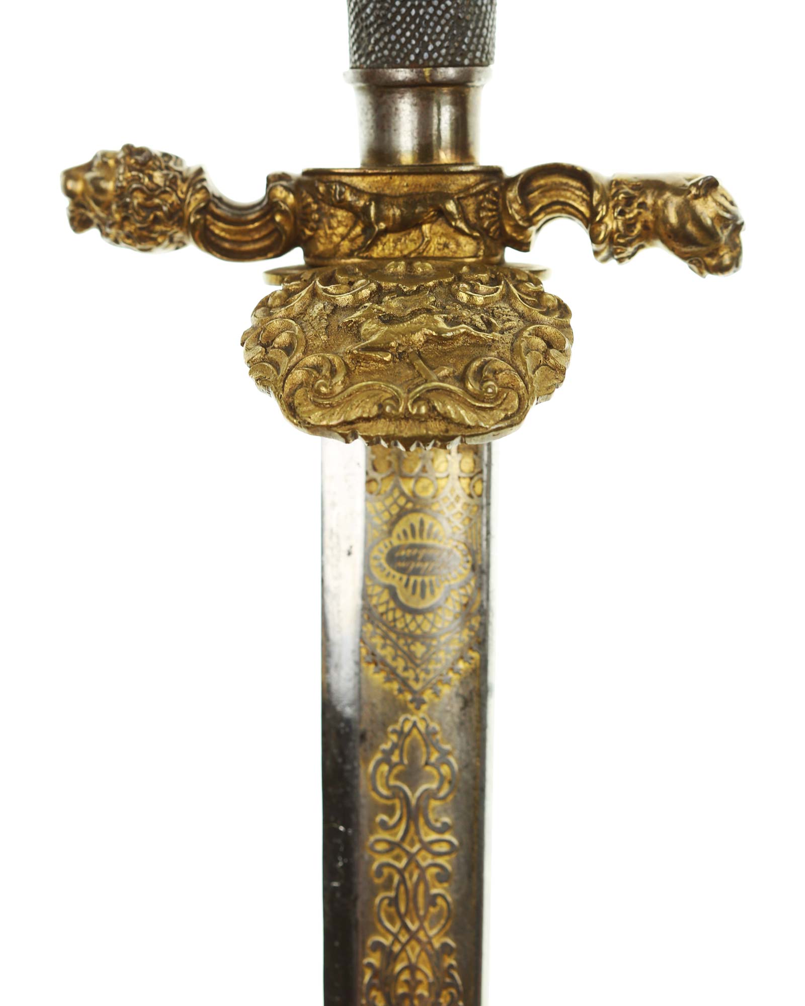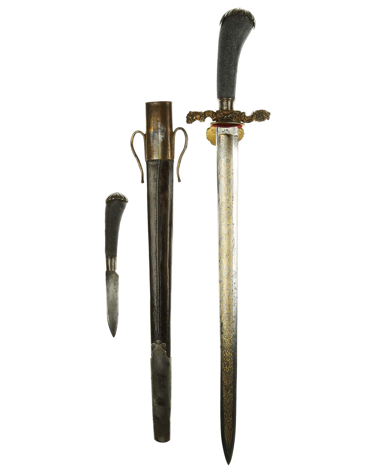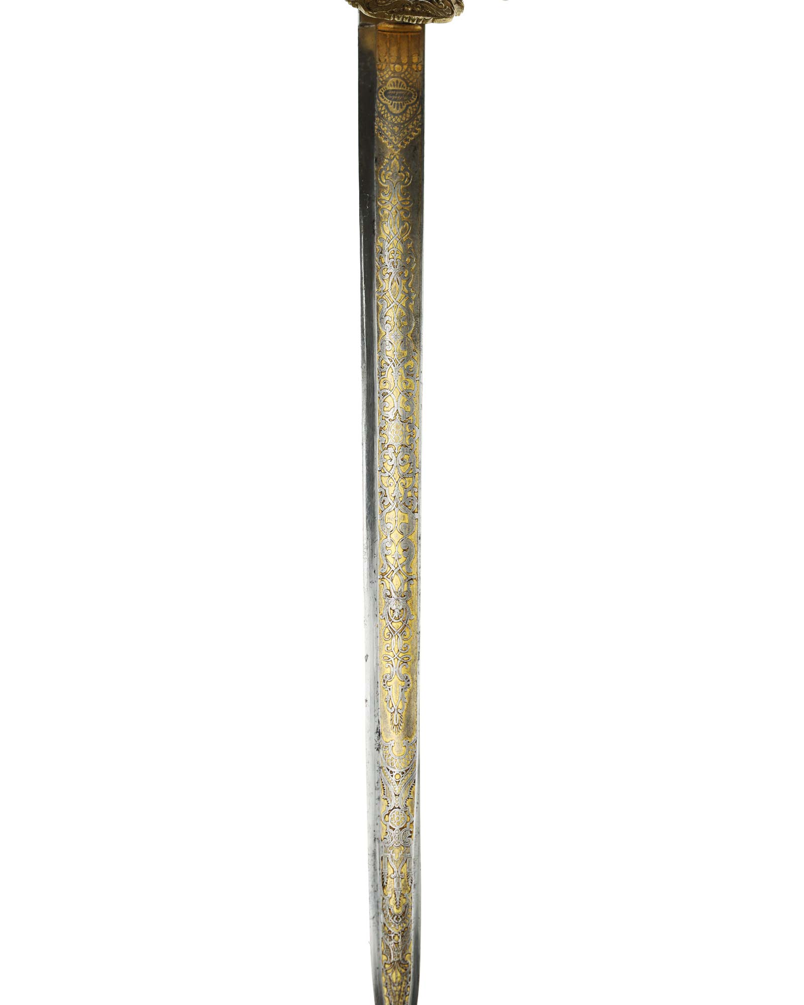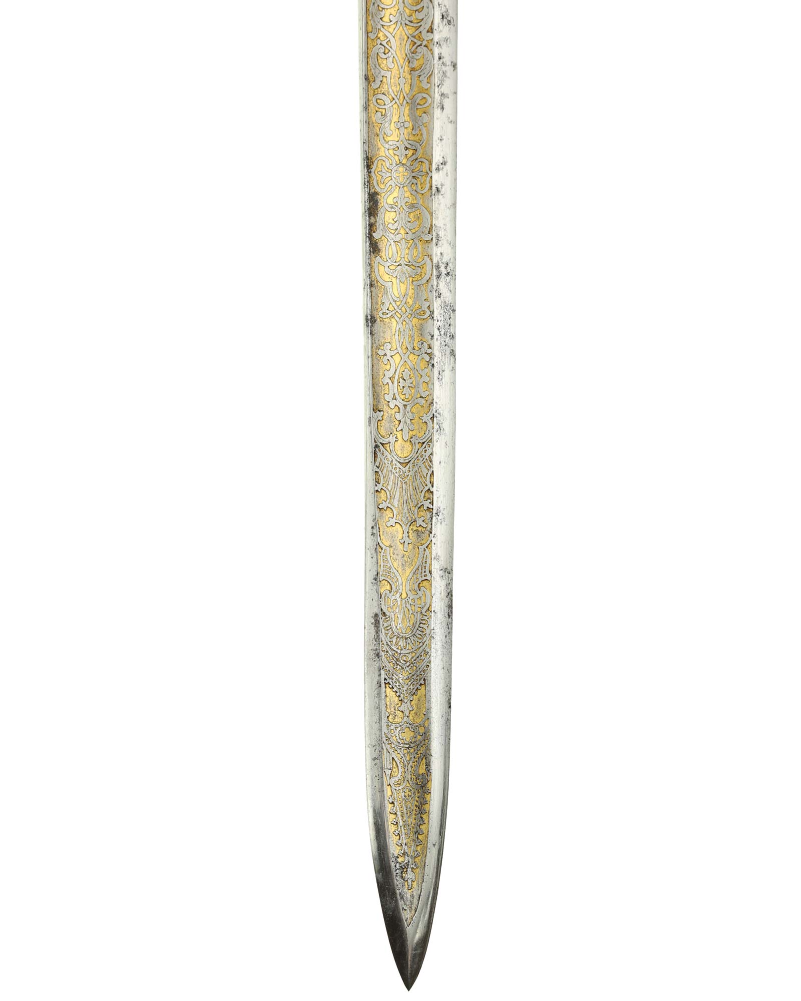 Клинок: Клинок прямой, стальной, однолезвийные, плоский, с двух сторон украшен травленым орнаментом.