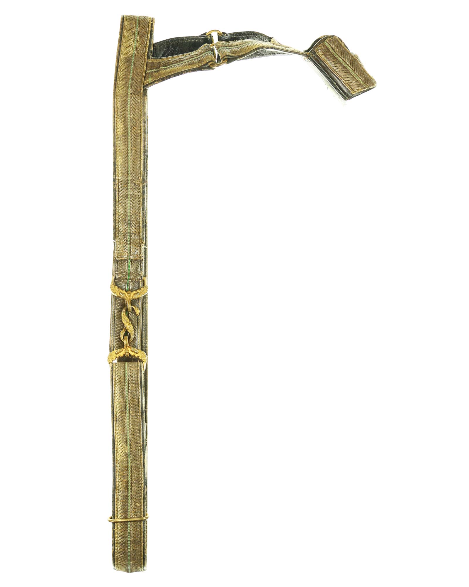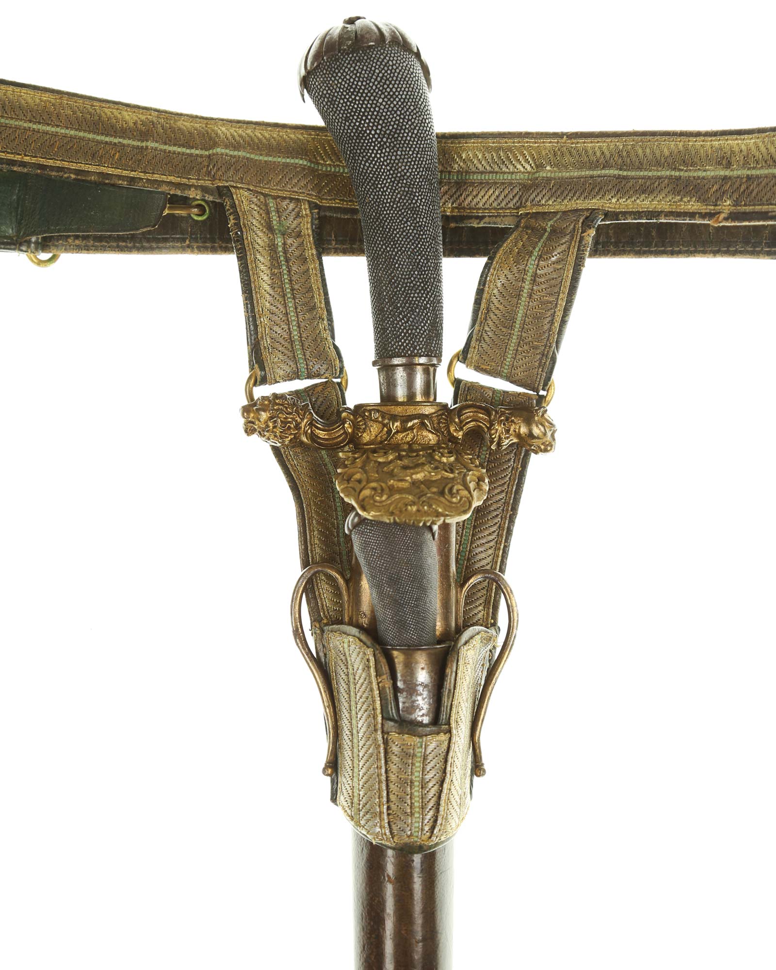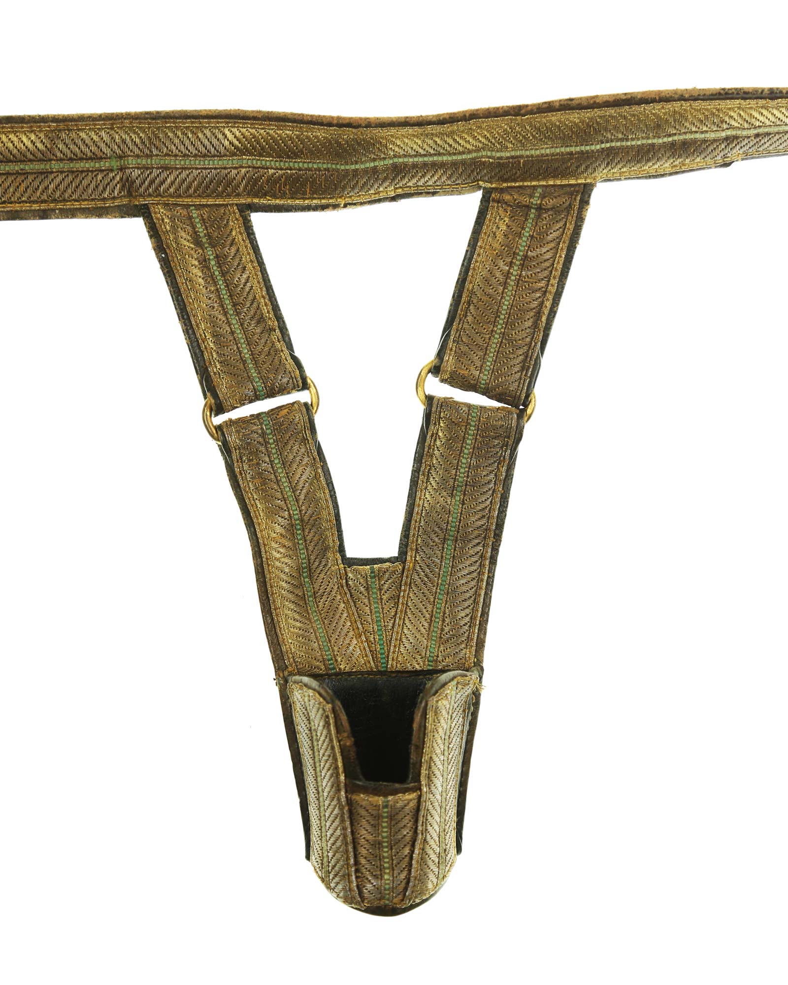 Ножны: Ножны обтянуты кожей. Прибор ножен состоит из устья со шпеньком и наконечника