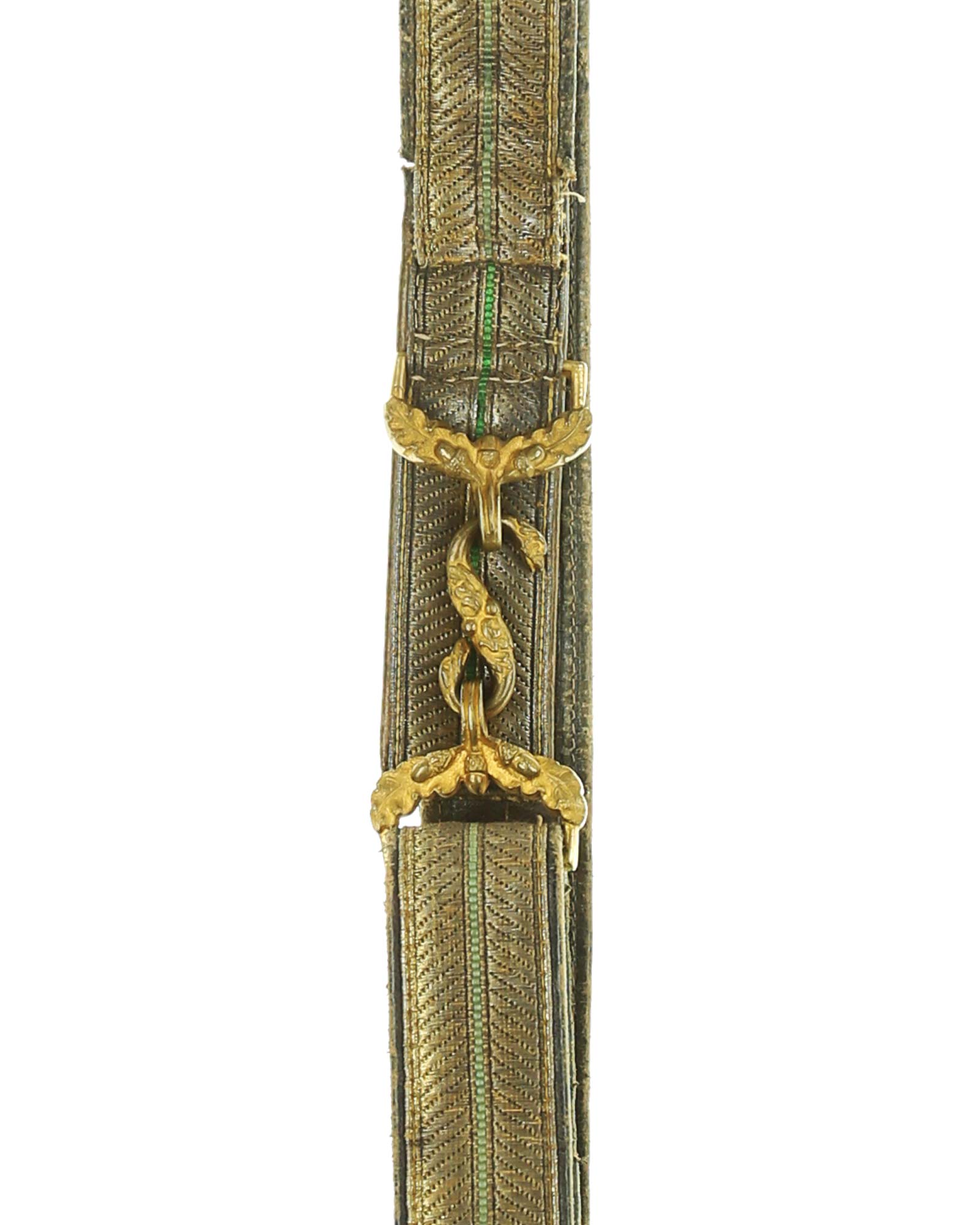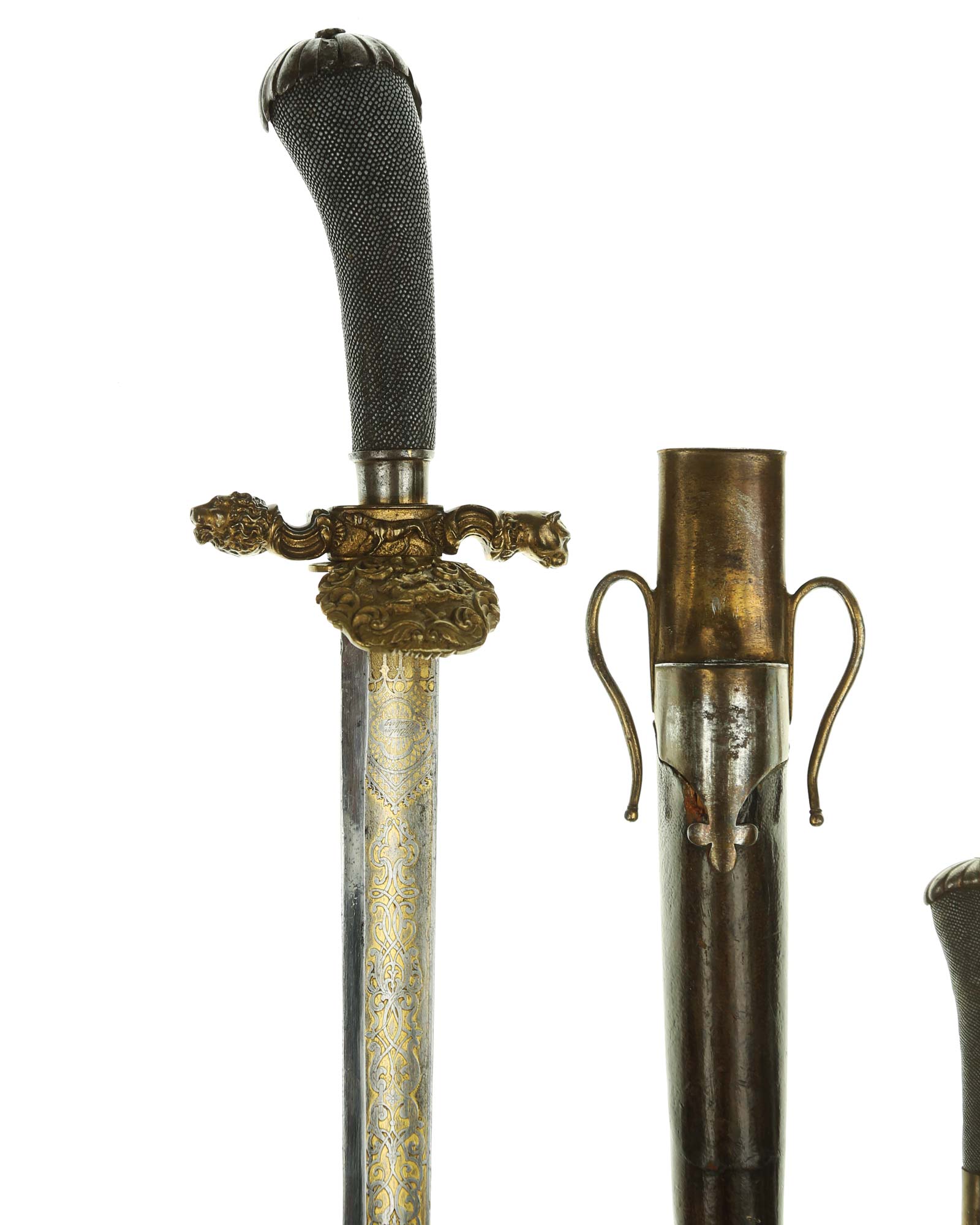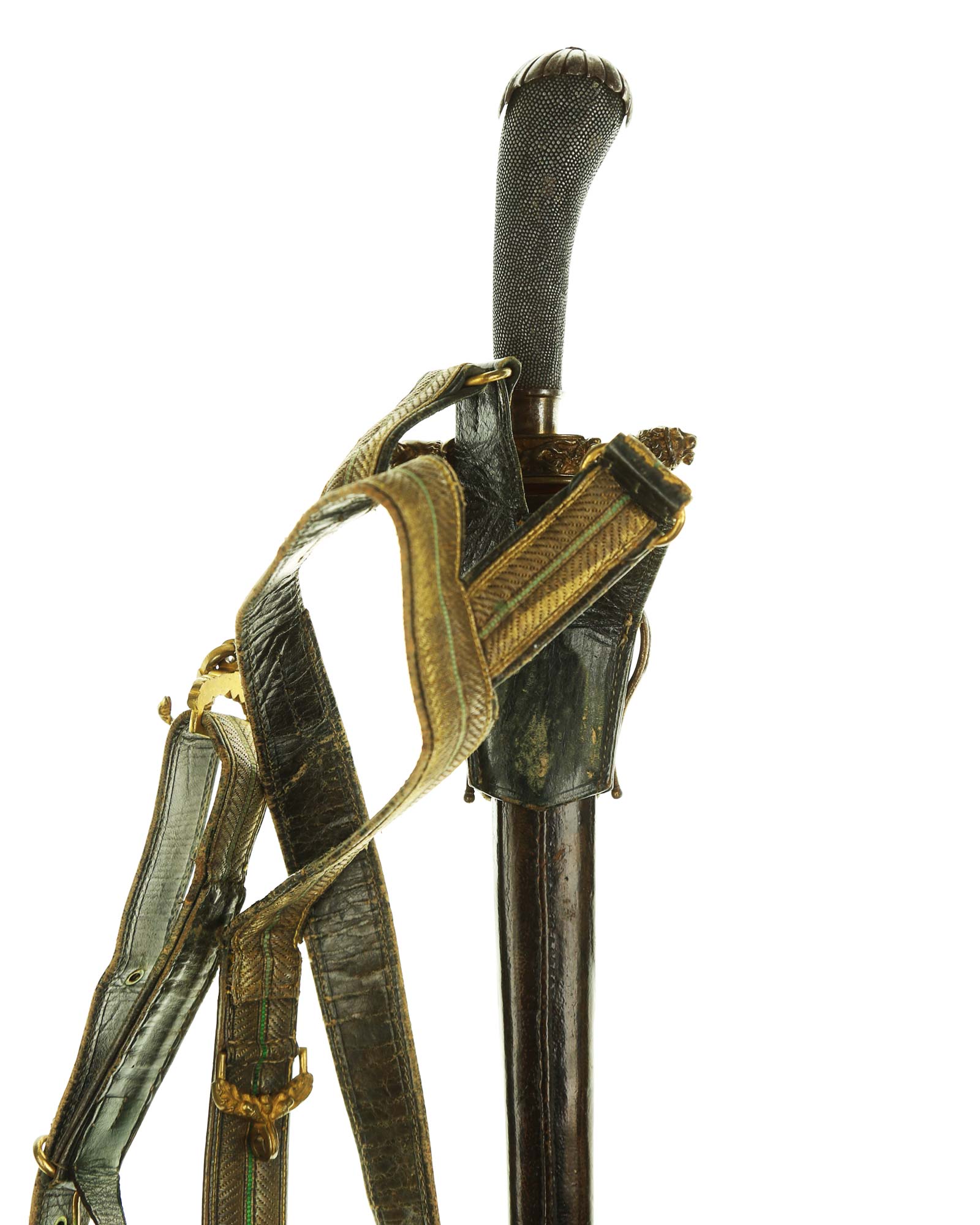 Ножны: Ножны обтянуты кожей. Прибор ножен состоит из устья со шпеньком и наконечника