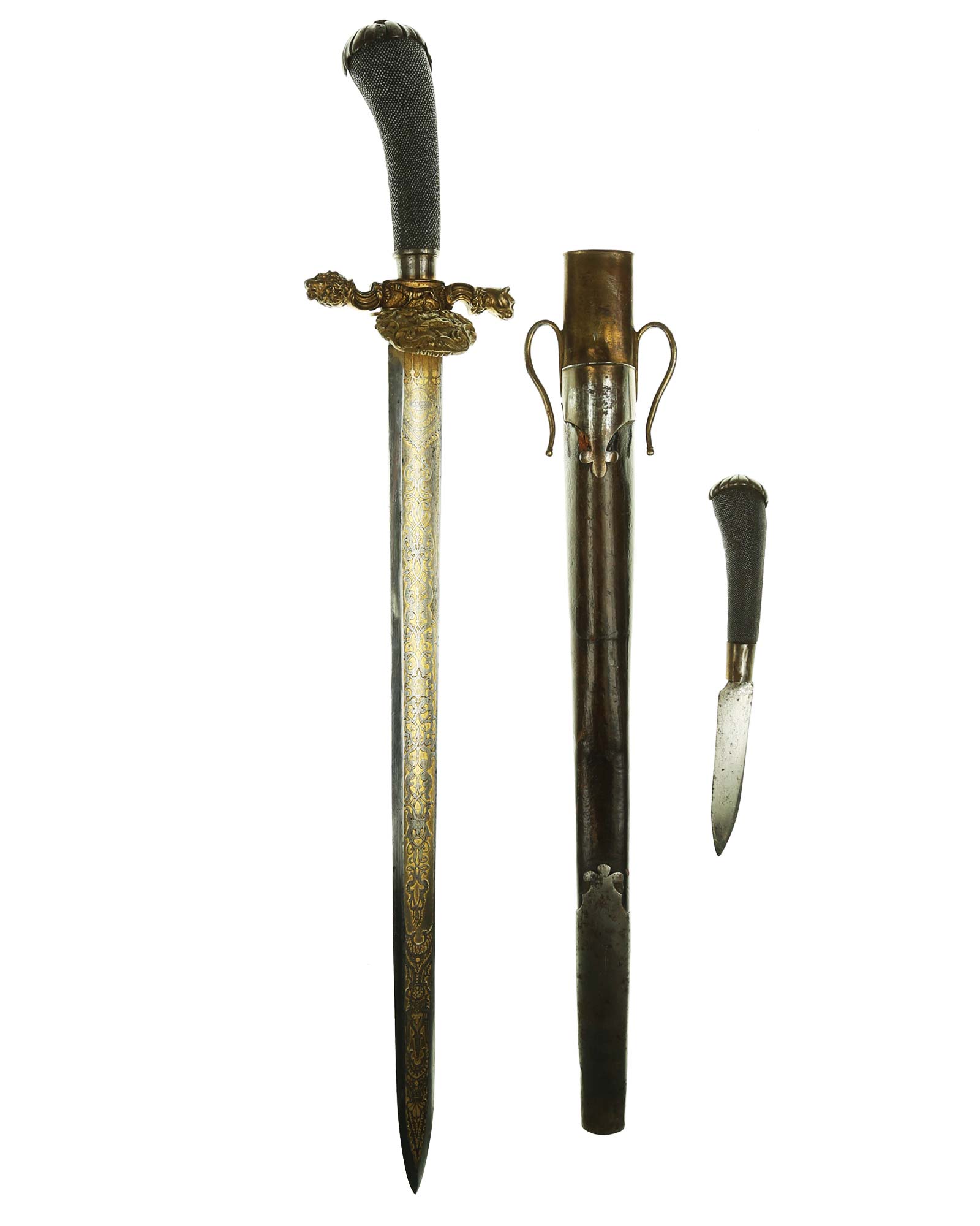 Кинжал охотничий Хиршфангер 19-го века с клеймом Wilhelm Clauberg Solingen (Вильгельм Клауберг Золинген). Общая длина: 523 мм.