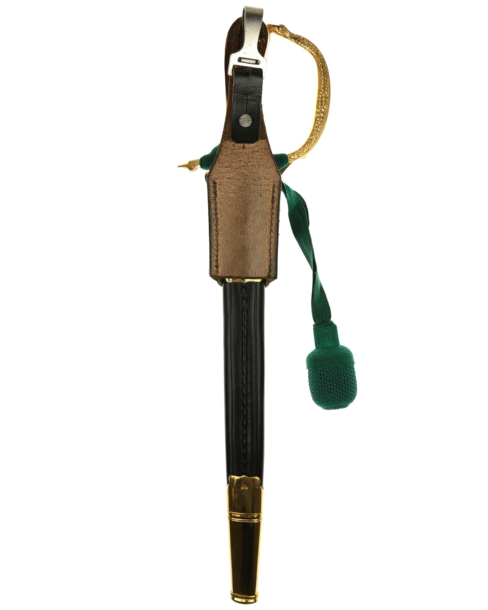 Ножны: Ножны обтянуты черной кожей. Прибор ножен состоит из устья со шпеньком и наконечника.