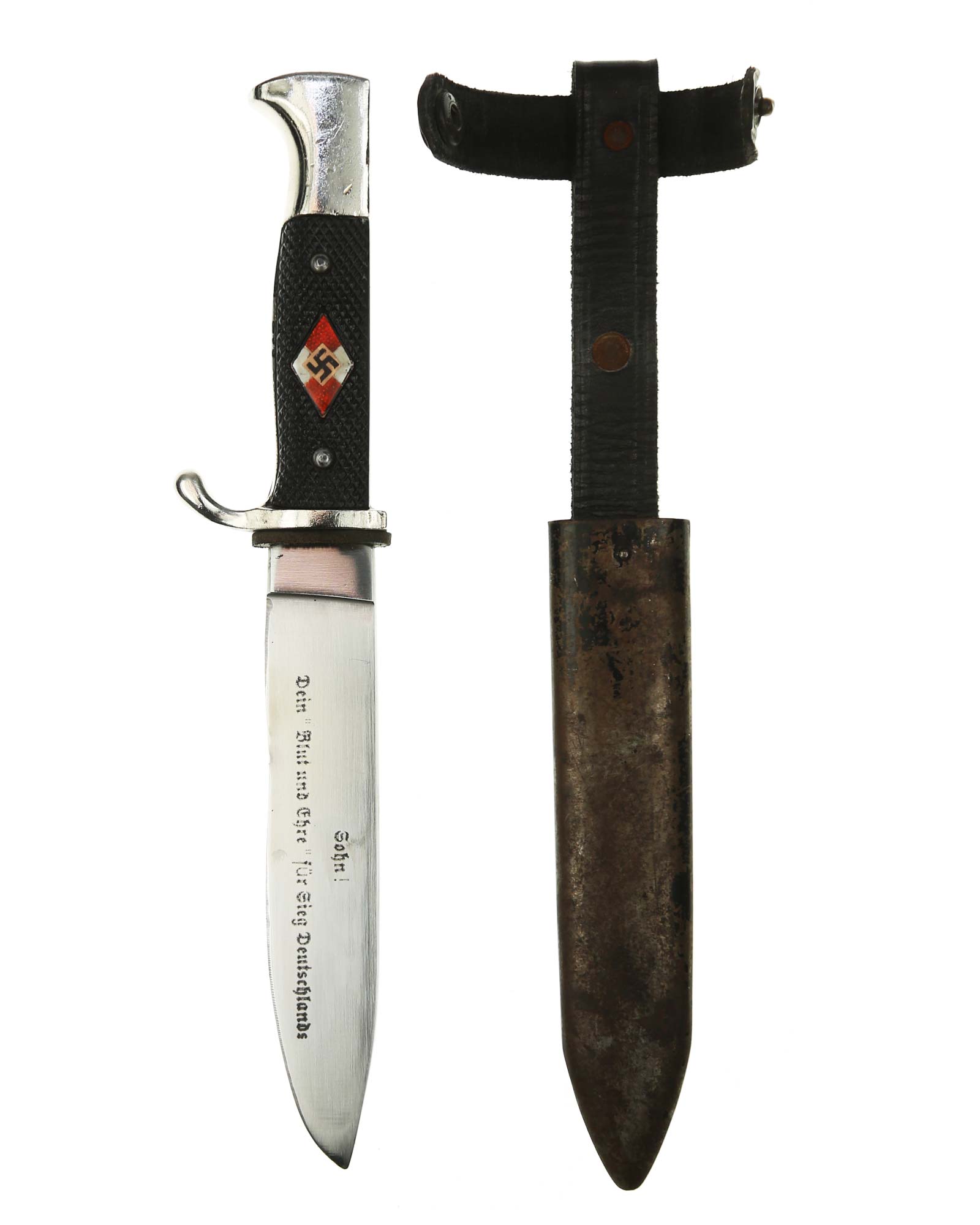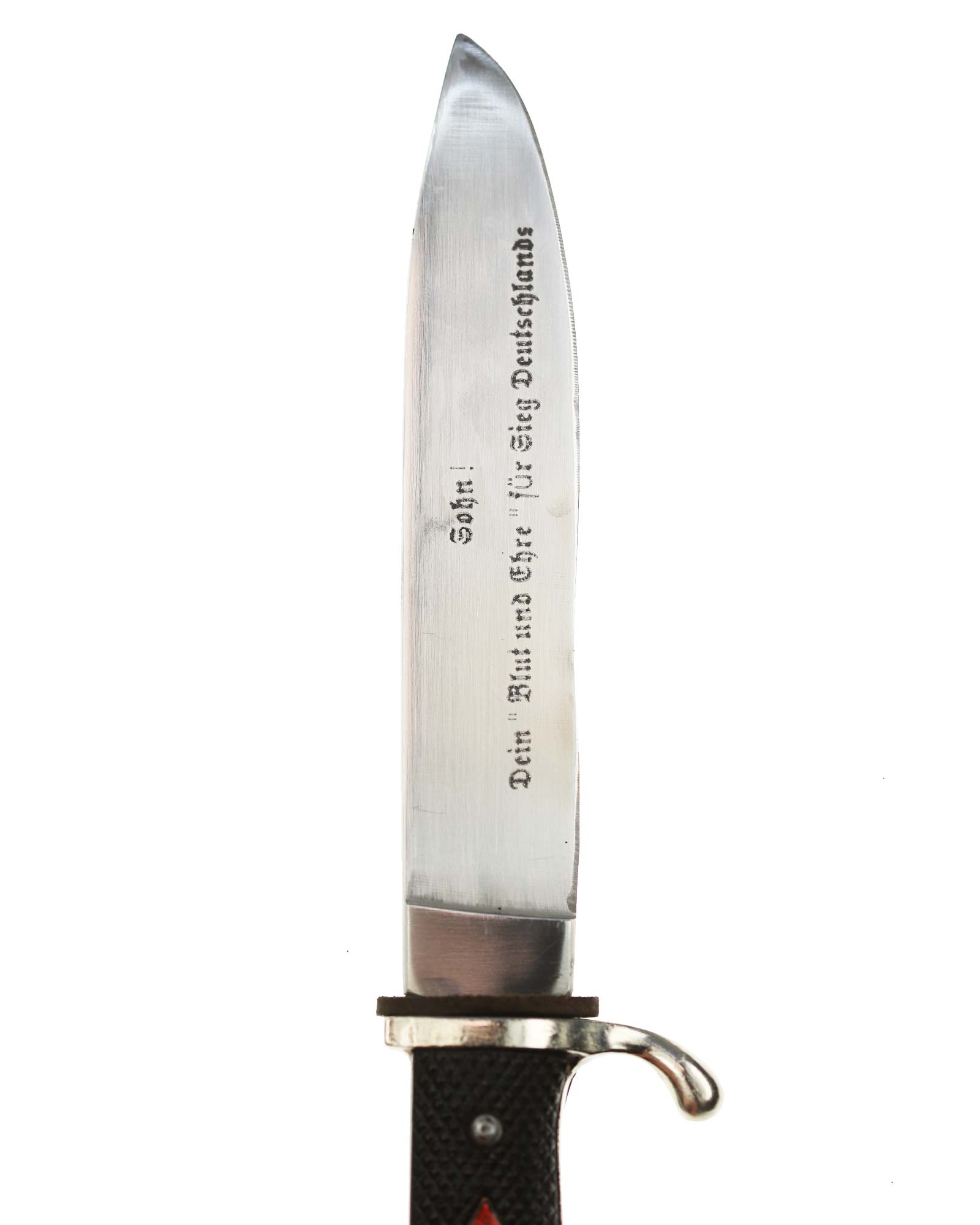 Нож "Гитлерюгенд" первого периода производства 1933-1935 гг. HJ-нож с посвящением: Sohn! Dein Blut und Ehre für Sieg Deutschlands (Сын! Твоя кровь и честь за победу Германии).