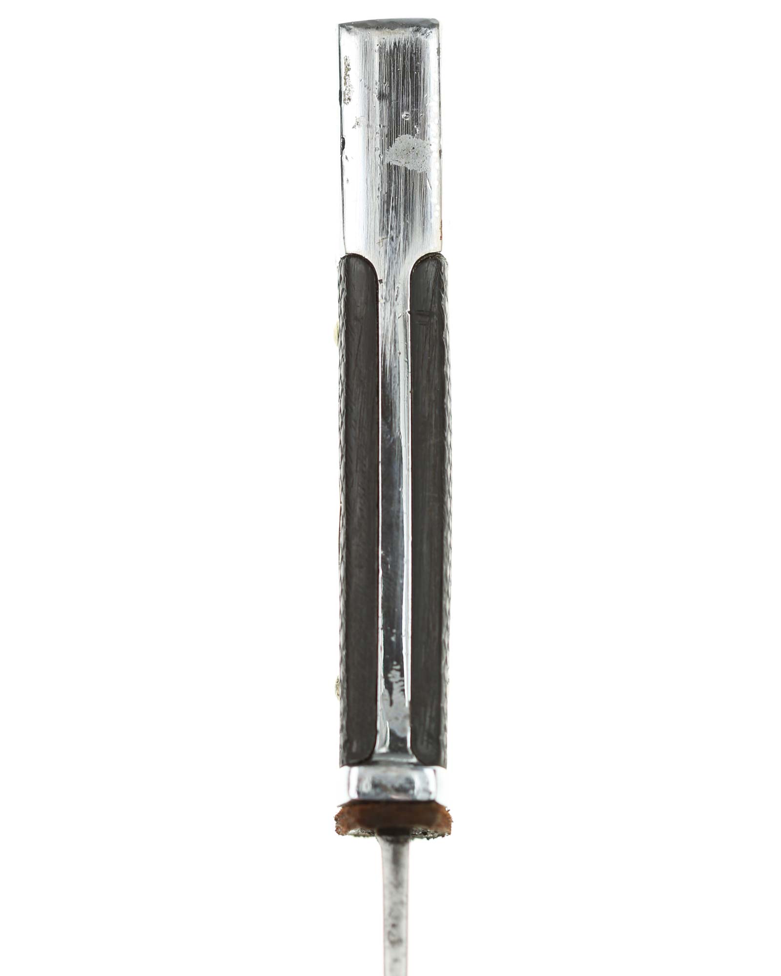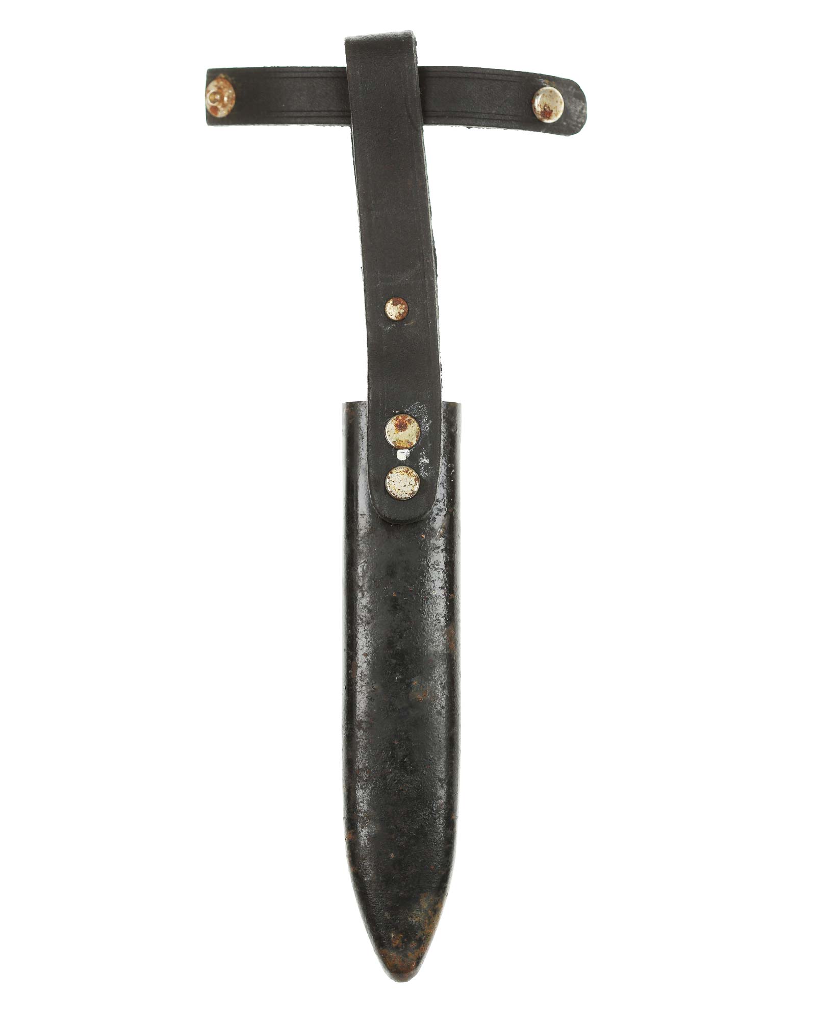 Ножны: Ножны изготовлены из окрашенной в черный цвет стали. Для плотного удержания клинка изнутри расположены две пружины, прикрепленные с помощью заклепок к внутренней стороне ножен. Устройство для ношения состоит из петли, состоящей из двухслойной кожаной ленты, крепящейся к ножнам двумя заклепками. В верхней части подвеса имеется ремешок, обращенный наружу, прикрепленныйс помощью заклепки, закрывающияся кнопкой.