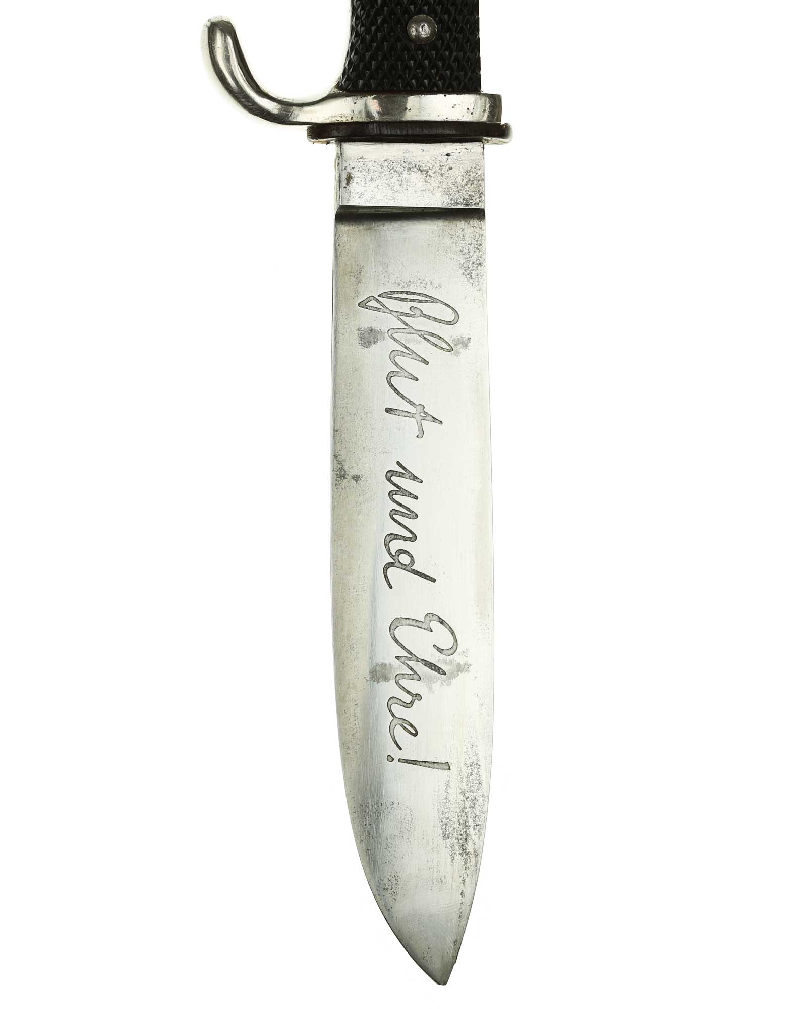 Клинок: Клинок никелированный, с одной стороны помещен девиз - "Кровь и честь" (нем. Blut und Ehre), с другой RZM клеймо производителя RZM M7/66.