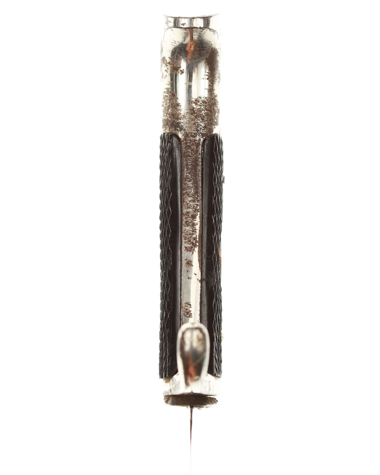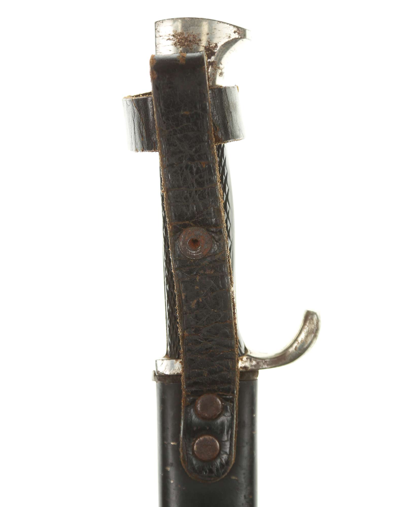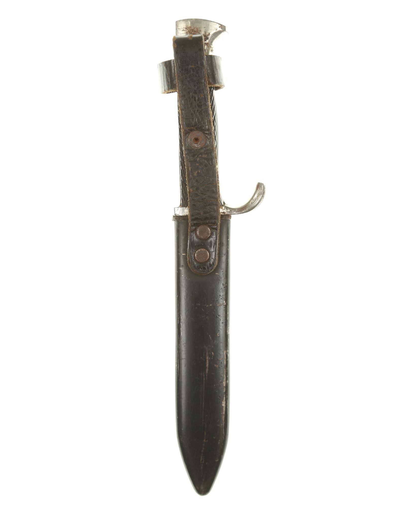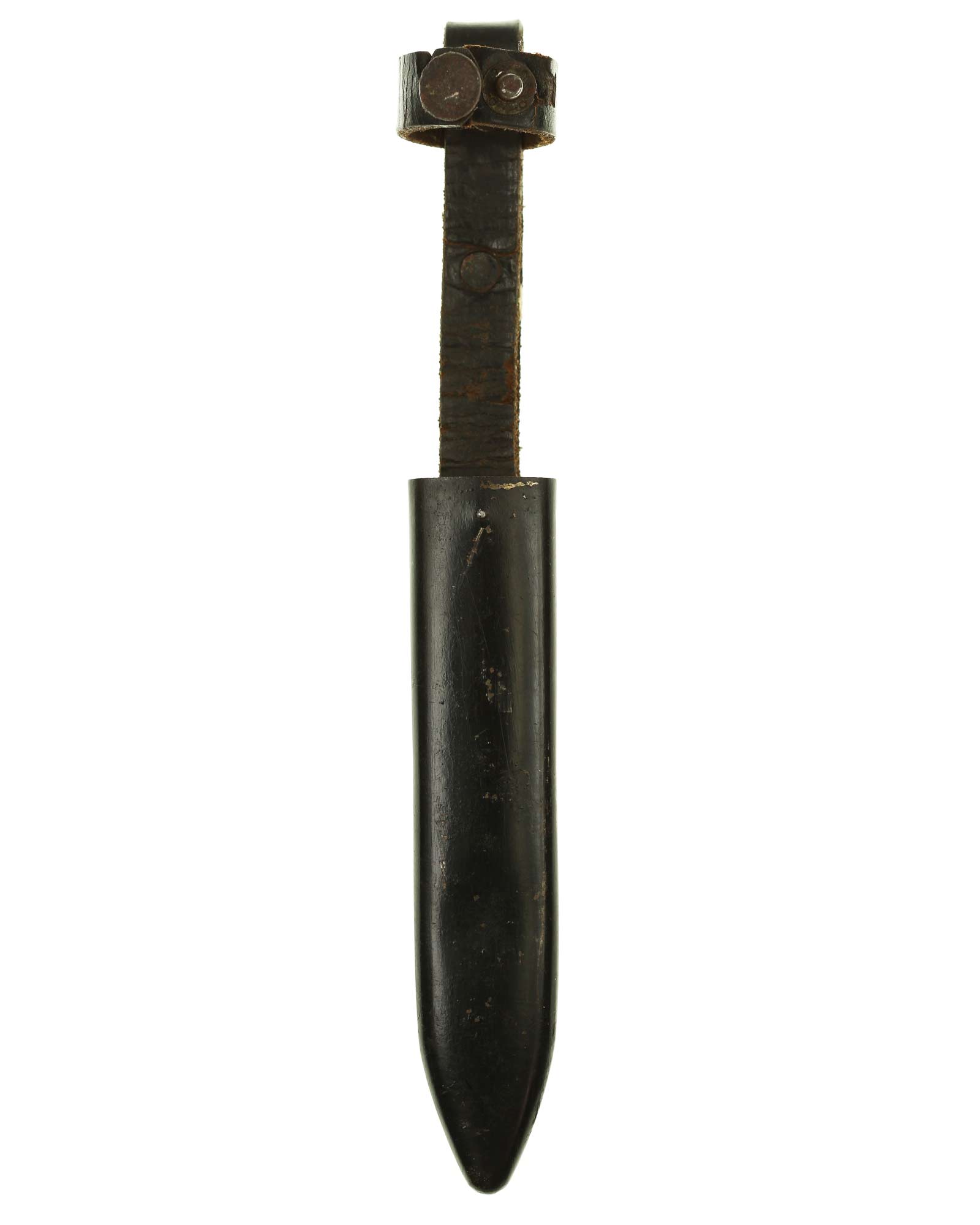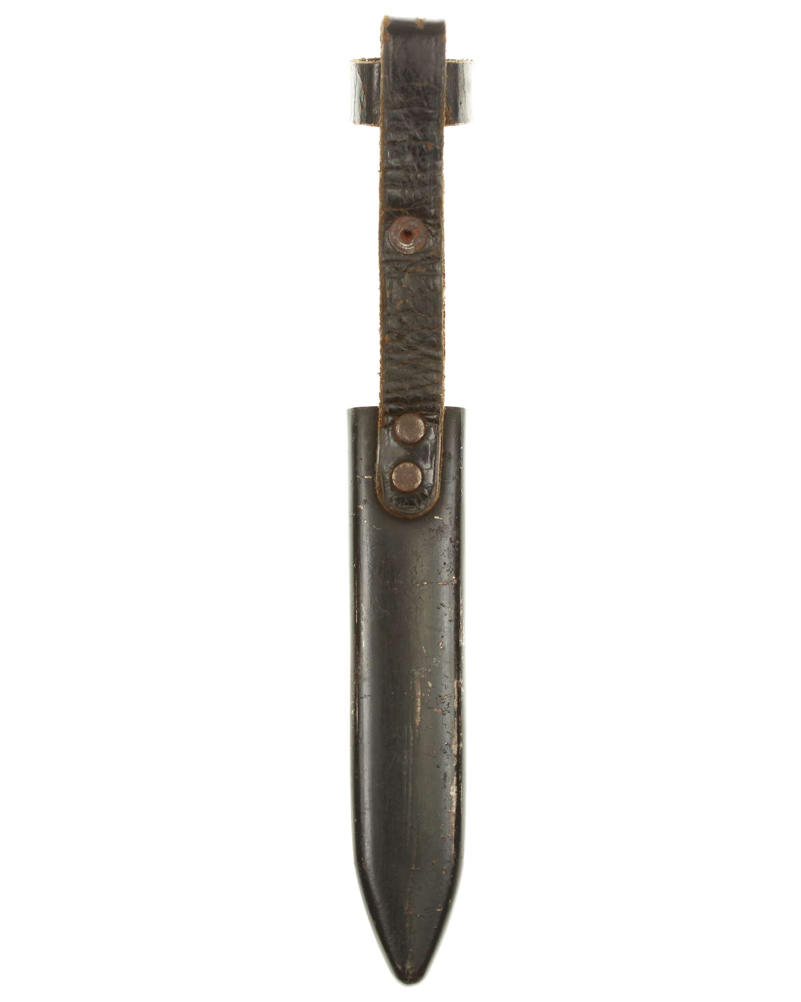 Ножны: Ножны изготовлены из окрашенной в черный цвет стали. Для плотного удержания клинка изнутри расположены две пружины, прикрепленные с помощью заклепок к внутренней стороне ножен. Устройство для ношения состоит из петли, состоящей из двухслойной кожаной ленты, крепящейся к ножнам двумя заклепками. В верхней части подвеса имеется ремешок, обращенный наружу, прикрепленныйс помощью заклепки, закрывающияся кнопкой.