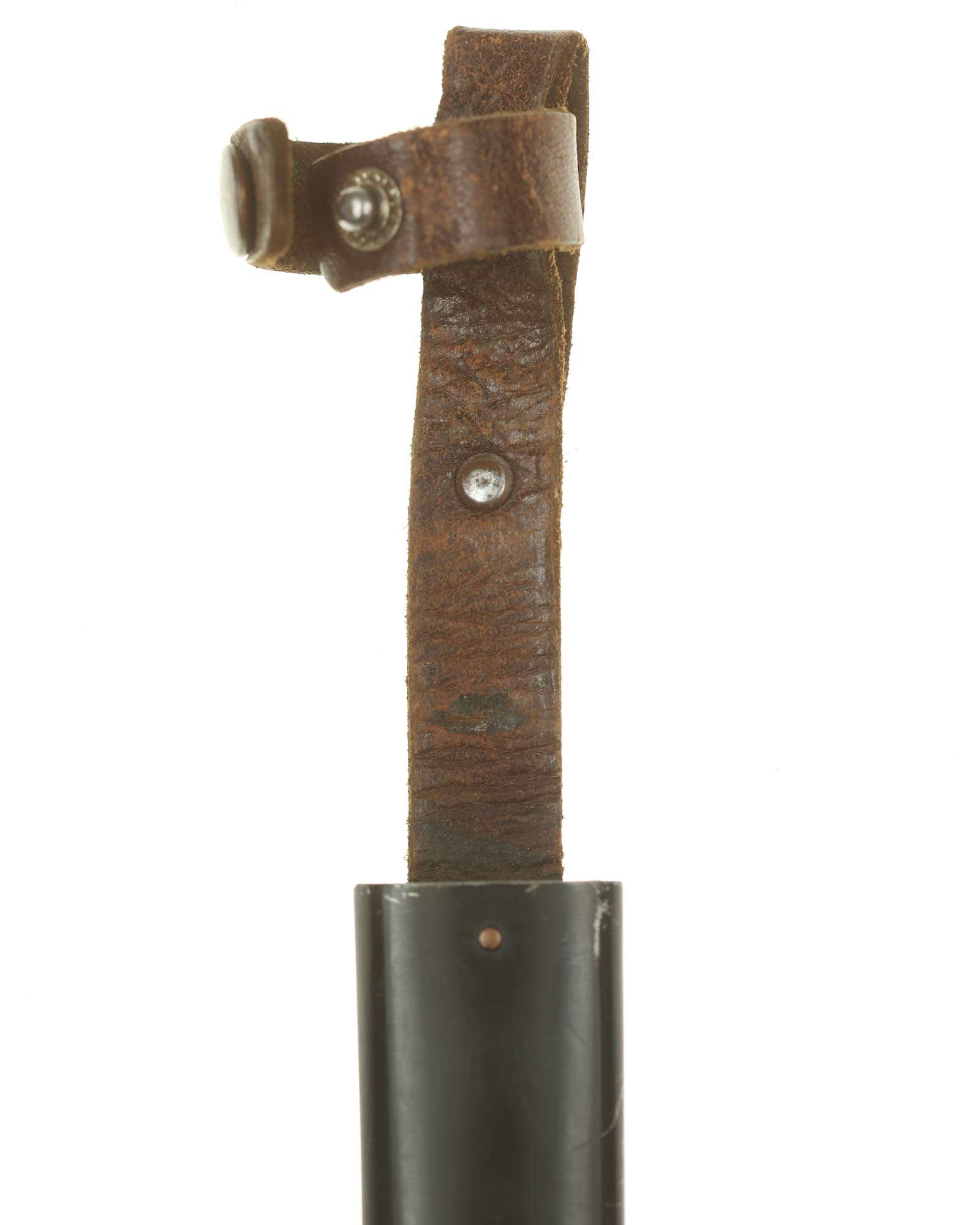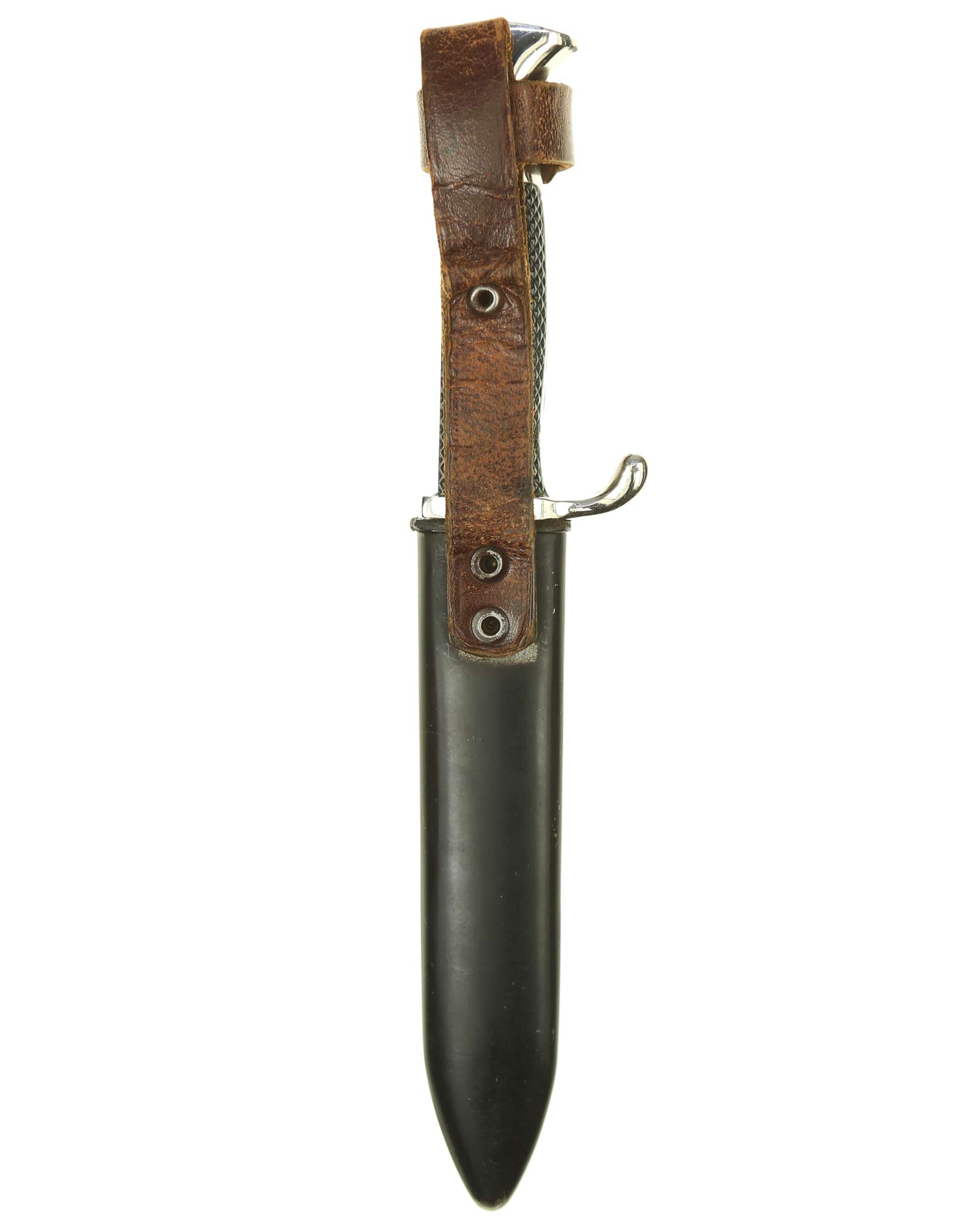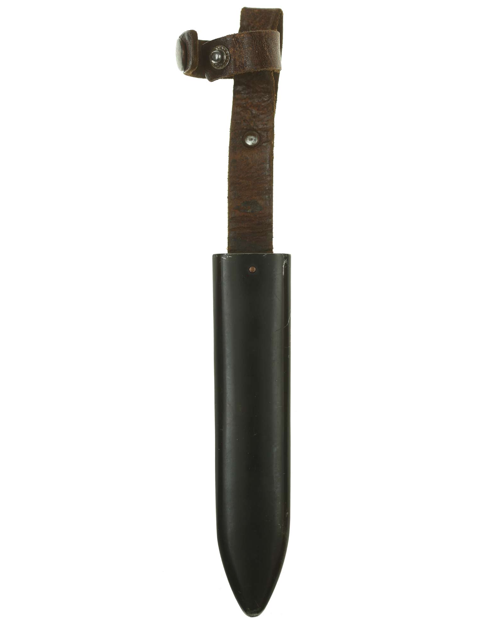 Ножны: Ножны изготовлены из окрашенной в черный цвет стали. Для плотного удержания клинка изнутри расположены две пружины, прикрепленные с помощью заклепок к внутренней стороне ножен. Устройство для ношения состоит из петли, состоящей из двухслойной кожаной ленты, крепящейся к ножнам двумя заклепками. В верхней части подвеса имеется ремешок, обращенный наружу, прикрепленныйс помощью заклепки, закрывающияся кнопкой. Кожаные ремни были черные и коричневые.