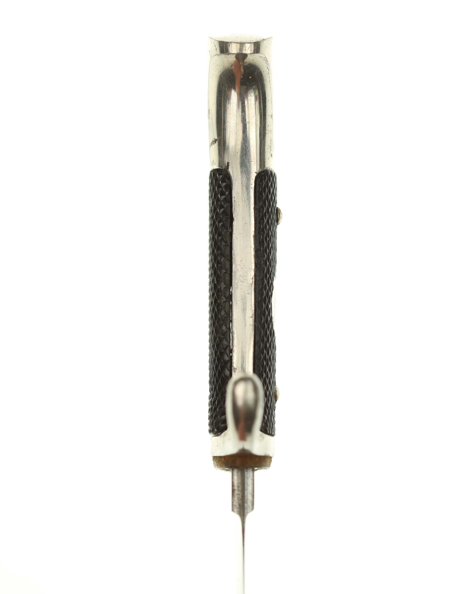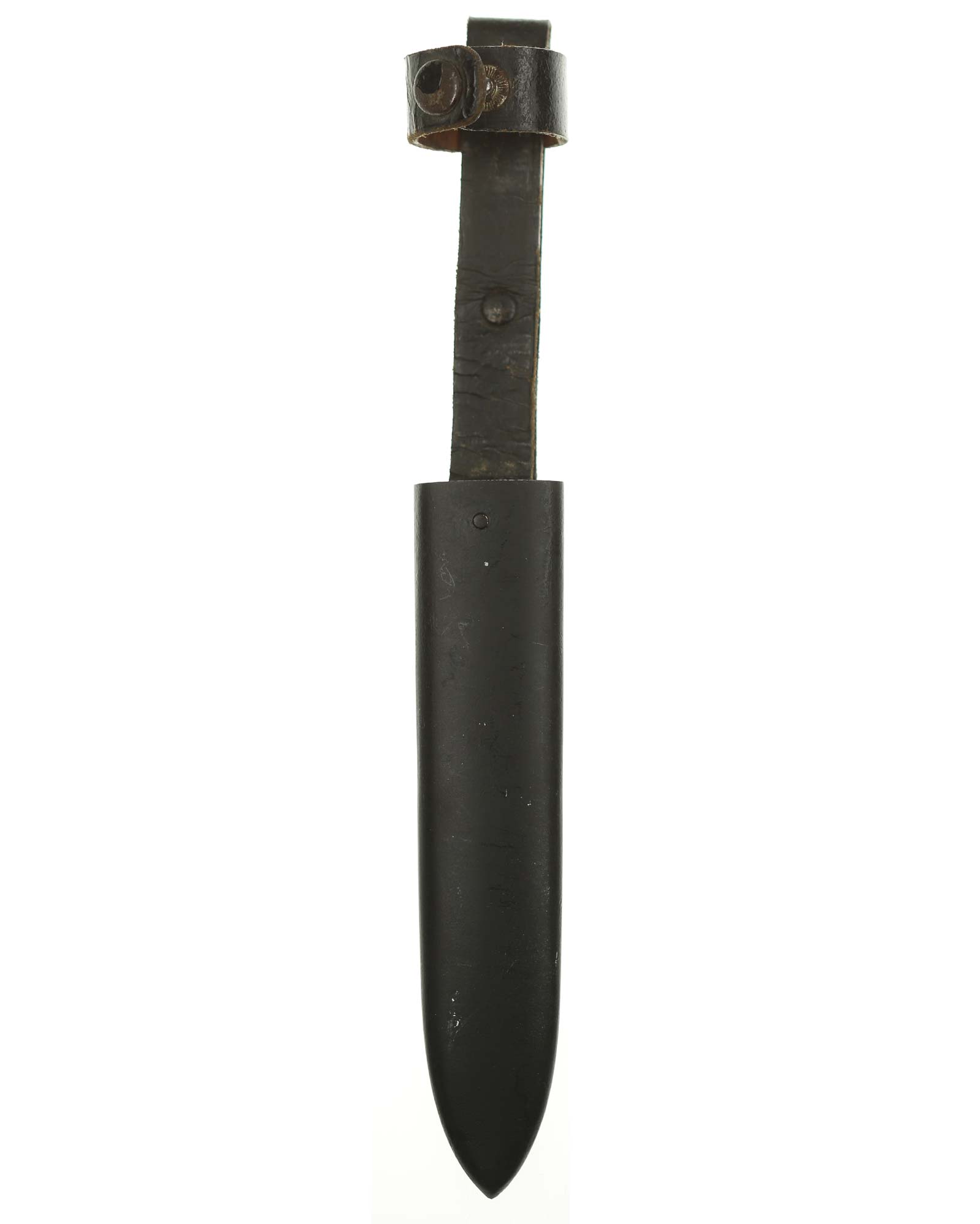 Ножны: Ножны изготовлены из окрашенной в черный цвет стали. Для плотного удержания клинка изнутри расположены две пружины, прикрепленные с помощью заклепок к внутренней стороне ножен. Устройство для ношения состоит из петли, состоящей из двухслойной кожаной ленты, крепящейся к ножнам двумя заклепками. В верхней части подвеса имеется ремешок, обращенный наружу, прикрепленныйс помощью заклепки, закрывающияся кнопкой. Кожаные ремни были черные и коричневые.