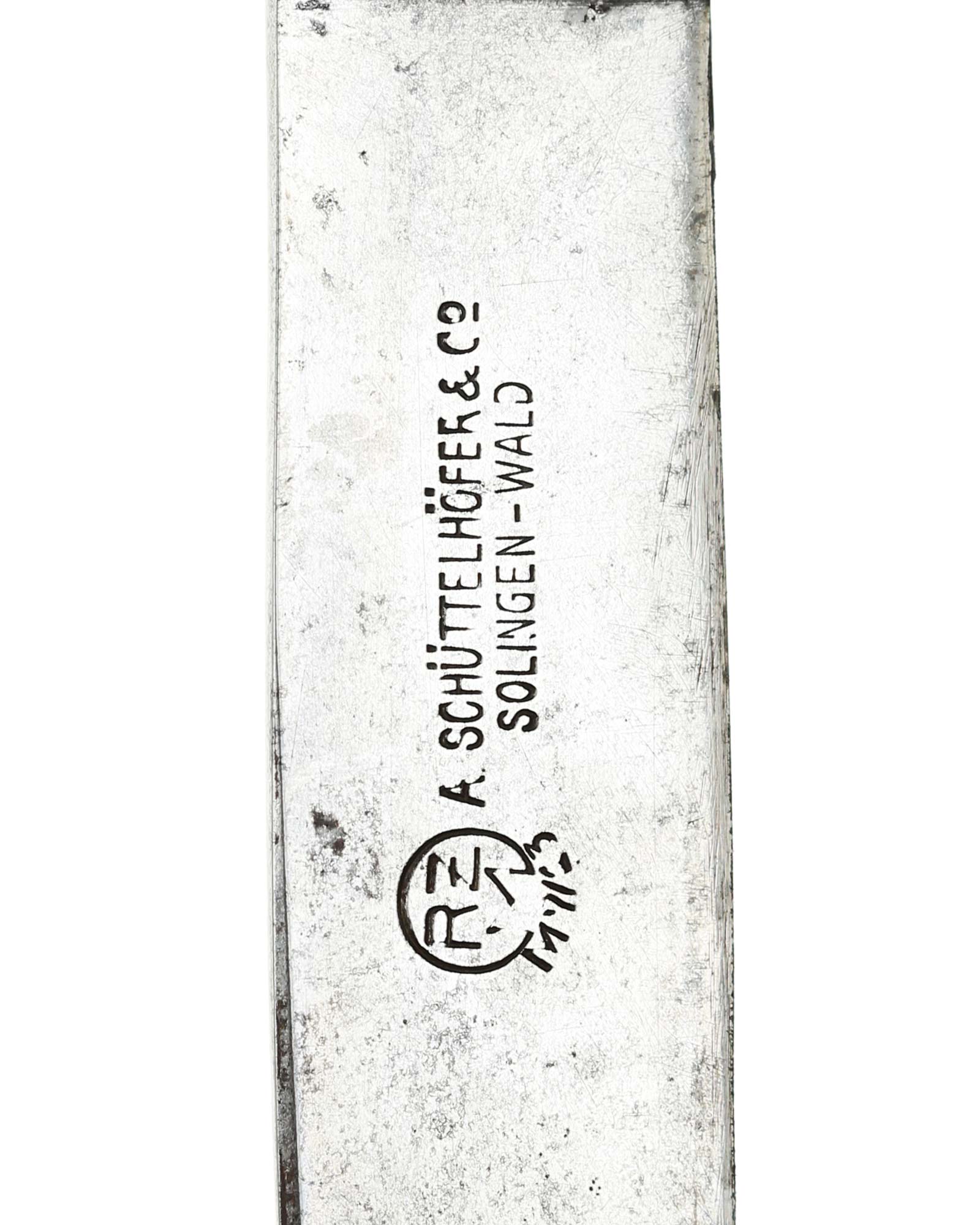 Клинок: Клинок никелированный, с одной стороны помещен девиз - "Кровь и честь" (нем. Blut und Ehre), с другой RZM клеймо производителя RZM M7/13 (Artur Schüttelhöfer Solingen).