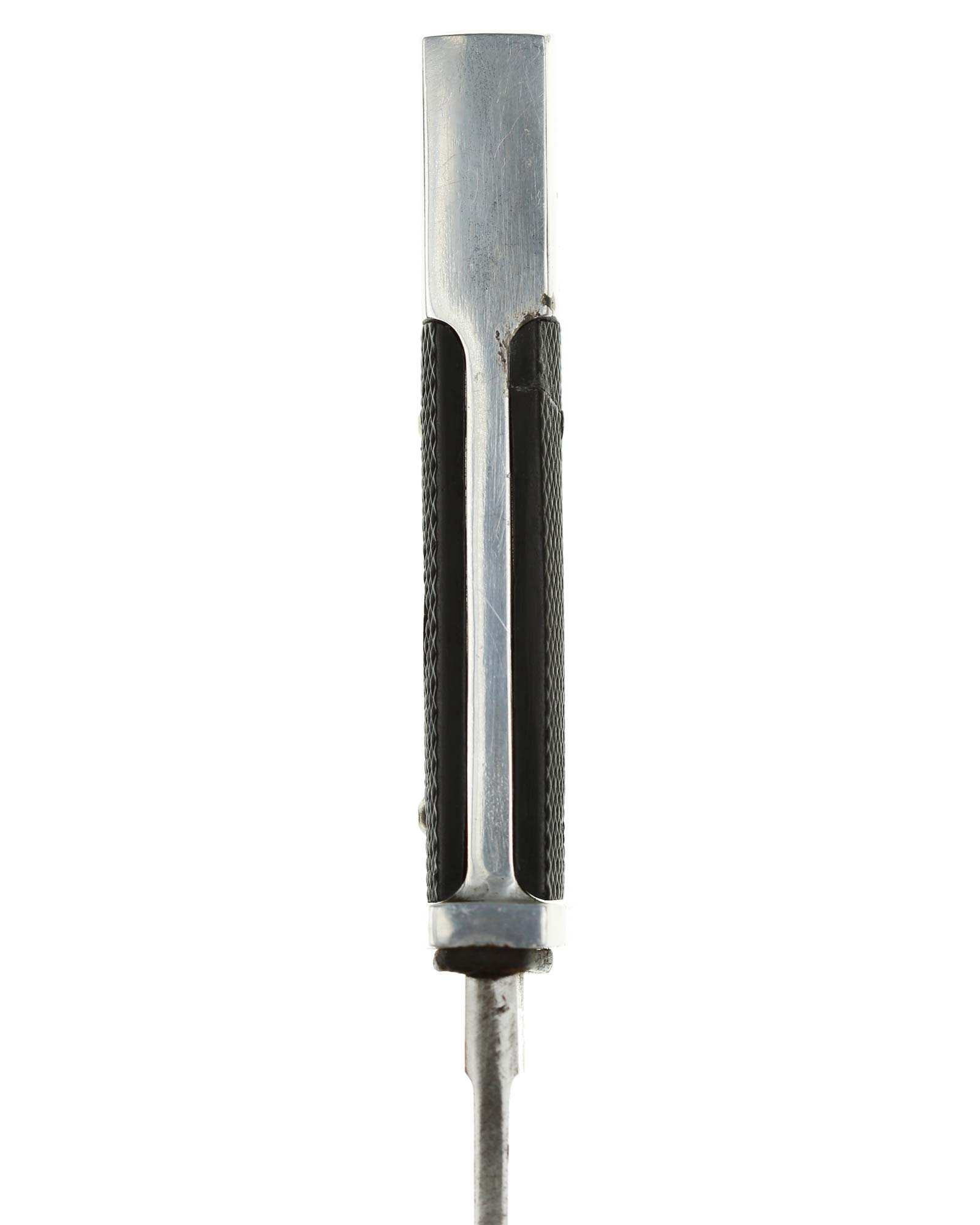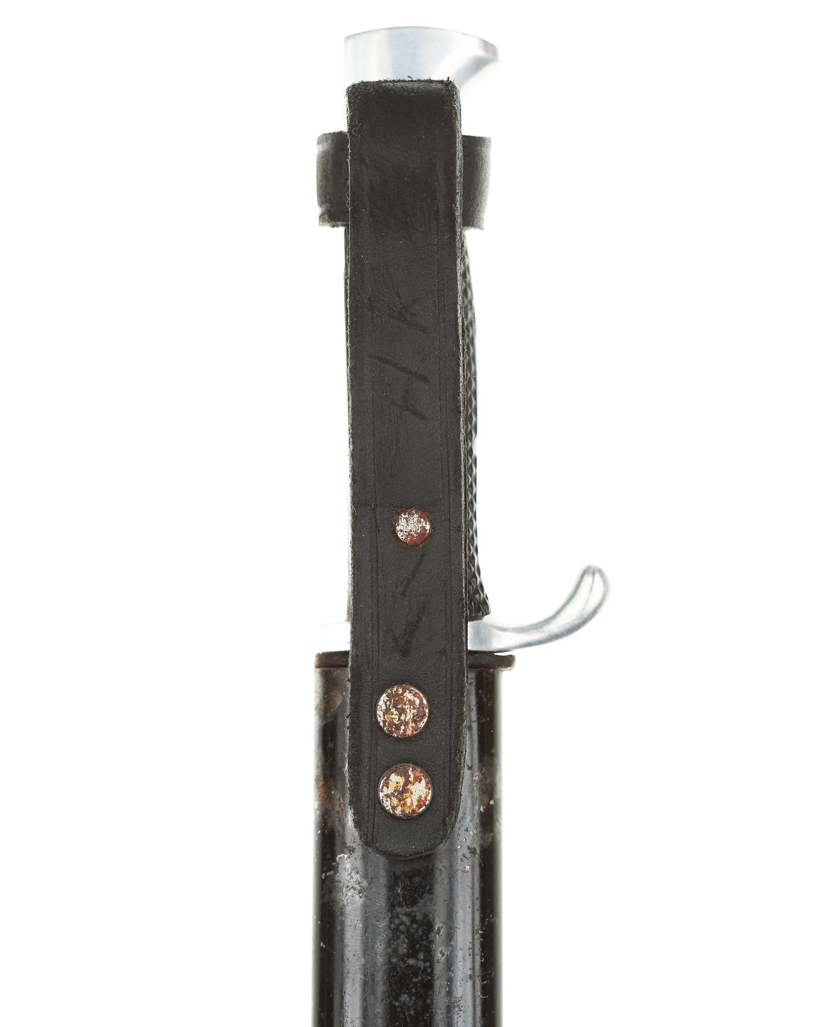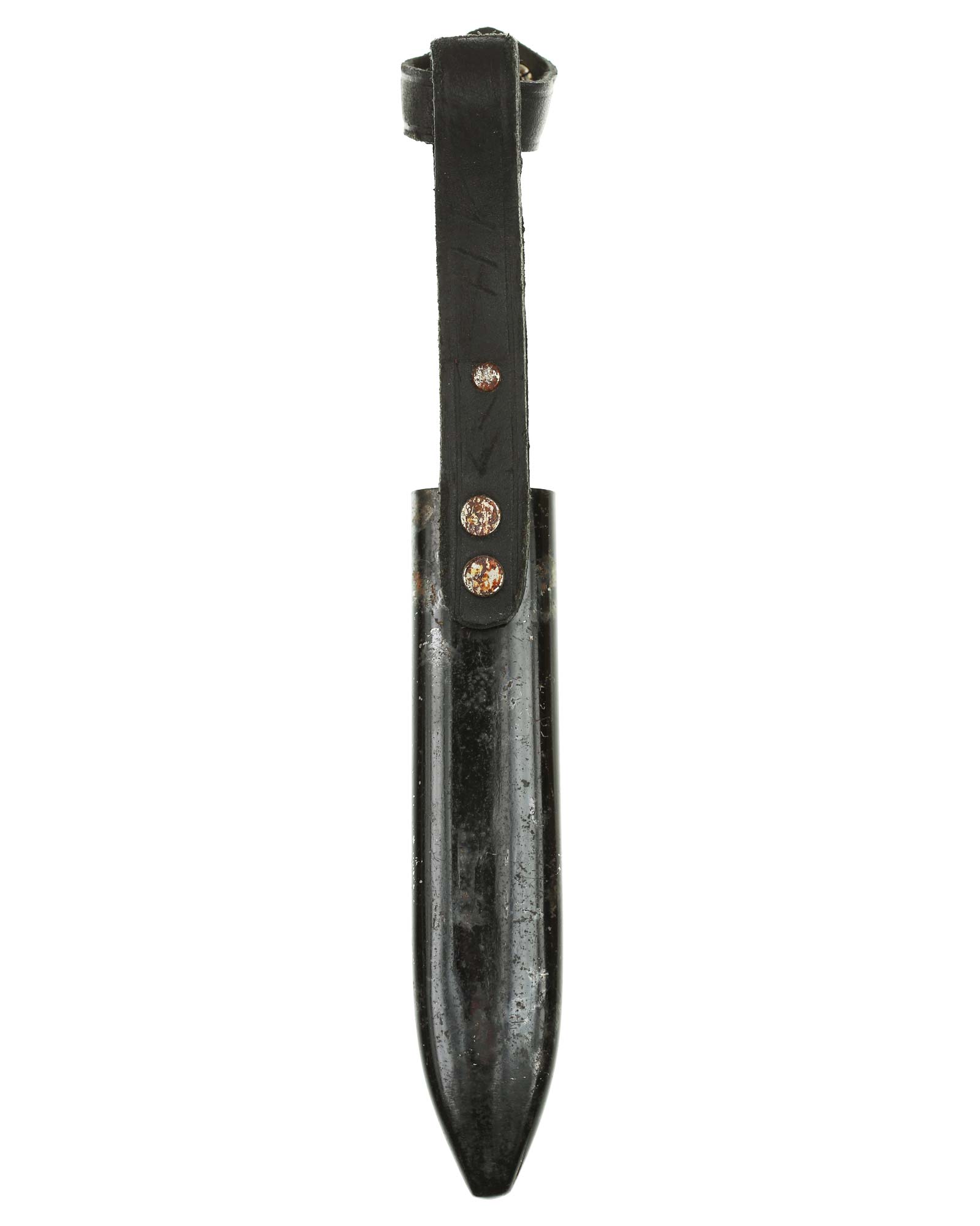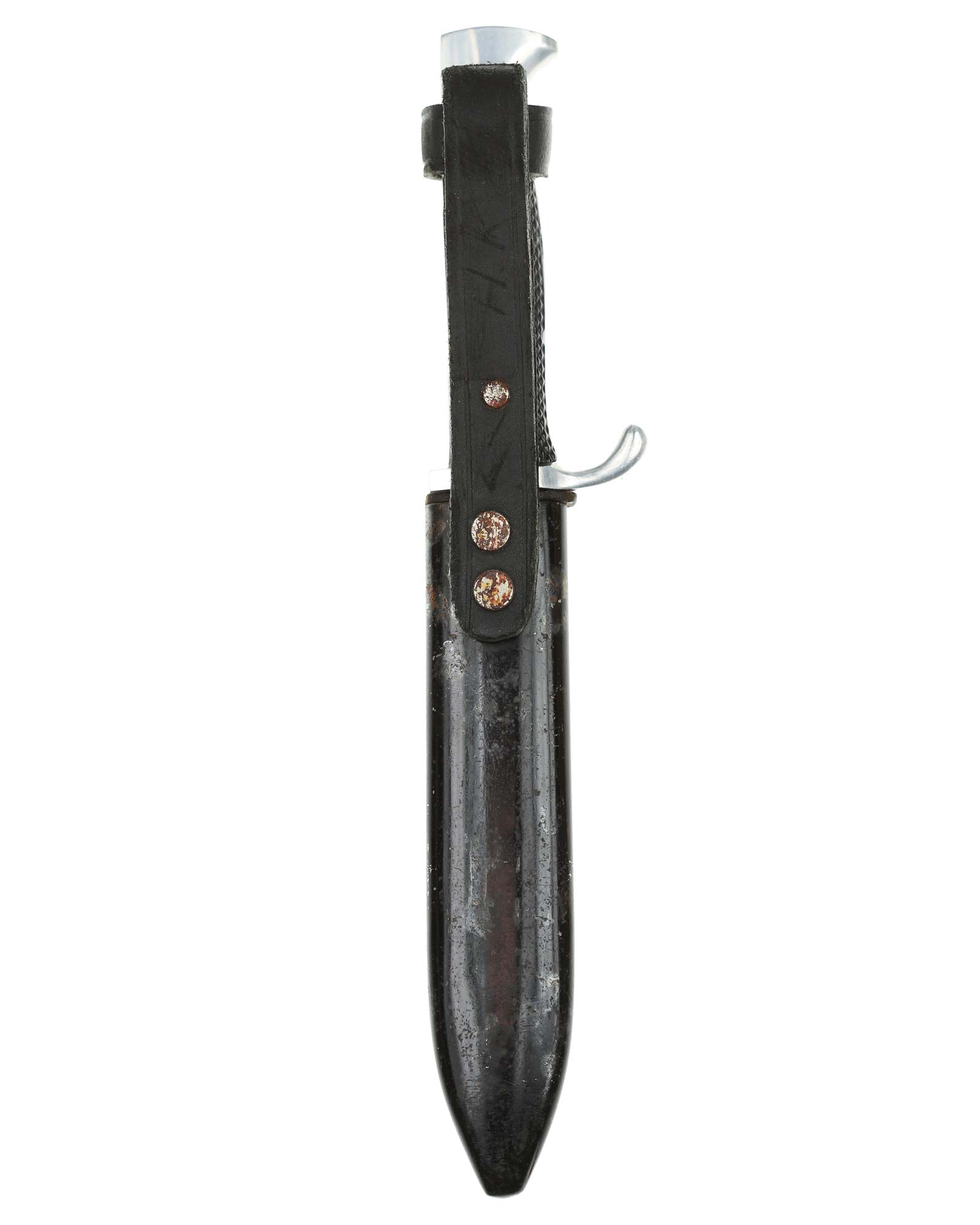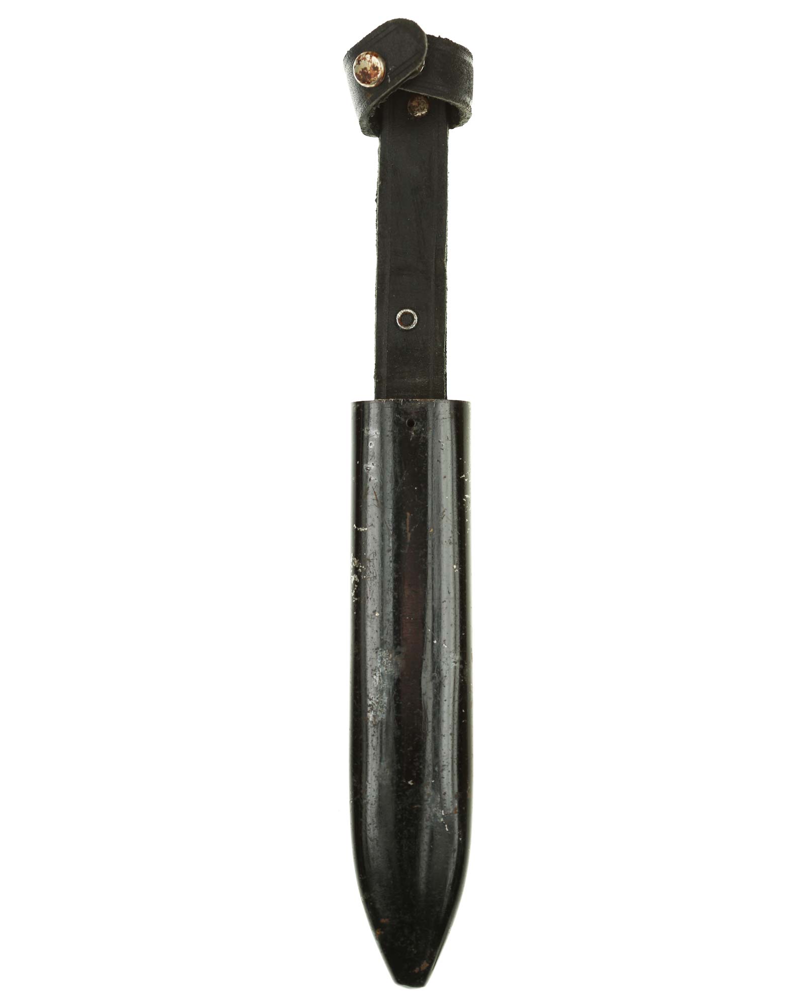 Ножны: Ножны изготовлены из окрашенной в черный цвет стали. Для плотного удержания клинка изнутри расположены две пружины, прикрепленные с помощью заклепок к внутренней стороне ножен. Устройство для ношения состоит из петли, состоящей из двухслойной кожаной ленты, крепящейся к ножнам двумя заклепками. В верхней части подвеса имеется ремешок, обращенный наружу, прикрепленныйс помощью заклепки, закрывающияся кнопкой.
